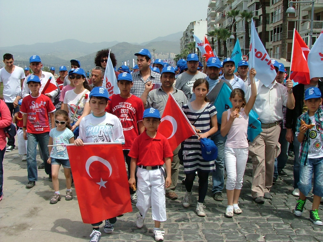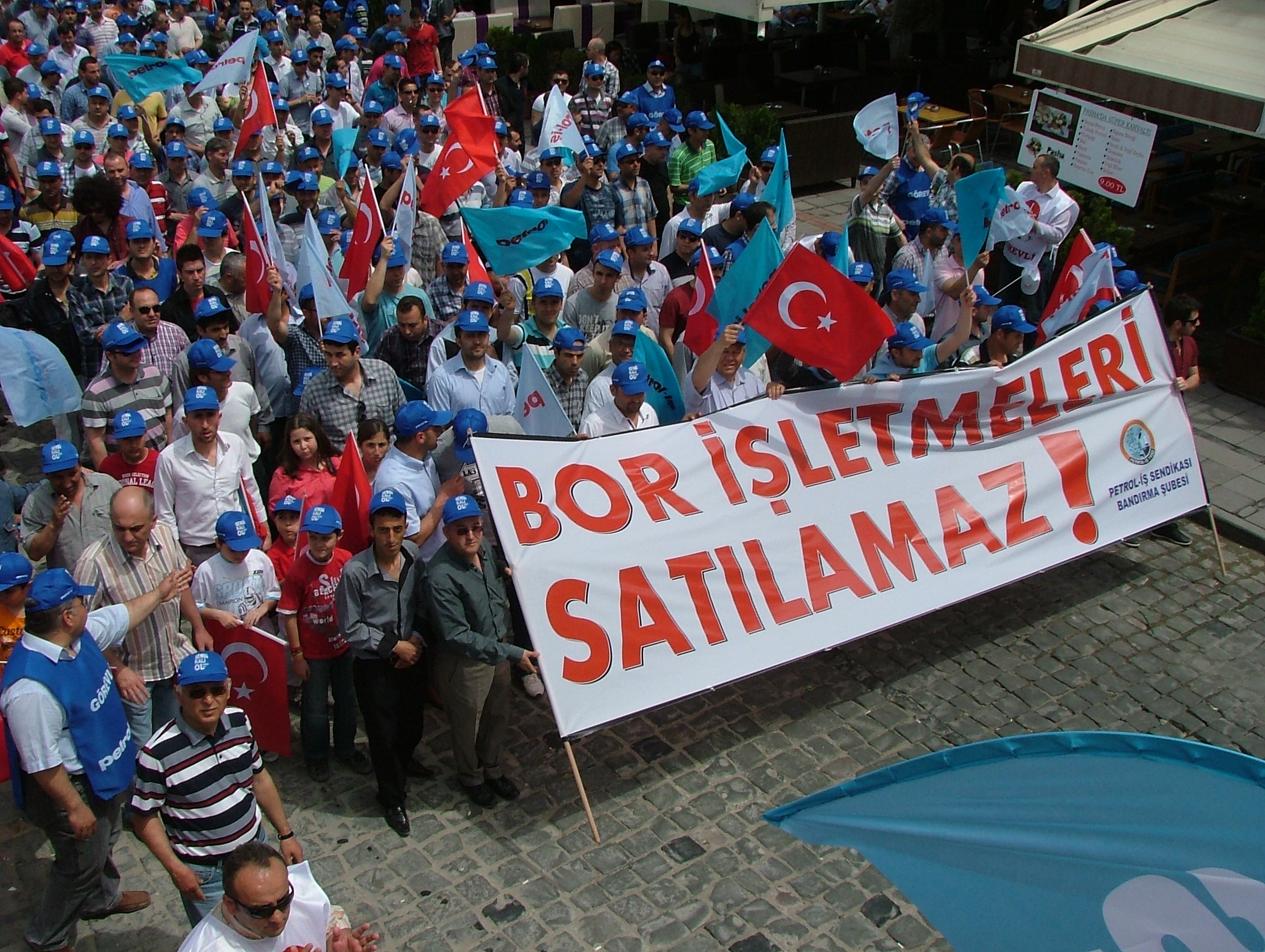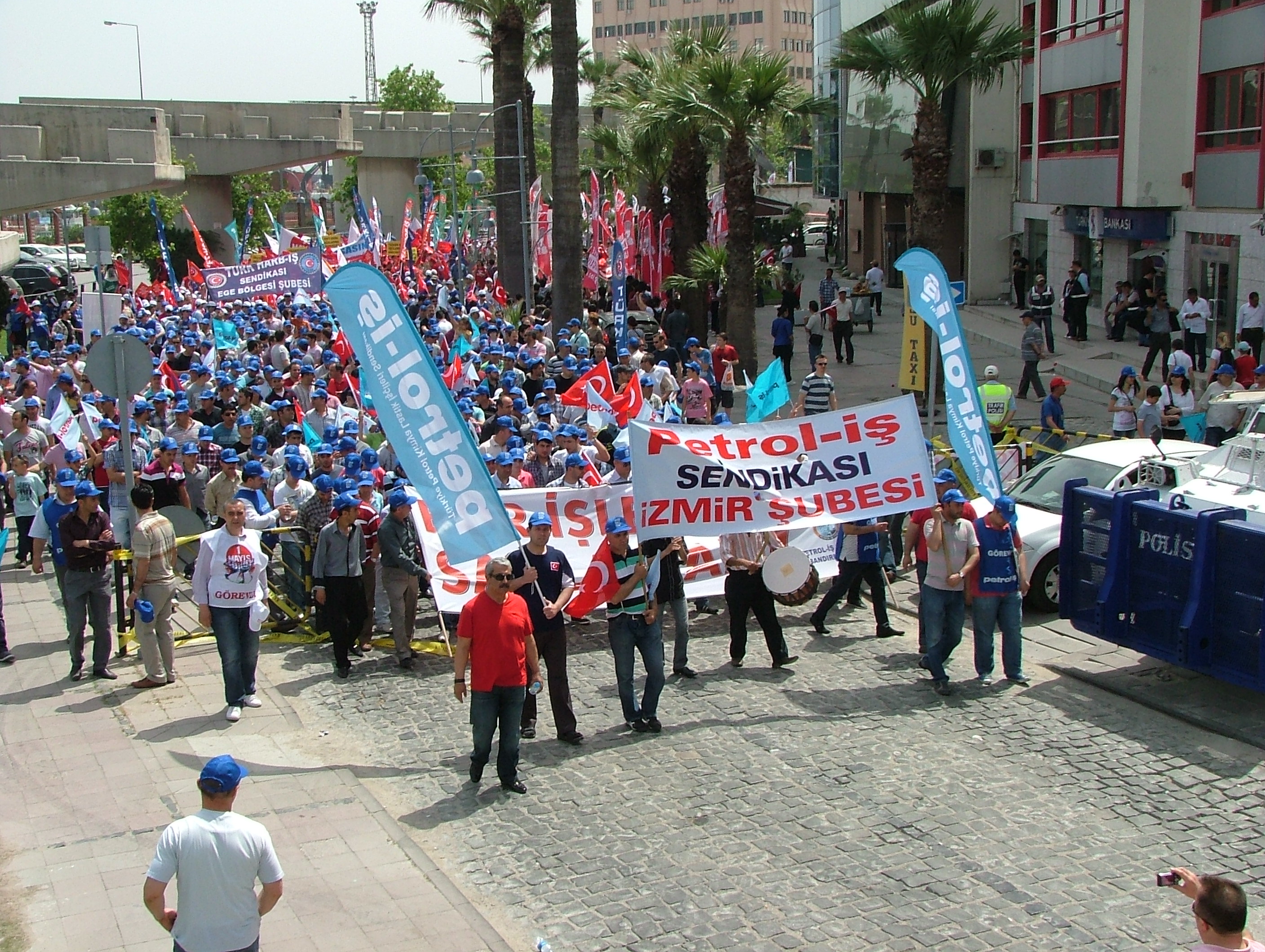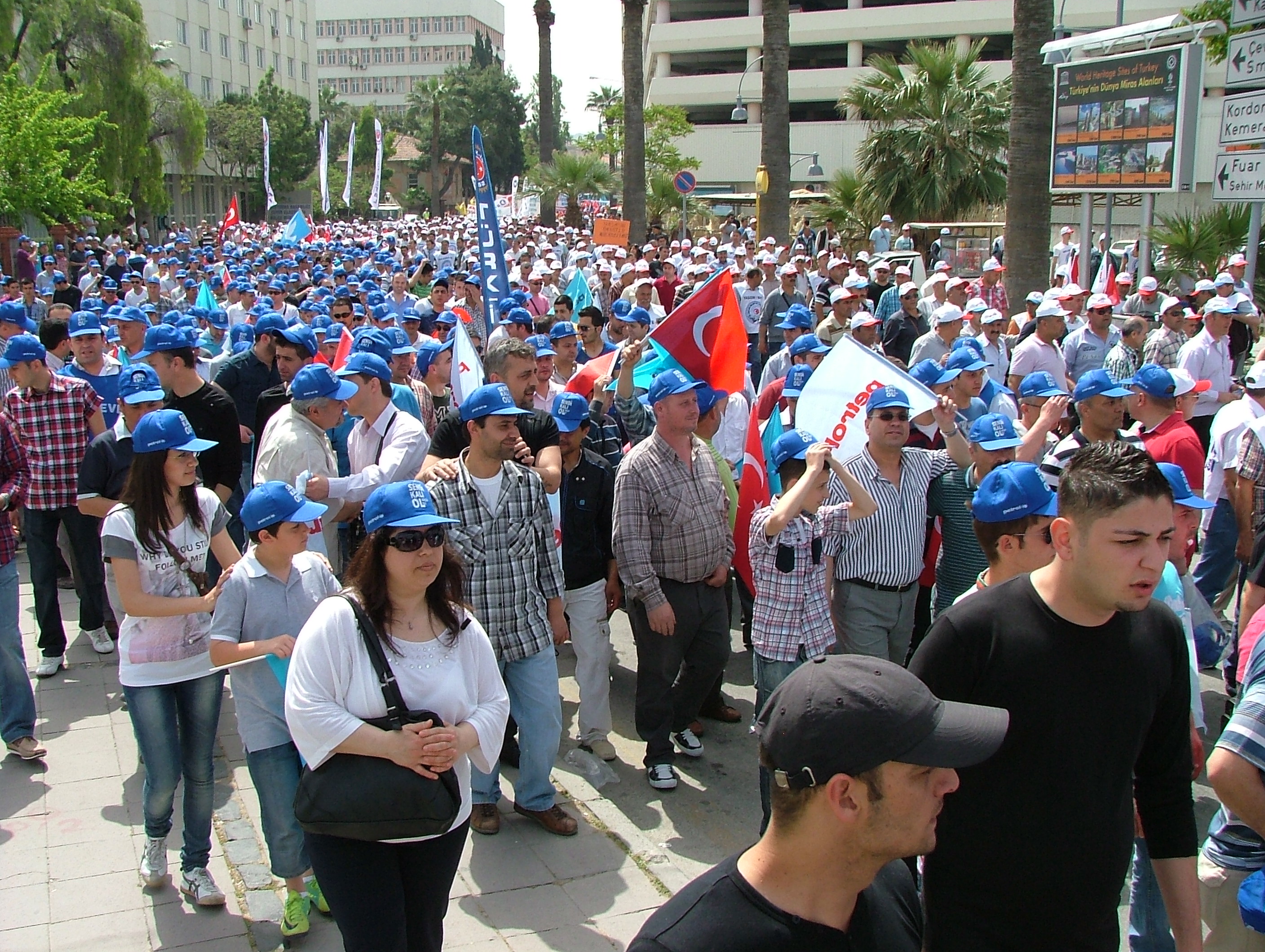 1 Mayıs İzmir ilimizde Gündoğdu Meydanında büyük bir coşkuyla kutlandı. İzmir Şubemiz 492 üye, 25 eş ve çocukla toplam 517 kişiyle davul zurna eşliğinde 1 Mayıs’a katılılım sağladı. Bandırma Şubemizden üç üyemiz de BOR İŞLETMELERİ SATILAMAZ pankartıyla kortejin başında yürütülerek Gündoğdu Meydanında seslerini duyurdu. 1 Mayıs kürsüsünden defalarca anons edilerek, katılımcılar “BORLAR SATILAMAZ” sloganları attılar. 1 Mayıs İşçi ve Emekçi Bayramımız kutlu olsun!