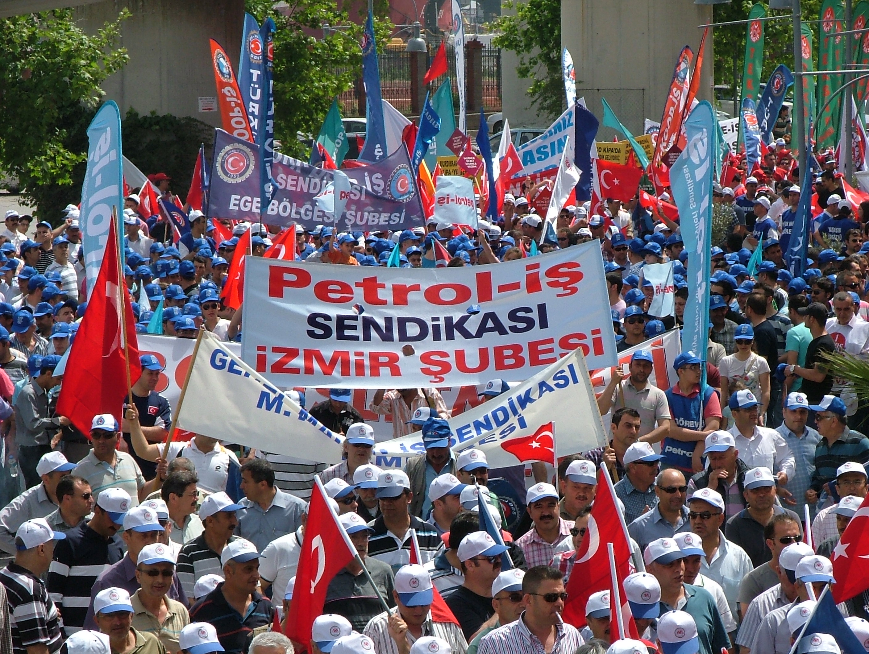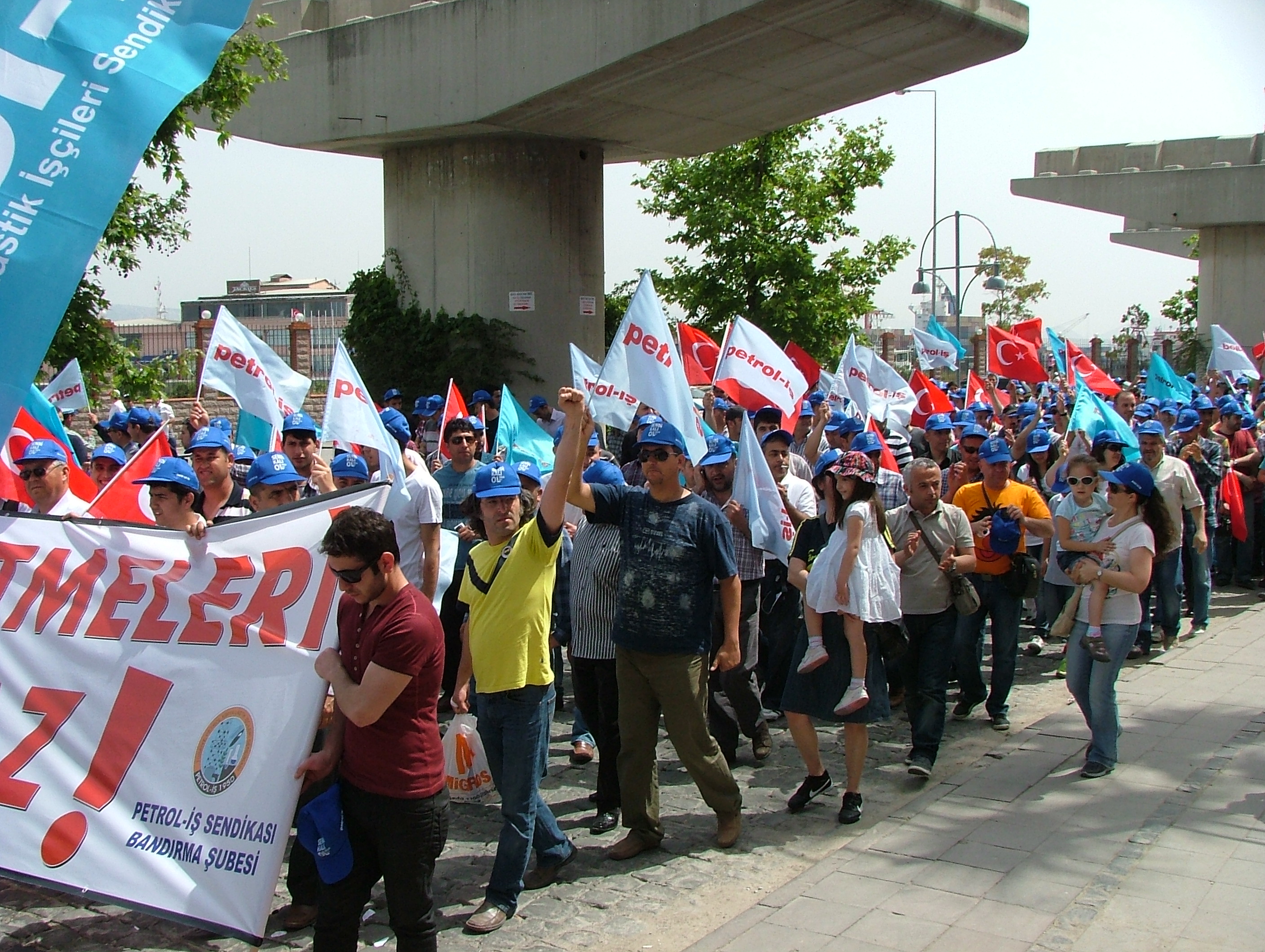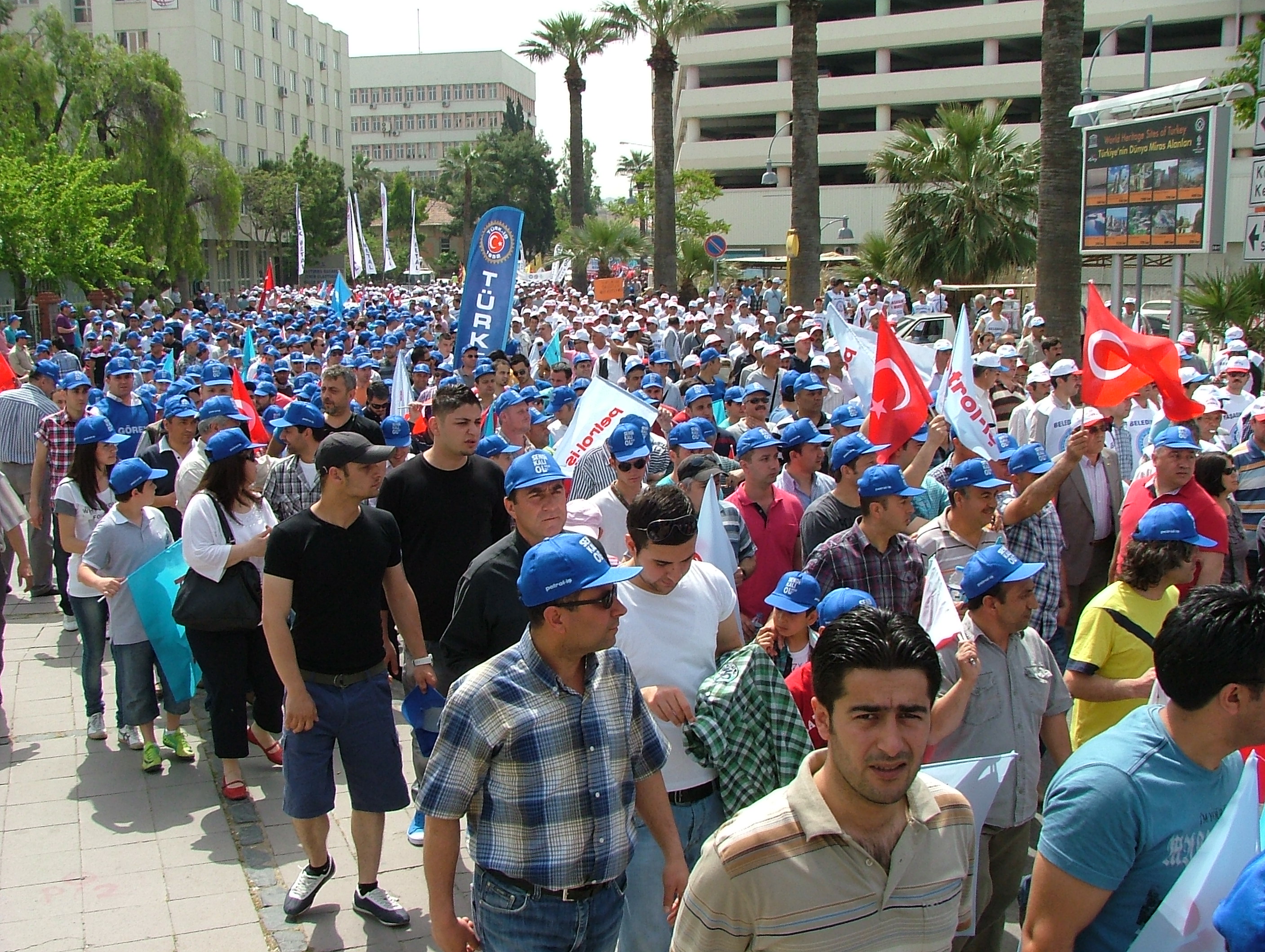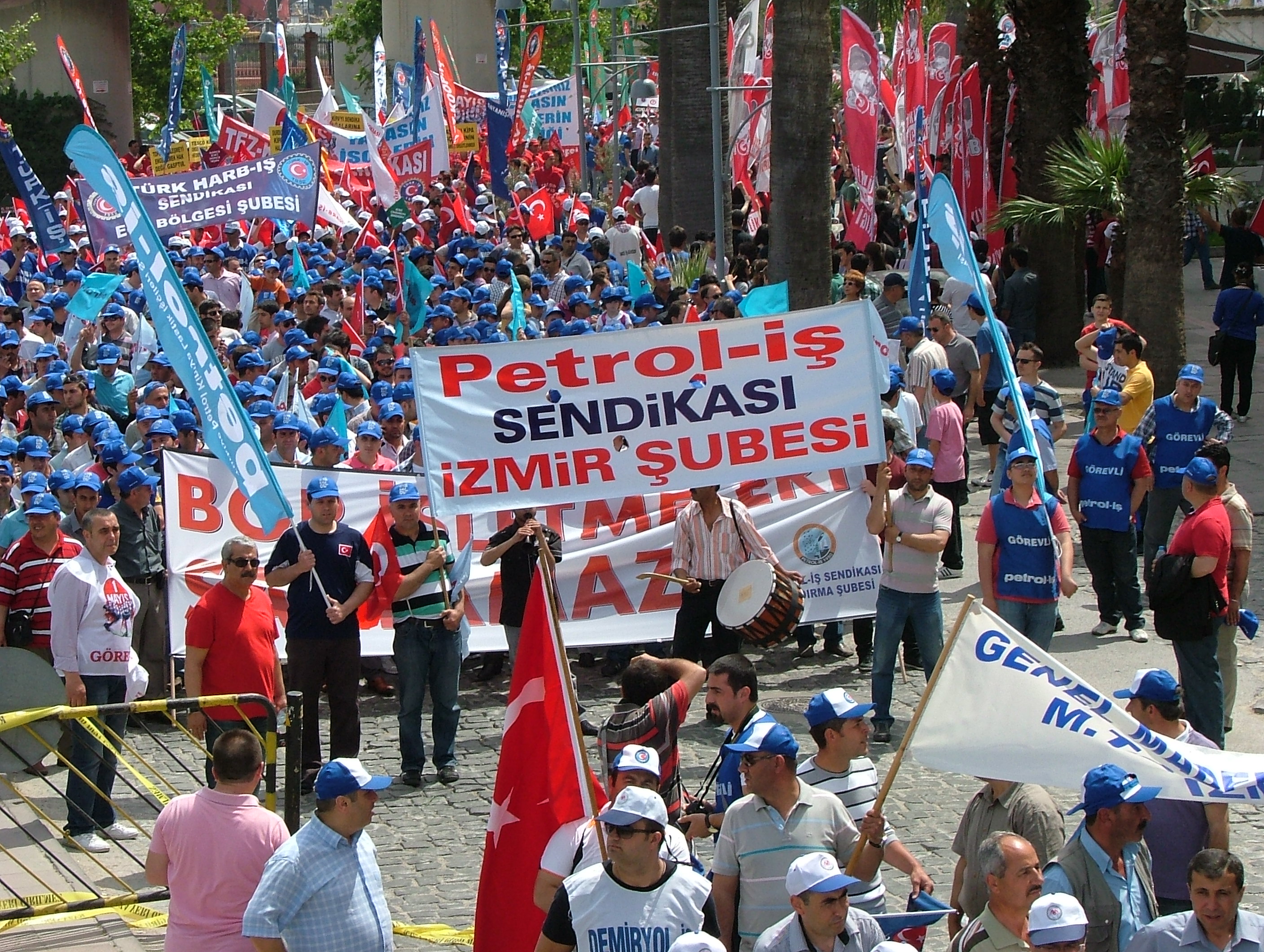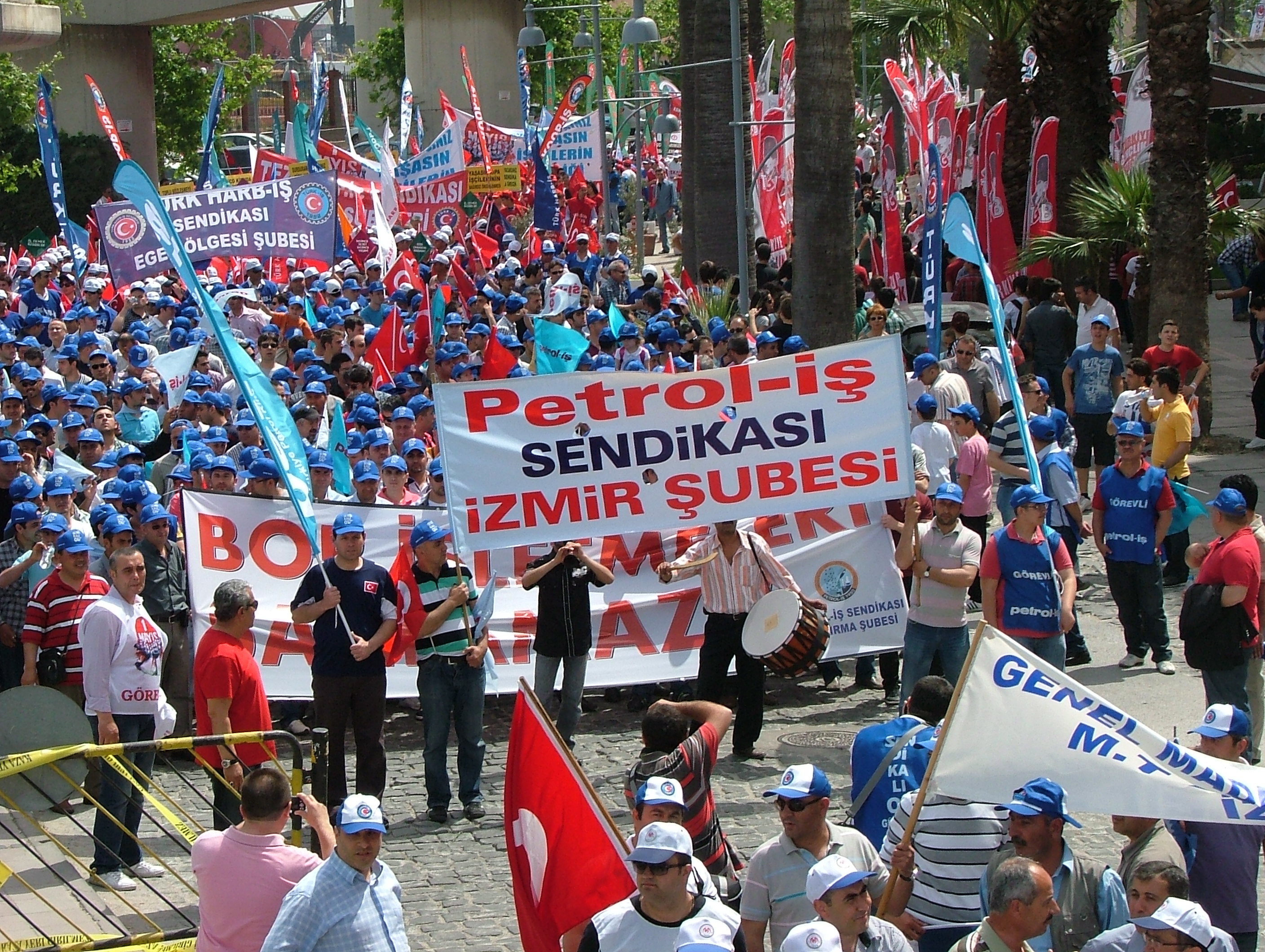 1 Mayıs İzmir ilimizde Gündoğdu Meydanında büyük bir coşkuyla kutlandı. İzmir Şubemiz 492 üye, 25 eş ve çocukla toplam 517 kişiyle davul zurna eşliğinde 1 Mayıs’a katılılım sağladı. Bandırma Şubemizden üç üyemiz de BOR İŞLETMELERİ SATILAMAZ pankartıyla kortejin başında yürütülerek Gündoğdu Meydanında seslerini duyurdu. 1 Mayıs kürsüsünden defalarca anons edilerek, katılımcılar “BORLAR SATILAMAZ” sloganları attılar. 1 Mayıs İşçi ve Emekçi Bayramımız kutlu olsun!