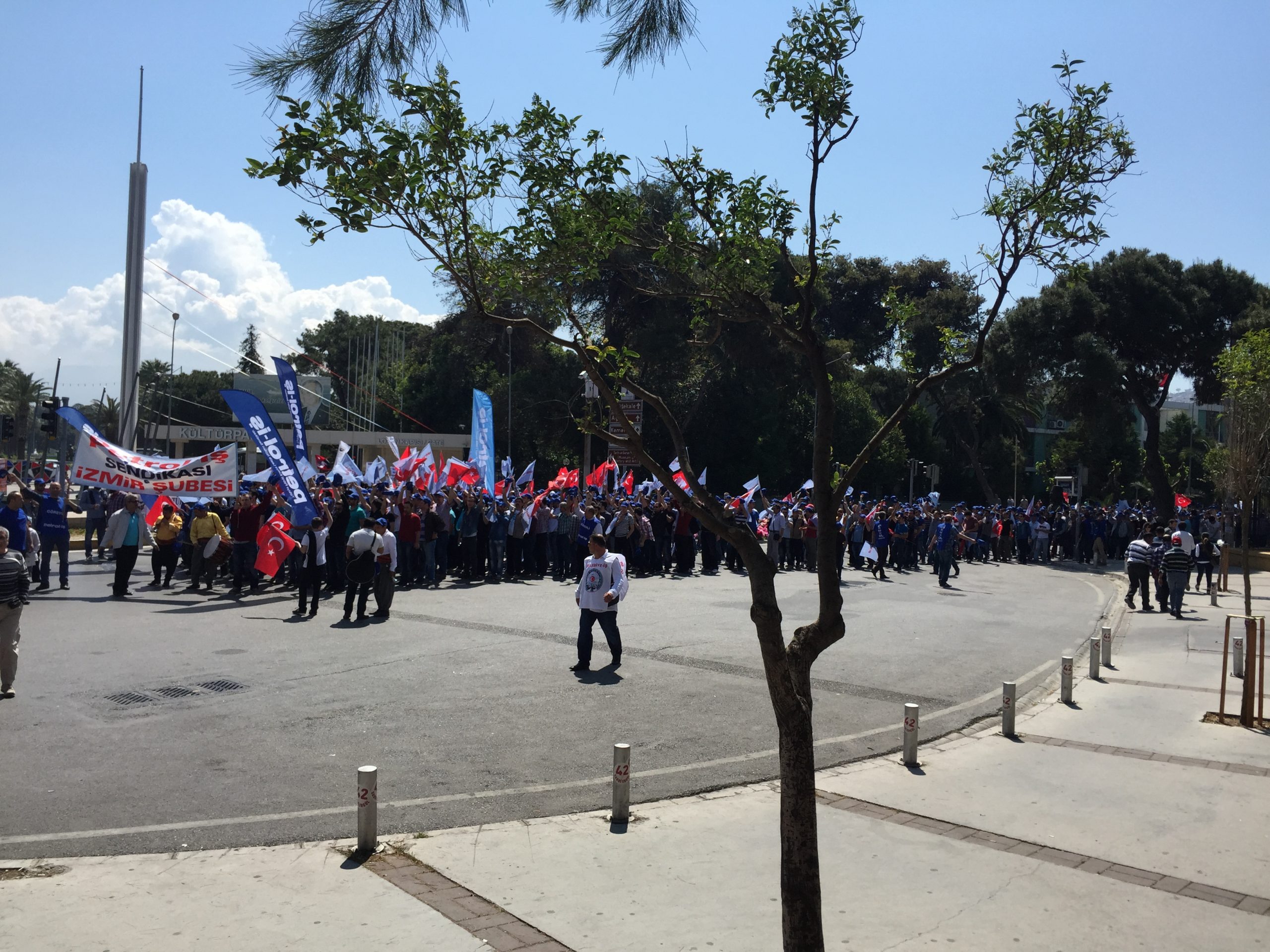 1 Mayıs işçi sınıfının Birlik, Mücadele ve Dayanışma günü İzmir’de Basmane Meydanı’nda sendikaların oluşturduğu kortejin yürüyüşüyle başladı ve Gündoğdu Meydanı’nda yapılan konuşmalarla coşkulu bir şekilde kutlandı. Genel Mali Sekreterimiz İbrahim Doğangül Aliağa’da katıldığı kutlamanın ardından İzmir’e gelerek İzmir şubemizle beraber Gündoğdu Meydanı’nda yapılan 1 Mayıs kutlamalarına katıldı.