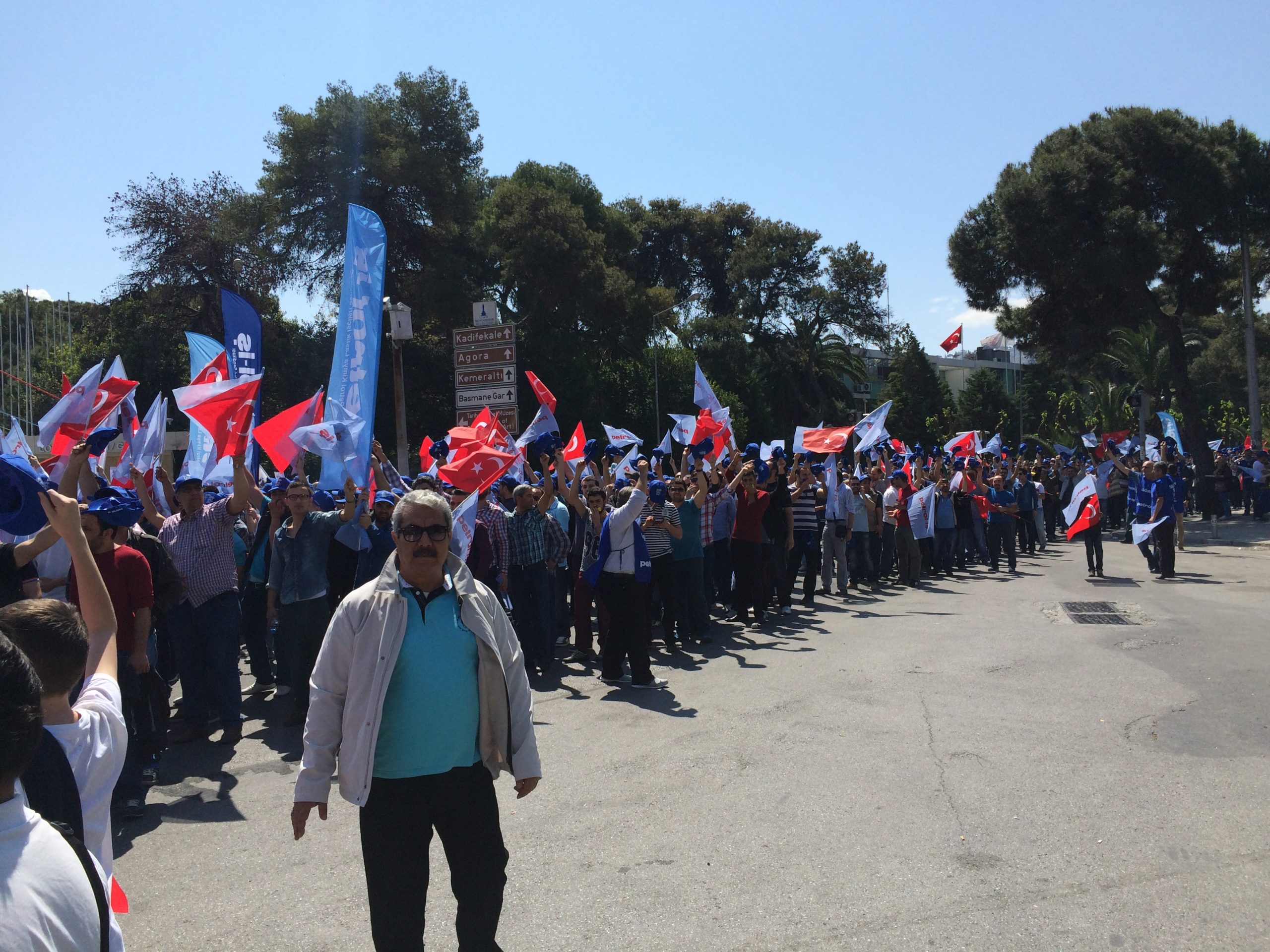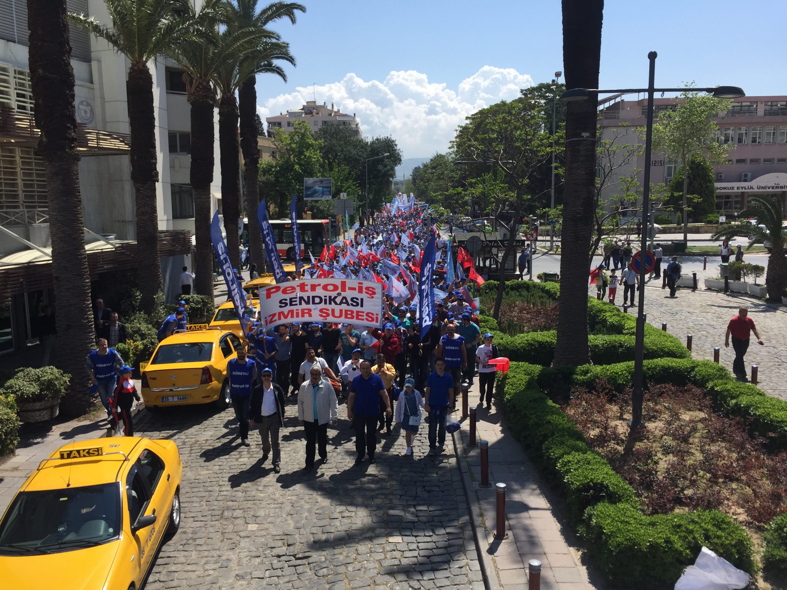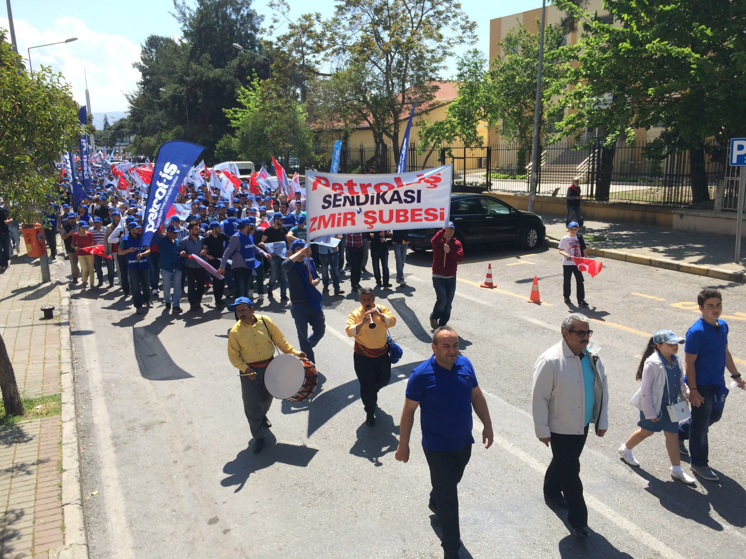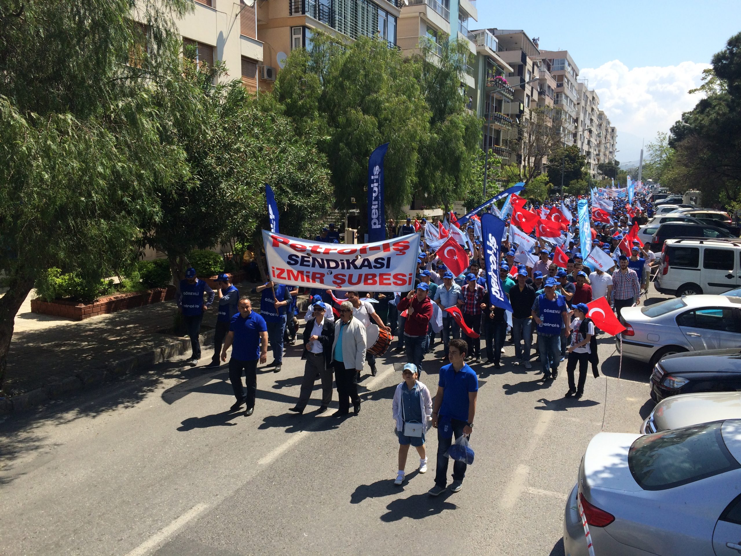 Miting, İzmir şubemize bağlı işyerlerimizden TPI Kompozit Kanat Sanayi ve Ticaret A.Ş., Dyo Boya Fabrikaları Sanayi ve Ticaret A.Ş., Dyo Matbaa Mürekkepleri Sanayi ve Ticaret A.Ş., Tetra Pak Paketleme Sanayi ve Ticaret Ltd. Şti.’den 1150 üyemizin katılımıyla davul zurna eşliğinde coşkuyla geçti.