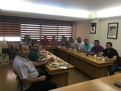 Bayramlaşma töreninde arkadaşlarımıza hitaben konuşma yapan Başkanımız A.Gani Gündoğdu, TPI A.Ş. Sasalı temsilcilerimizin getirdiği yemekleri yiyerek tüm üyelerimizin bayramlarını kutladı.
