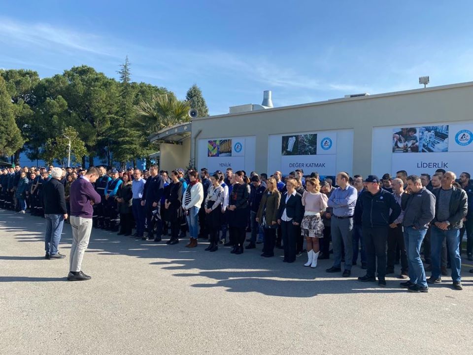 Sendikamız İzmir Şubesi’nin örgütlü olduğu işyerlerinde, İdlib’te hayatını kaybeden şehitlerimiz için eş zamanlı olarak saygı duruşunda bulunuldu, İstiklal Marşı okundu. Sonrasında ise Şube Başkanımız Orhan Zengin’in üyelerimize mesajı okundu.