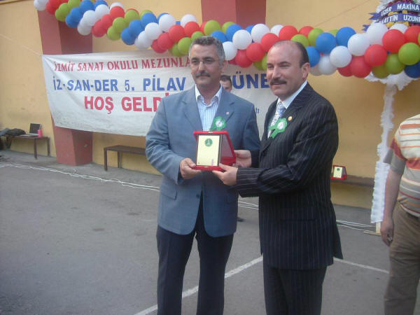 İzmit Sanat Okulu Mezunları Derneği’nin(İZ-SAN-DER) 5.geleneksel pilav günü yapıldı. Geleneksel Pilav Gününe Kocaeli Milletvekili Dr. Nevzat Doğan, Eski Milletvekili Bekir Yurdagül, İlçe Belediye Başkanları, Petrol-iş Kocaeli Şube Başkanı Ali Ufuk Yaşar, İdari Sekreter Cavit Aykanat, Mali Sekreter Nezih Güldenci, Şube Yönetim Kurulu, işyeri temsilcileri, İzmit Sanat Okulu mezunu üyelerimiz ve Sanat okulunun diğer mezunları da katıldı.Şube Başkanımız Ali Ufuk Yaşar törende birde konuşma yaptı. Meslek liselilere YÖK tarafından yapılan katsayı adaletsizliğini eleştiren başkan, öğrencilerin staj konusunda çektikleri sıkıntı ve zorluklara da değindi. Pilav gününe katılan siyasilerden sorunların çözümü için destek isteyen Başkan Ali Ufuk Yaşar’a derneğe katkılarından dolayı onur ödülü verildi.