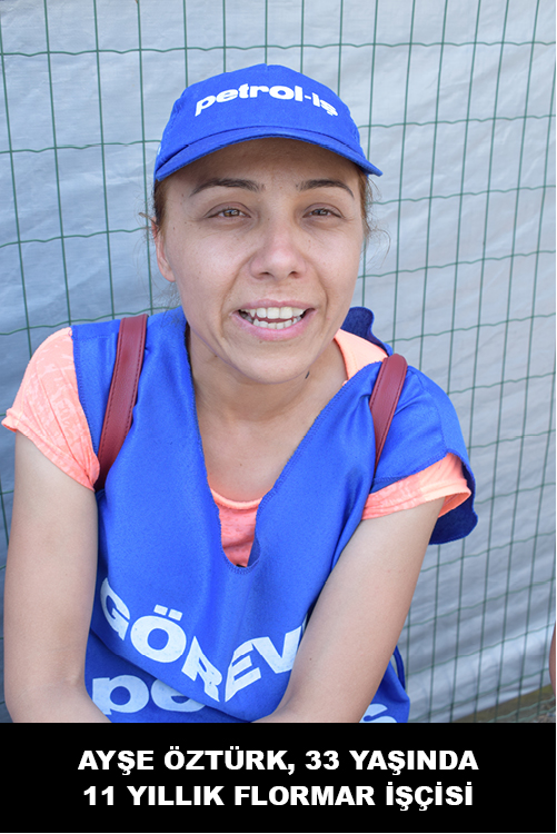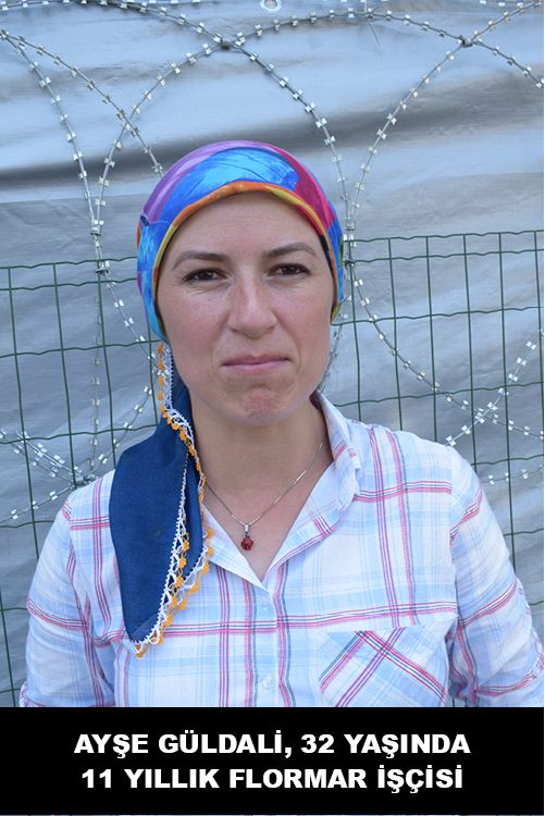 11 yıllık Flormar işçisi Ayşe Güldali 32 yaşında. Bekar ve anne babasıyla yaşıyor. Herşeyin farkında olan direnişçilerden biri. Kasım’da 12 yılı dolacakmış, “nasip olmadı” diyor. Daha önceki işyerinden mesailer çok uzundu diye ayrılmış, ücretleri iyiymiş ama. Dokuz senedir operatör olarak çalışıyor Flormar’da. Babasının 400 liralık emekli maaşına ek olarak eve giren tek maaş, üstelik kirada oturuyorlar. Yine de desteklemişler kızlarını. “Üç ay da gerekse, dört ay da gerekse diren” diyerek yanında olduğunu belirtmiş babası.