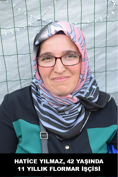 Hatice Yılmaz, 42 yaşında. 11 yıllık Flormar işçisi. İki oğlu var. Hakkını alamadığı için, operatör olarak çalıştığı halde, yeni gelenlerle aynı maaşı aldığı için sendikaya üye olmaya karar vermiş. Ne ikramiye var ne bir ek gelir diye ekliyor düşüncelerini. Şeflerin davranışlarından da şikayetçi Hatice Yılmaz. Kaba davranışlara maruz kalmışlar yıllarca. Diğer direnişçi kadınlar gibi o da 25. madde gerekçe gösterilerek atılmış. Nedir diyoruz, biz de bilmiyorduk, çıkınca öğrendik diyor. “Hırsızlıkmış, iş durdurmaymış, kırmaymış, dökmeymiş, böyle söylendi bize” diyor.