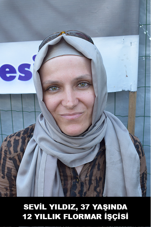 37 yaşında, 12 yıllık Flormar işçisi Sevil Yıldız ise sendikaya sonradan üye olmuş. İlk başta temkinli yaklaşmış örgütlenmeye. Ancak çalışanları, ekibi işin içine girince geride duramamış.  Üretim müdürü “sen bu işin içinde yoksun, yukarı çık” deyince, “yokum, ama arkadaşlarımı toparlayamıyorum” cevabını vermiş. Arkadaşlarını çalışmaya ikna edemeyince onu da atmışlar. O da çevik kuvvet eşliğinde atılanlardan. Bundan önceki işyeri de sendikalaşmaya çalışırken kapandığı için ilk başta aynı şeyin burada da olacağını düşünmüş. Ancak direnişe katılınca umudu artmış.