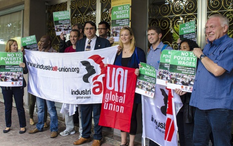 IndustriALL, UNI ve ITUC’un ortak mektubunda Kamboçya hükümetinden, asgari ücretin, emeğiyle 5 milyar dolarlık bir sektörü besleyen hazır giyim işçilerinin onurlu bir yaşam sürmesini sağlayacak şekilde derhal artırılması gerektiği belirtiliyor ve şöyle deniyor: