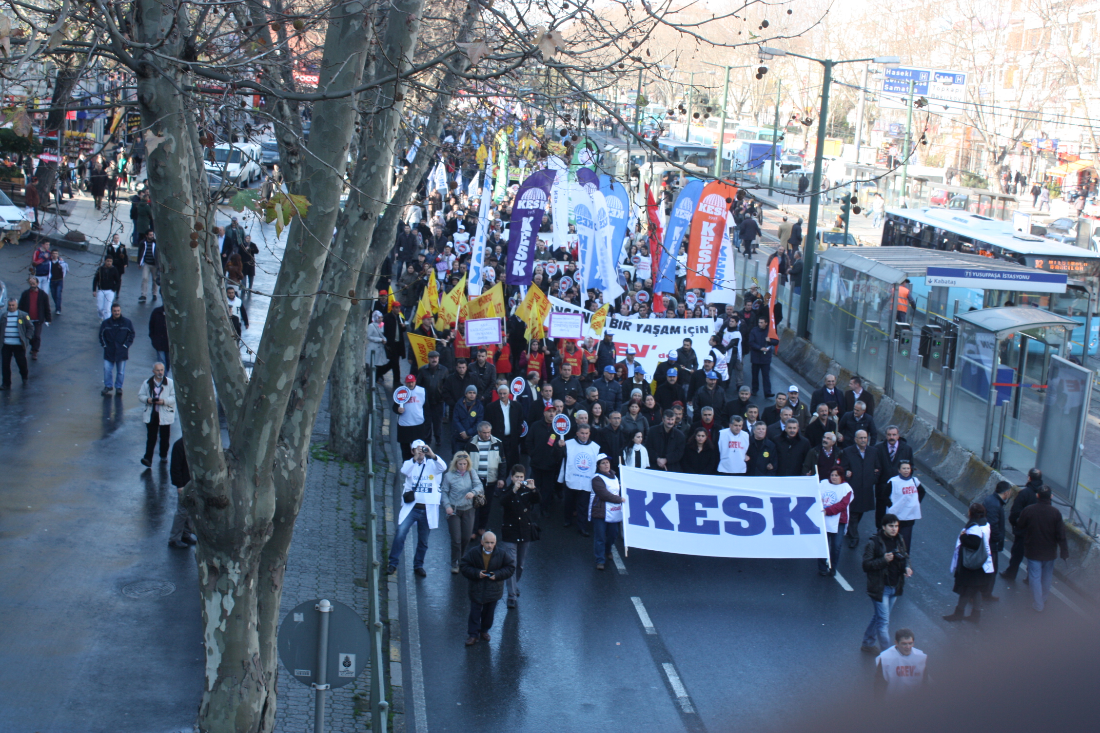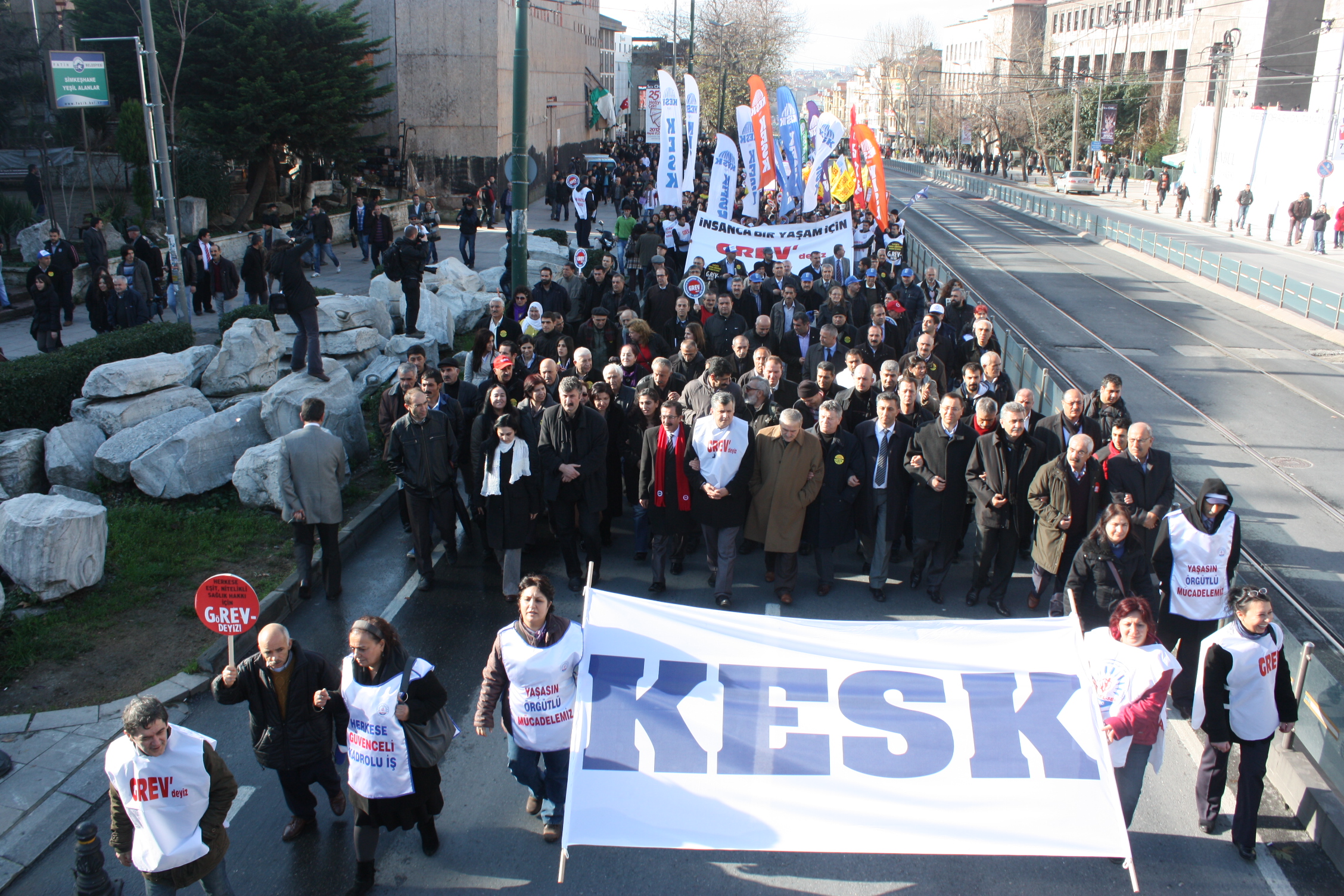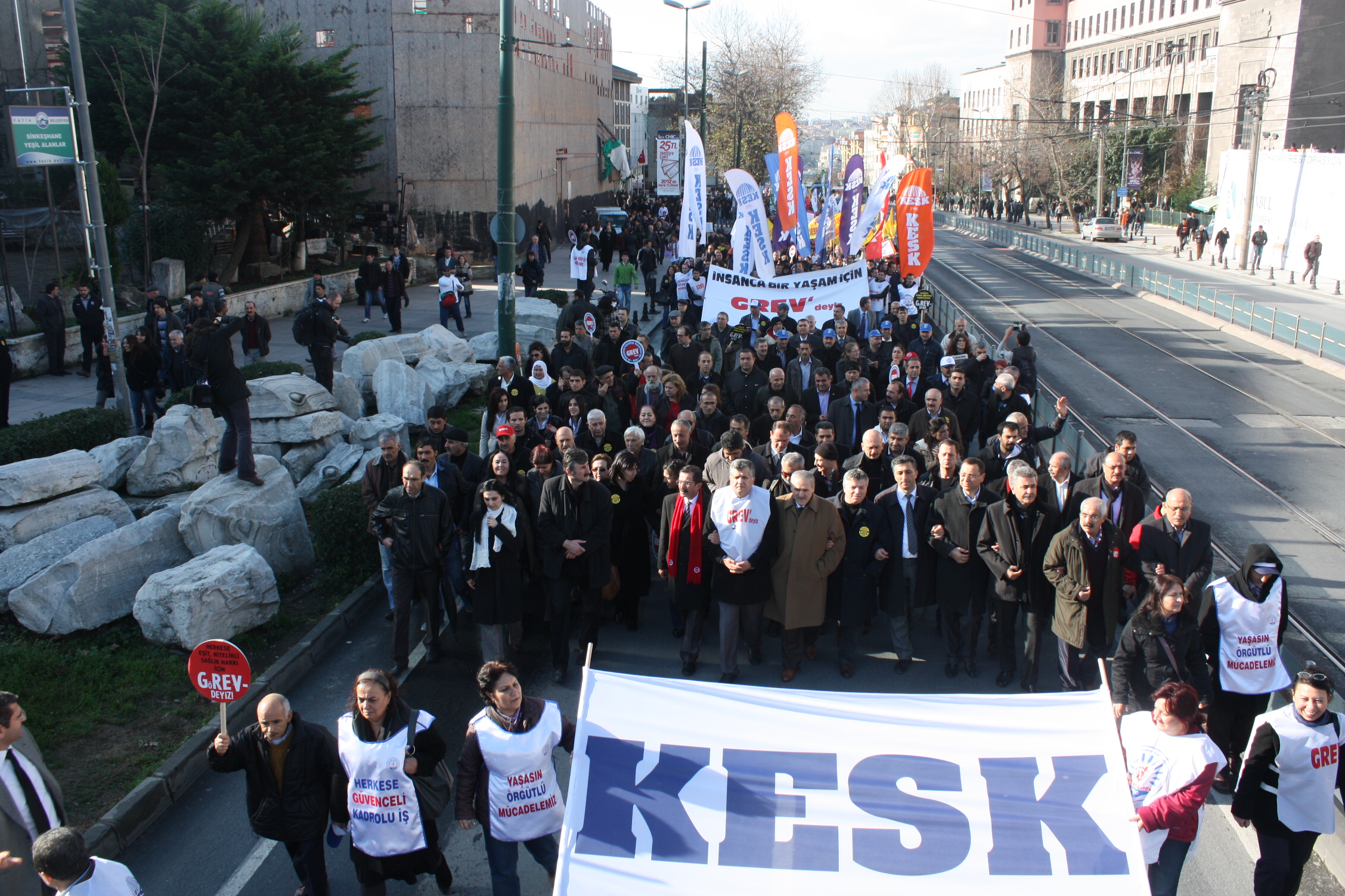 İstanbul’da Anadolu Yakası’nda çalışan kamu emekçileri Eminönü Garı önünde, Avrupa Yakası’nda çalışan kamu emekçileri de Çapa Tıp Fakültesi önünde toplanarak ortak miting alanı olarak belirlenen Beyazıt Meydanı’na doğru her iki koldan KESK pankartı arkasında kortej oluşturarak yürüyüşe geçtiler. İşçi sendikaları, meslek odaları, siyasi partiler, demokratik kitle kuruluşları ve gençlik örgütleri de KESK kortejlerinin arkasında yürüyüşe katıldılar.