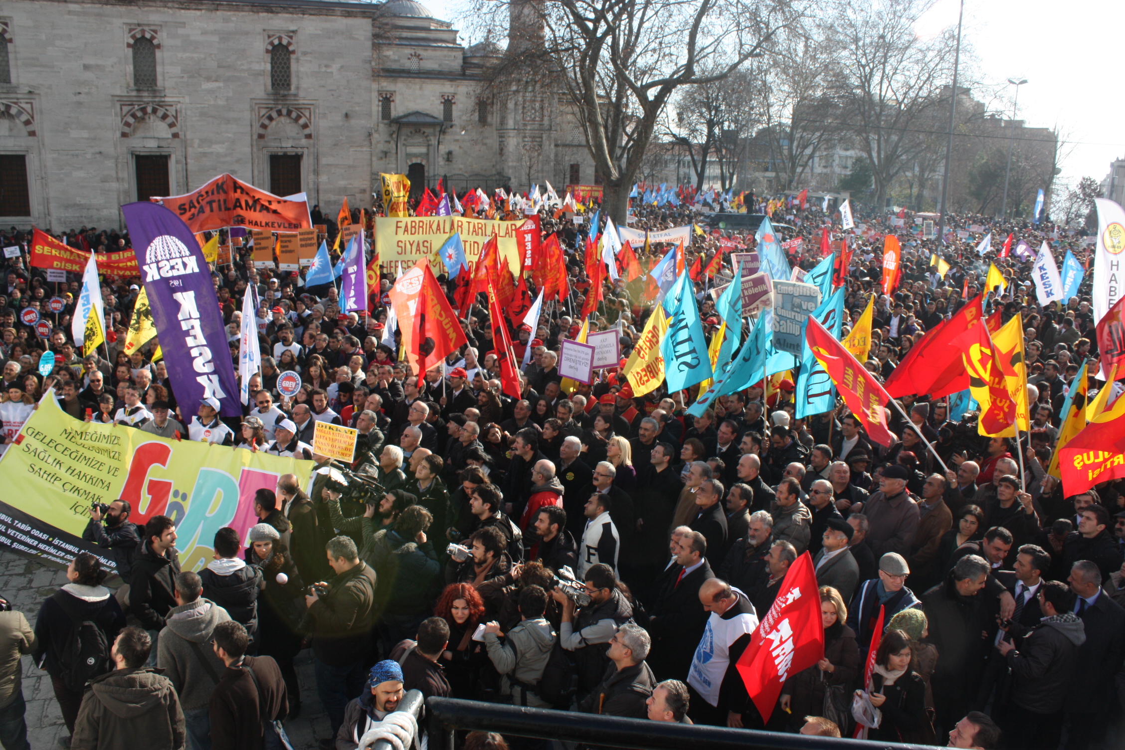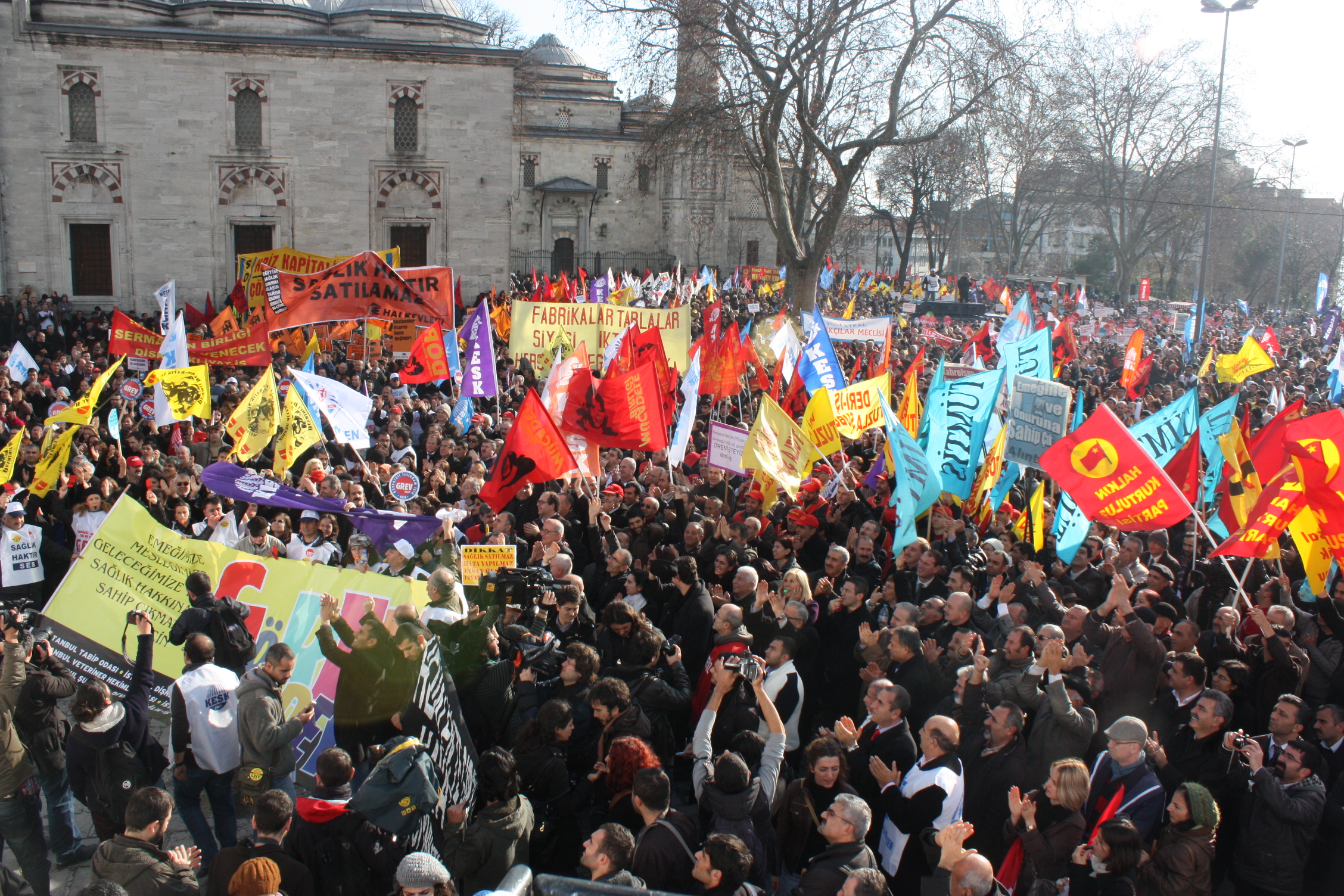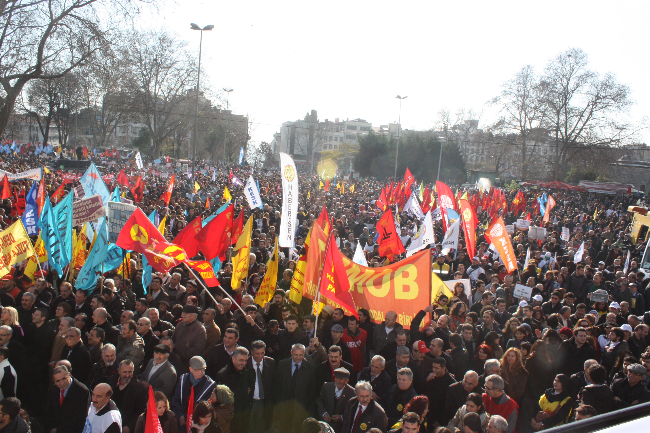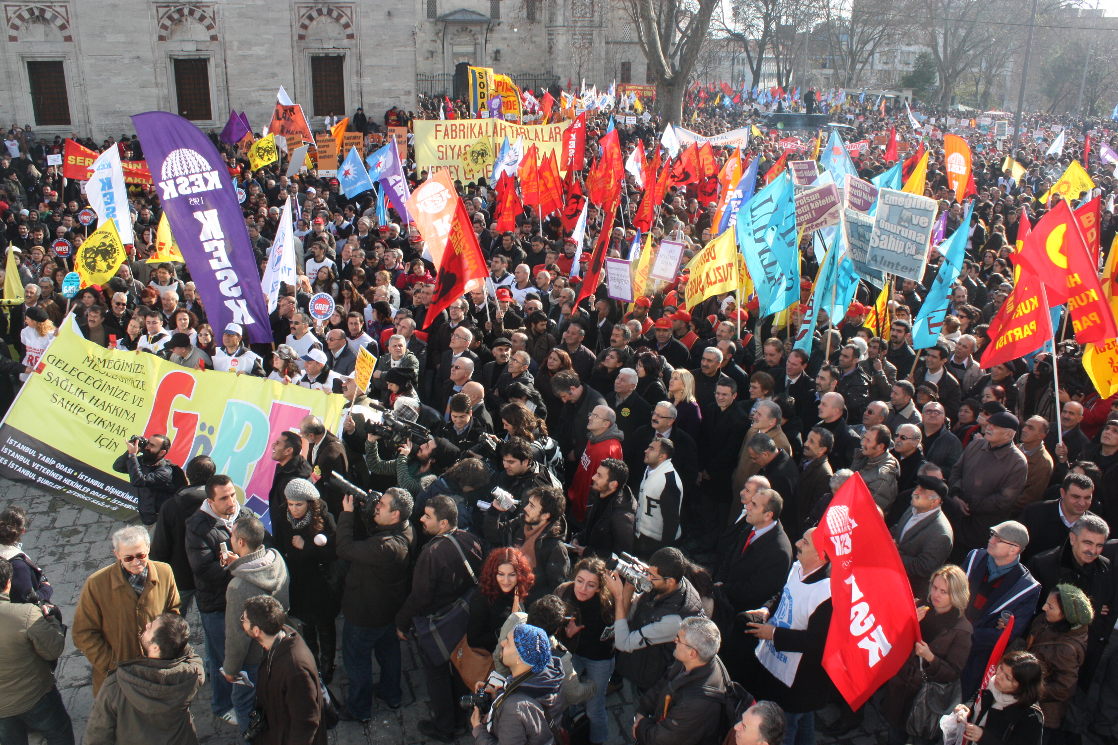 İstanbul’da Anadolu Yakası’nda çalışan kamu emekçileri Eminönü Garı önünde, Avrupa Yakası’nda çalışan kamu emekçileri de Çapa Tıp Fakültesi önünde toplanarak ortak miting alanı olarak belirlenen Beyazıt Meydanı’na doğru her iki koldan KESK pankartı arkasında kortej oluşturarak yürüyüşe geçtiler. İşçi sendikaları, meslek odaları, siyasi partiler, demokratik kitle kuruluşları ve gençlik örgütleri de KESK kortejlerinin arkasında yürüyüşe katıldılar.