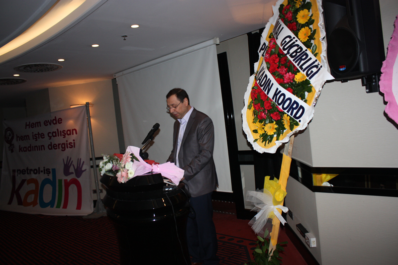 Onuncu yıl etkinliğimizin açılış konuşmasını Petrol-İş Sendikası Genel Başkanı Mustafa Öztaşkın yaptı. Öztaşkın, konuşmasına, toplumun yarısını oluşturmalarına rağmen kadınların parlamentoda, işyerlerinden sendikalara, özel ve kamusal yaşamın her alanında yeterince temsil edilmediğini, sendikamızın bu alanda kabuğunu kırmaya başladığını söyleyerek başladı.
