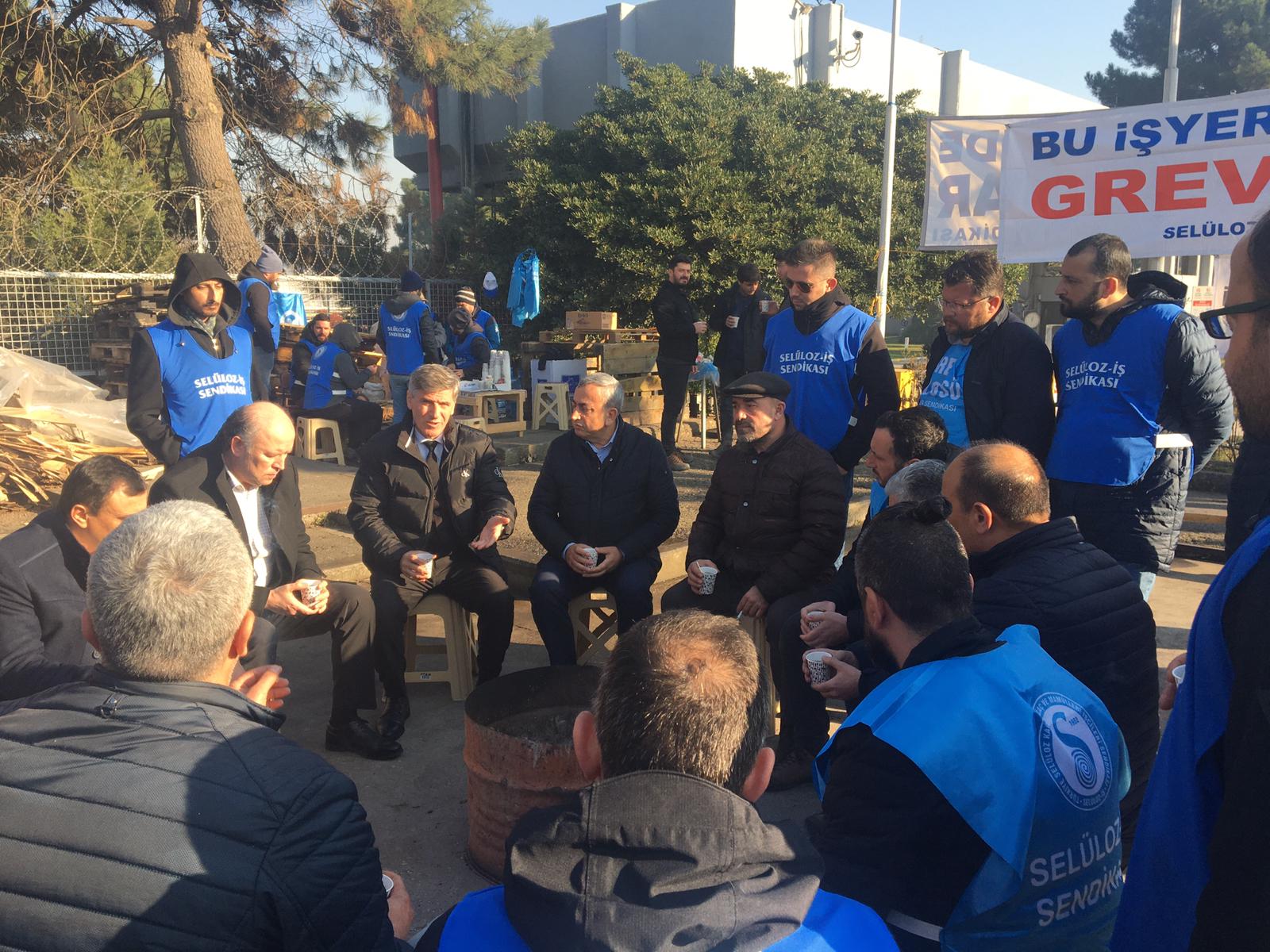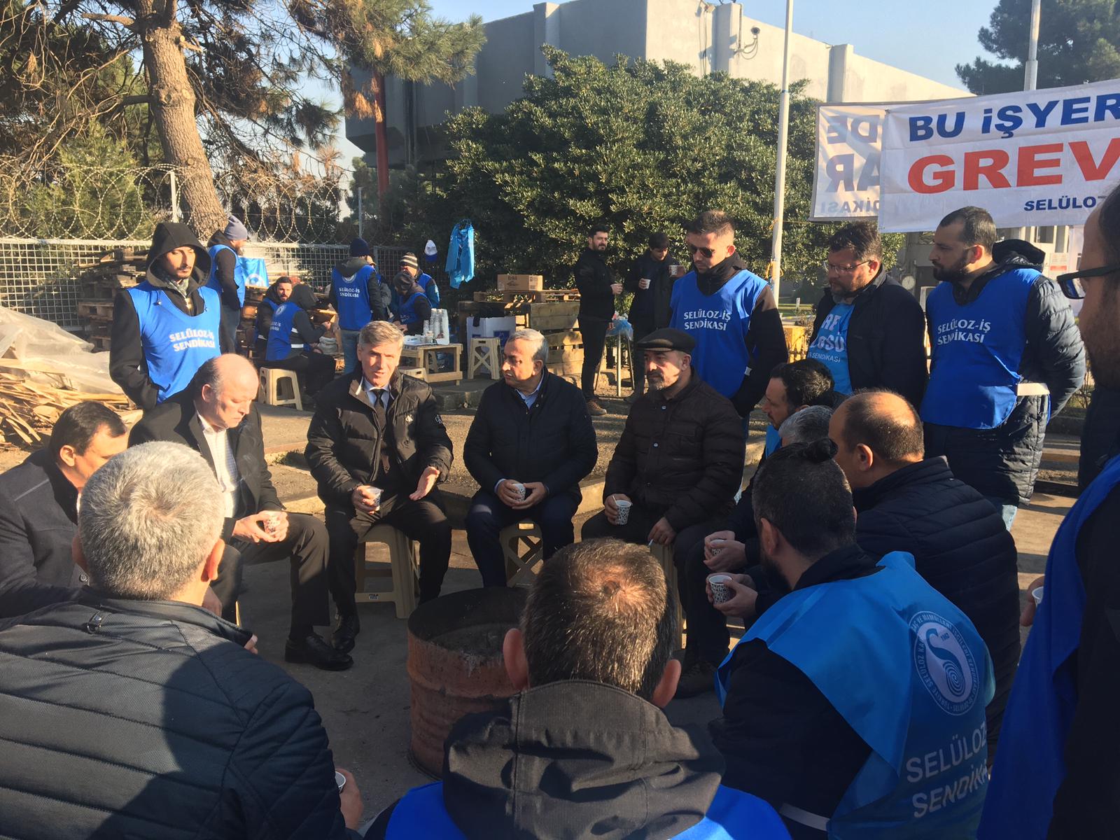 Petrol-İş Heyeti grev alanında, “Yaşasın Sınıf Dayanışması” sloganı ile karşılandı. Selüloz-İş Sendikası Genel Başkanı Aydın Parlakkılıç grev süreci hakkında sendikamız heyetine bilgi verdi, gelişmeleri aktardı.