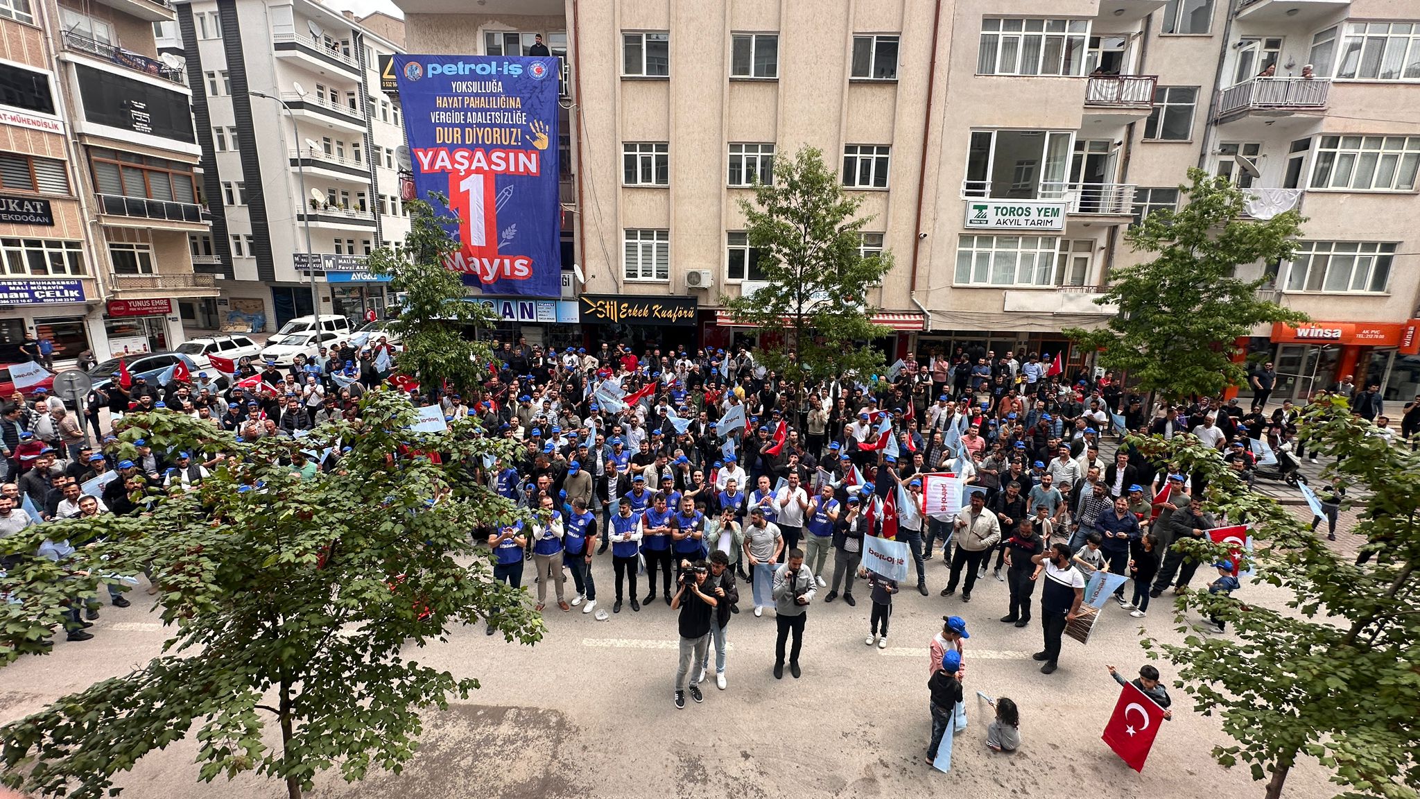 Sendikamız Kırıkkale Şubesi 1 Mayıs’ta alanlara çıkarak bayramlarını coşkuyla kutladılar. Kırşehir İrtibat Bürosu önünde başlayan 1 Mayıs kutlaması, halay ve marşlarla devam etti. İrtibat Bürosu önünde yapılan kutlamaların ardından Kırşehir 1 Mayıs Tertip Komitesi’nin organize ettiği programa geçildi. Tertip Komitesi Üyesi Kırıkkale Şube Başkanımız Mehmet Doğan burada yaptığı konuşmasında vergide adaletsizlik, kıdem tazminatı, düşük ücretler, emekli aylıkları ve hayat pahalılığı başlıklarına vurgu yaptı. Kırşehir’deki kutlamaların ardından Şube Başkan Yardımcısı Fatih Küşüm ve TÜPRAŞ, MKE Barut Fabrikası ve BOTAŞ’ta çalışan üyelerimiz Ankara Tandoğan’da yapılan 1 Mayıs programına katıldılar.