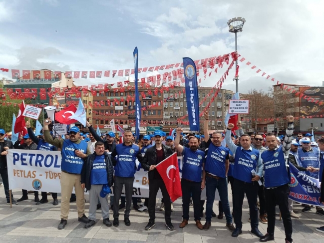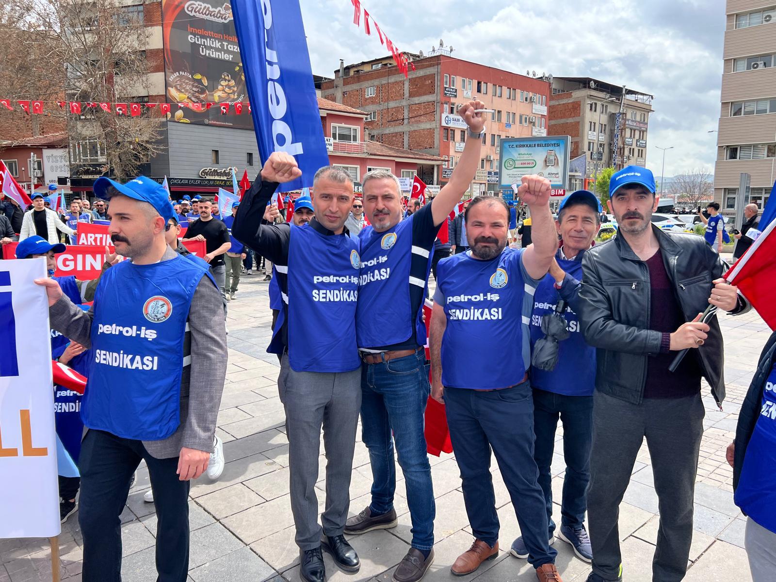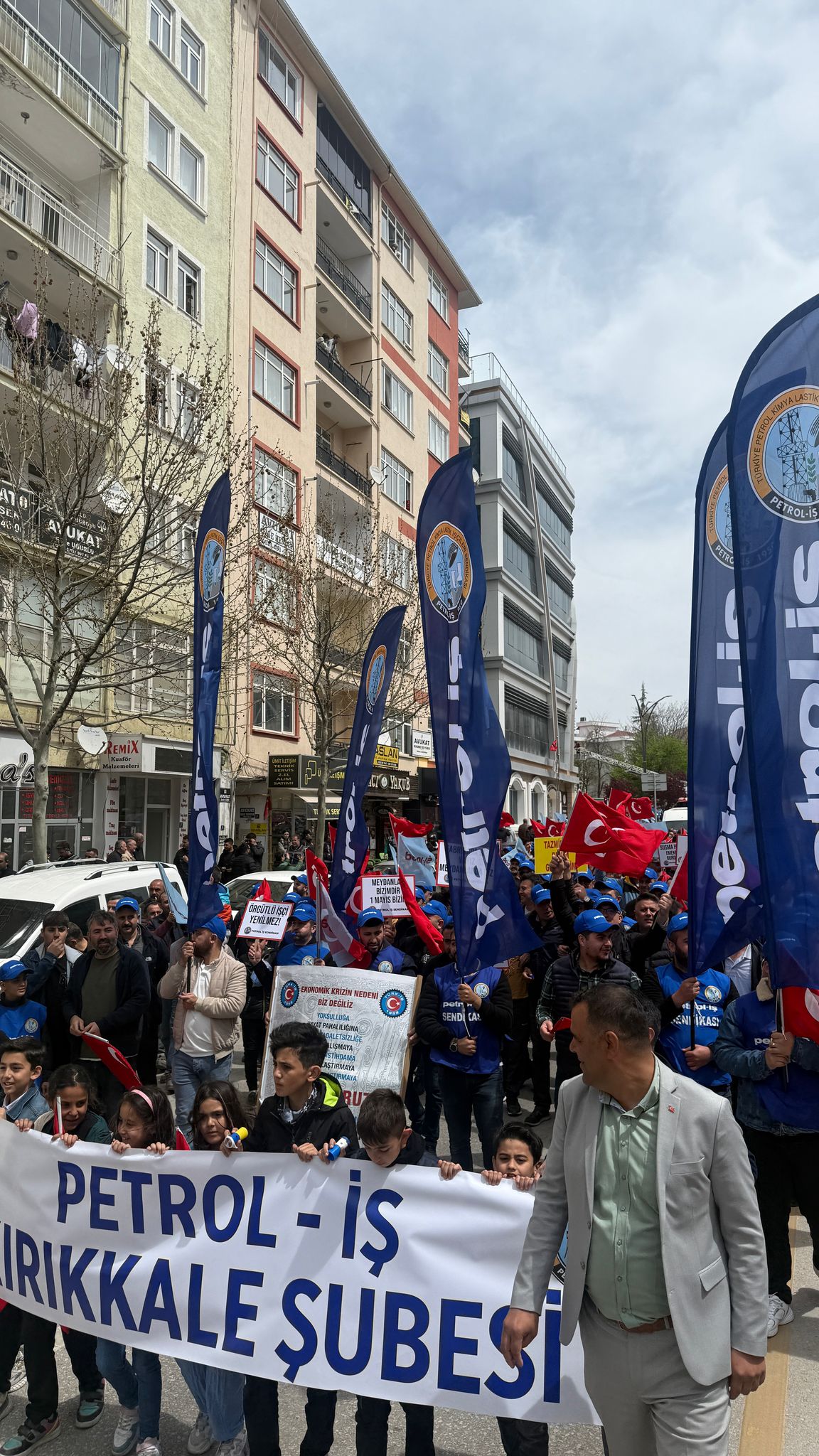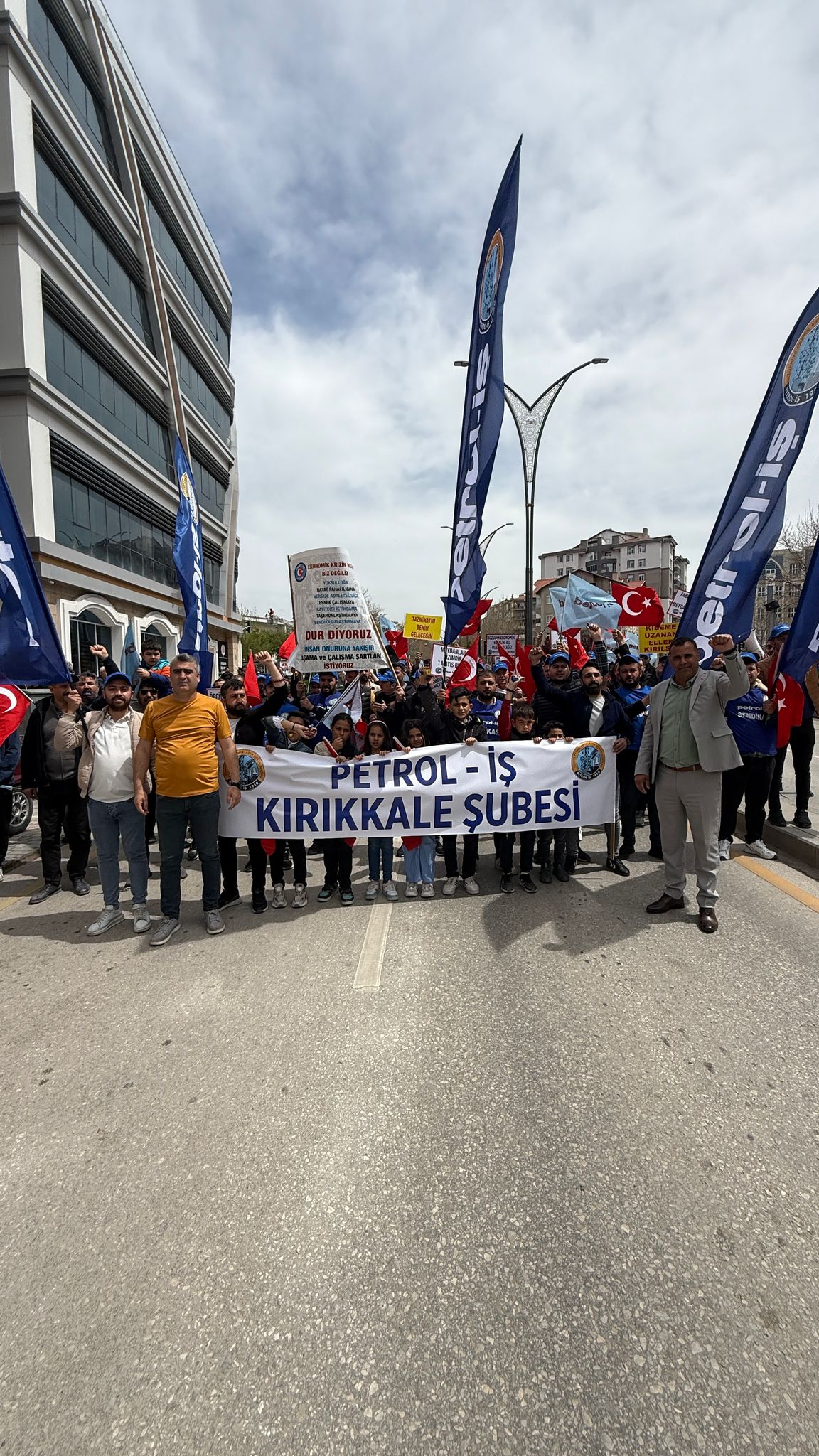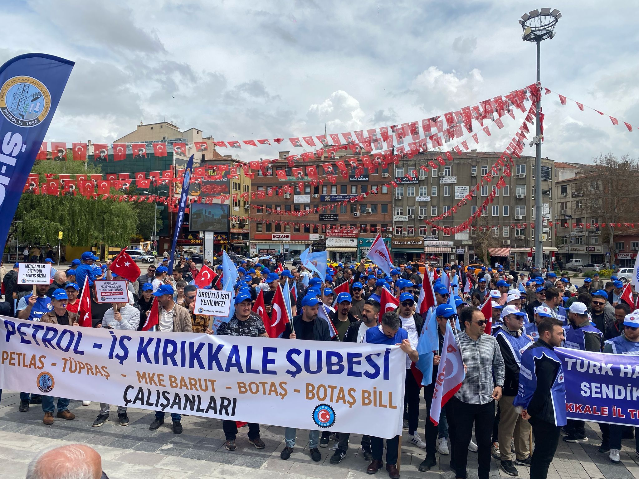 Sendikamız Kırıkkale Şubesi bu sene 1 Mayıs’ı Kırıkkale ve Kırşehir’deki meydanlarda kutladı. Kırıkkale’de TÜPRAŞ, MKE Barut ve BOTAŞ işyerlerinde çalışan üyelerimiz saat 11.00’de şube önünde toplanarak Kırıkkale Cumhuriyet Meydanına kortejler halinde sloganlarla yürüdü. 1 Mayıs mitingine Kırıkkale’de kurulu sivil toplum örgütleri, sendikalar, siyasi parti temsilcileri ve yurttaşlar da yoğun destek verdi. Yürüyüş boyunca üyelerimiz TÜPRAŞ’ta devam eden toplu pazarlık süreci başta olmak üzere taleplerini ve beklentilerini dile getiren sloganlar attı. Cumhuriyet Meydanı’nda saat 12.00’da başlayan mitingde ise yapılan açıklamada emekçilerin yaşam şartlarının her geçen gün zorlaştığına dikkat çekildi.