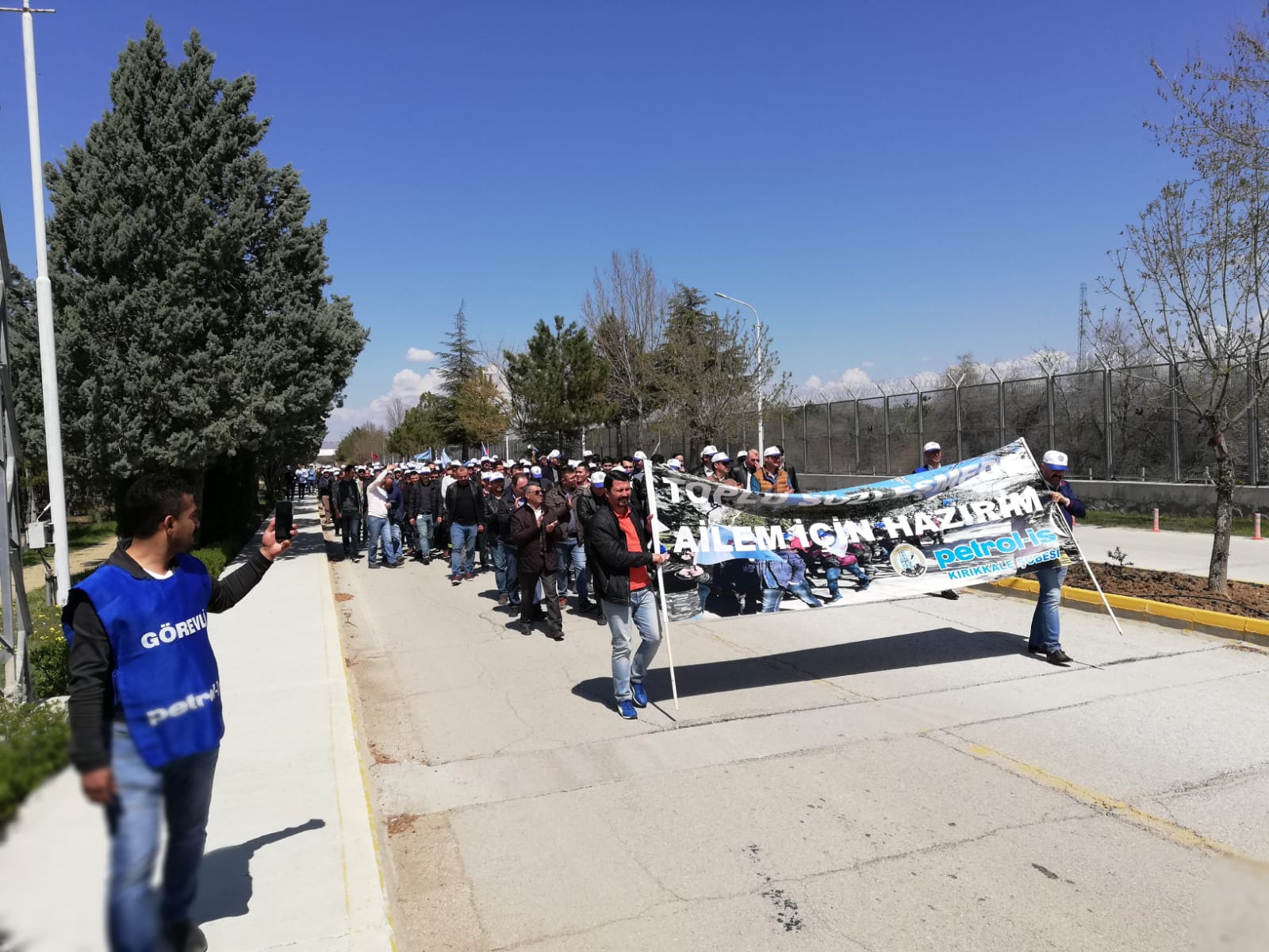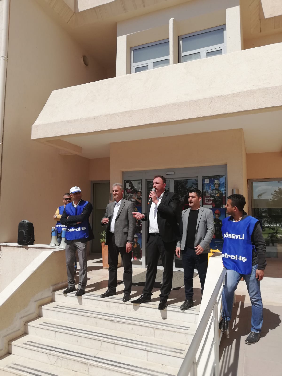 Kırıkkale Şubemizin örgütlü olduğu Tüpraş isyerinde TİS gorusmesinin 7.oturumunda da anlaşma sağlanamaması üzerine Tüpraş İzmit,Aliağa,Kırıkkale,Batman Rafinerileri’nde çalışan yaklaşık 4300 petrol-is üyesi eş zamanlı protesto eylemi yapıldı. Tam gün iş bırakma eylemi yapan üyelerimize Kırıkkale Şube Başkan Yardımcılarımız Osman Çakıl ve Osman Aslan TİS süreci ile ilgili fabrika önünde açıklama yaptılar
