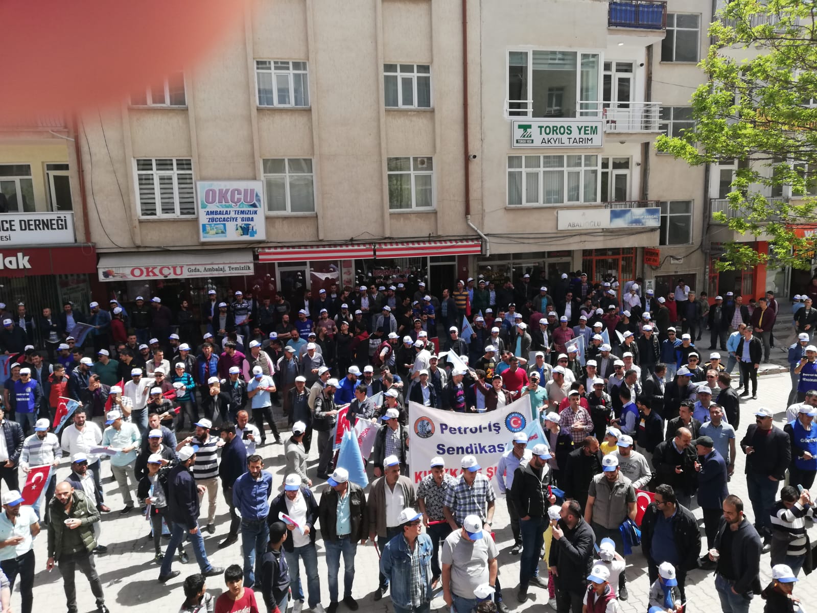 Kırıkkale Şubemiz bu yıl 1 Mayıs Emek ve Dayanışma Gününü örgütlü olduğu Petlas, Tüpraş, MKEK Barut ve BOTAŞ işyerlerimizdeki üyelerimizin katılımı ile Petlas Çalışanları Dernek Binası’nın açılışı ile birlikte coşkulu bir şekilde Kırşehir’de kutladı. Kırıkkale Şube Başkanımız Murat Kaya ve Başkan Yardımcılarımız Osman Çakıl ve Osman Aslan konuşmalarında kıdem tazminatı ile ilgili açıklamalarda bulundular.