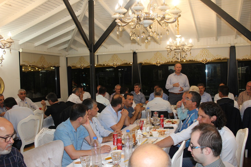 İftar yemeğinin ardından Kocaeli Şube Başkanımız Salih Akduman bir konuşma yaptı.  Akduman  yaptığı konuşmada; “Bu akşam burada bizlerin bu makamlara gelmesinde emeği geçen çok değerli büyüklerimiz var.  Sizleri burada görmek bizi çok mutlu ediyor. Sizlerle birlikte, omuz omuza birçok sıkıntıyı atlatarak bugünlere geldik. Üzüntüyü, sevinci, mutluluğu paylaştık. Her yıl düzenlemiş olduğumuz iftar programında bir araya gelerek  dostlarımıza karşı vefa borcumuzu ödemek istiyoruz. Bizlerden sonra gelecek olan nesillerden de bu vefa örneğini ileriki nesillere taşımaları istiyoruz. Davetimize katılarak bizi çok mutlu ettiniz, sizlere şahsım ve  ekibim adına  teşekkür ediyor, gelecek yıl da tekrar iftar programında buluşmayı  diliyorum.” dedi.