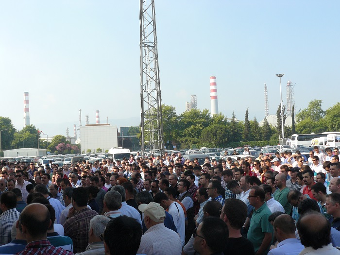 Türk-iş Başkanlar Kurulu’nun aldığı karar neticesinde Yatağan, Yeniköy, Kemerköy Santralleri ile bu santrallere kömür veren kömür sahalarının özelleştirmesine karşı aylardır direnişlerini sürdüren Maden ve Enerji işçilerine destek amaçlı Kocaeli Şubeye bağlı Tüpraş, Gübretaş, Ege Kimya iş yerlerlerinde basın açıklaması yapılarak 1 saat geç işbaşı yapıldı. Kocaeli Şube Başkanı Salih AKDUMAN Tüpraş İzmit Rafineri Müdürlüğünde çalışan sendika üyelerine fabrika önünde konuyla ilgili yazılan merkezi bildiriyi okudu: