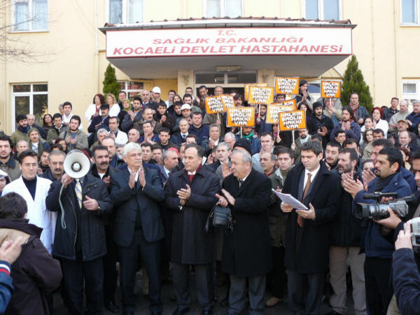 Kocaeli’de SGGSS eylemiHükümetin hazırladığı Sosyal Sigortalar ve Genel Sağlık Sigortası Yasa Tasarısına her kesimden tepki yağıyor.Kocaeli Herkese Sağlık ve Güvenli Gelecek Platformu’nun 24 Şubat tarihinde yaptığı protesto eyleme Petrol-İş Kocaeli Şubesi, Petrol-İş Yarımca Şubesi ile DİSK ve KESK’e bağlı sendikalar, TMMOB, Türk İş, siyasi partiler ve toplum kuruluşları katıldı. Kocaeli Devlet Hastanesi önünde yapılan eylemde okunan basın bildirisinde şöyle denildi:“Hükümet, sağlık alanında yaptığı düzenlemeleri bizlere reform diye kabul ettirmeye çalışıyor. Oysa getirilen değişikliklerin hiçbirisi, bizlerin hakkını hiçbir şekilde iyileştirmiyor. Tersine daha da daraltıyor. Bütün bu düzenlemeler, bizlerin iyiliği için değil, yerli ve yabancı sermaye istediği için yapılıyor. Kabesi IMF, secdesi yerli patronlar olanlar, sağlık ve sosyal güvenlik haklarımızı tamamıyla yok etmek istiyorlar. Oysa bu ülkenin tüm zenginliklerini biz yaratıyoruz. Yolsuzluk, suiistimaller ve sömürü ortadan kaldırıldığında, bu kaynaklar herkese emeklilik ve sağlık hakkını da içeren insanca bir yaşam sunmaya yeterlidir. İşçisi, kamu çalışanı, esnafı, çiftçisi, emeklisi, yaşlısı, genci olarak hep birlikte bu gayri vicdani, gayri ahlaki, gayri insani saldırıyı durduralım. Biz karşı çıkarsak yapamazlar.”
