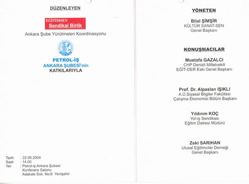 22 Mayıs 2004 Cumartesi Günü Saat 14 00 ’de Şube Kongre Salonumuzda, Şubemizin katkılarıyla gerçekleştirilen “ Küreselleşme, Ulusal Eğitim ve Sendikalar ” konulu paneli üyelerimizin yoğun katılımıyla gerçekleştirildi.