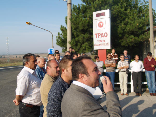 Toplu iş sözleşmelerinde bir anlaşma yapılamaması nedeniyle Trakya şubemizde örgütlü TPAO ve BOTAŞ işçileri 11 Eylül tarihinde AKP Lüleburgaz İlçe Başkanlığı binasına yürüyerek iktidarı protesto ettiler. Üyelerimiz AKP İlçe yönetiminden iktidar partisi olmanın verdiği sorumlulukla sorunun çözümü için duyarlılık gösterilmesini talep ettiler.