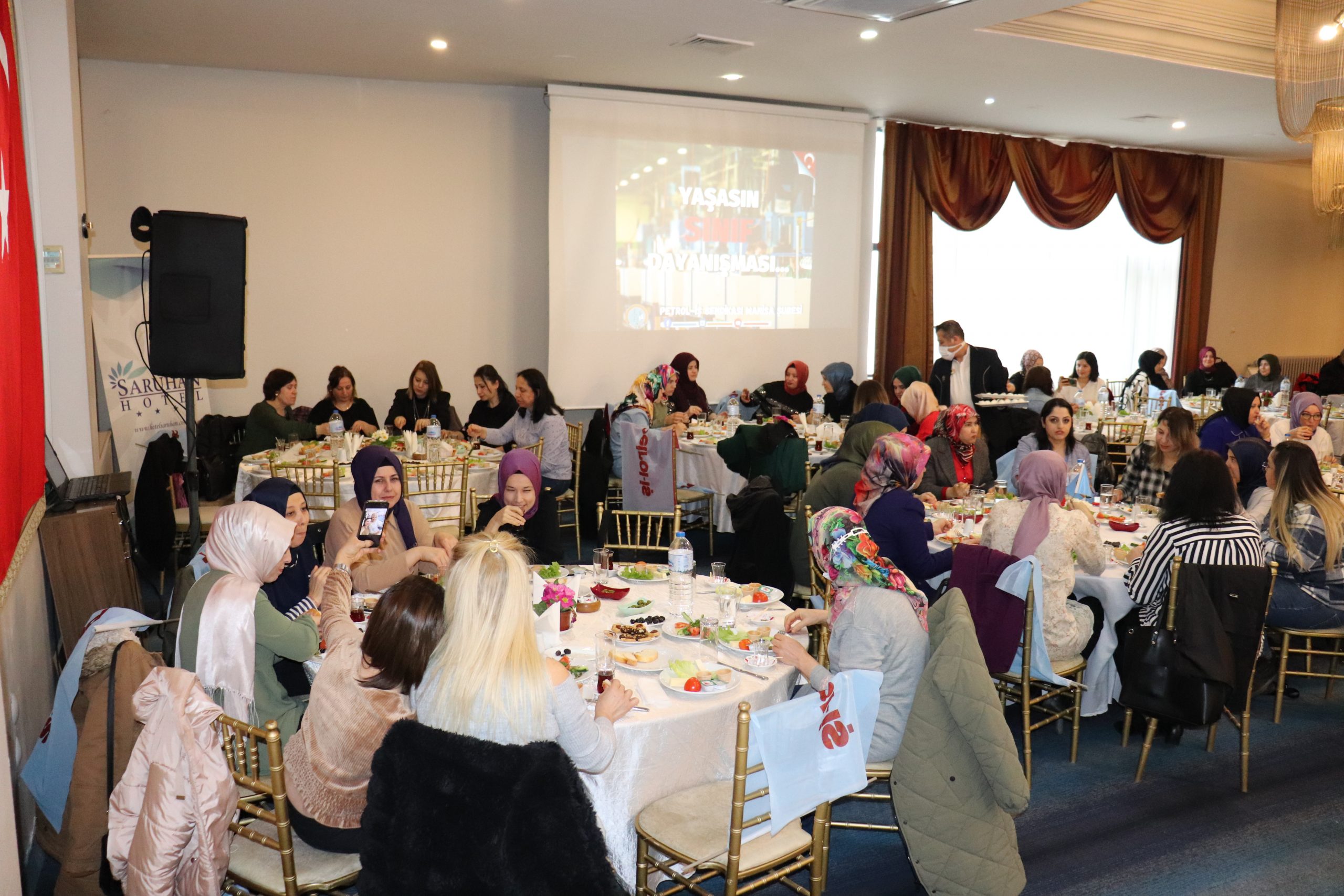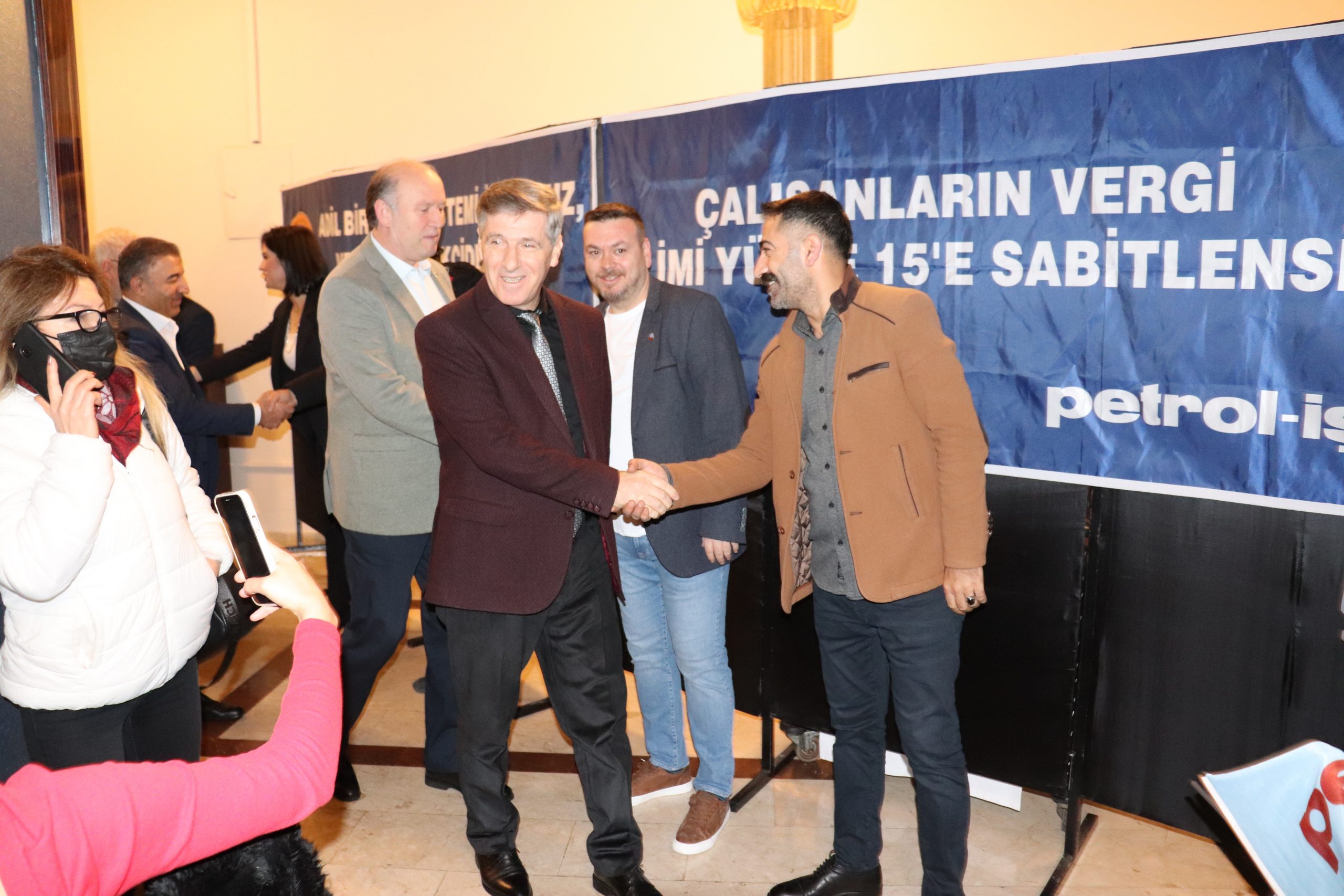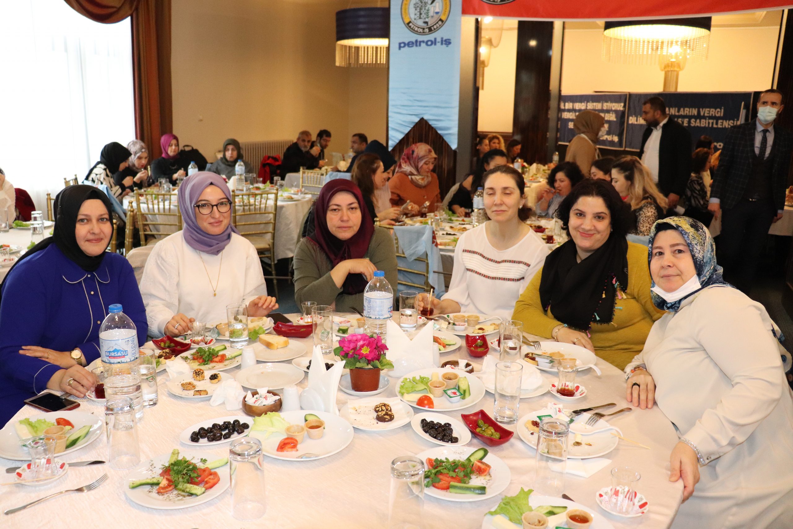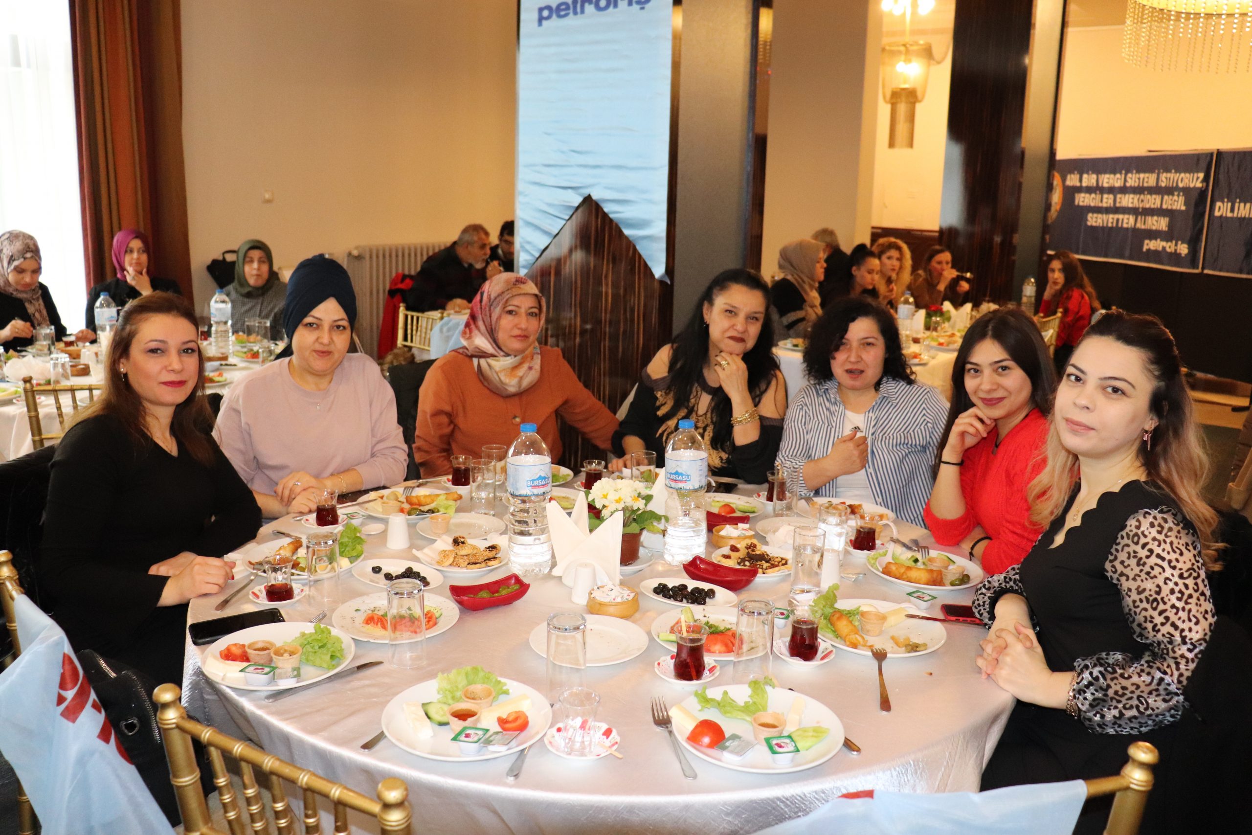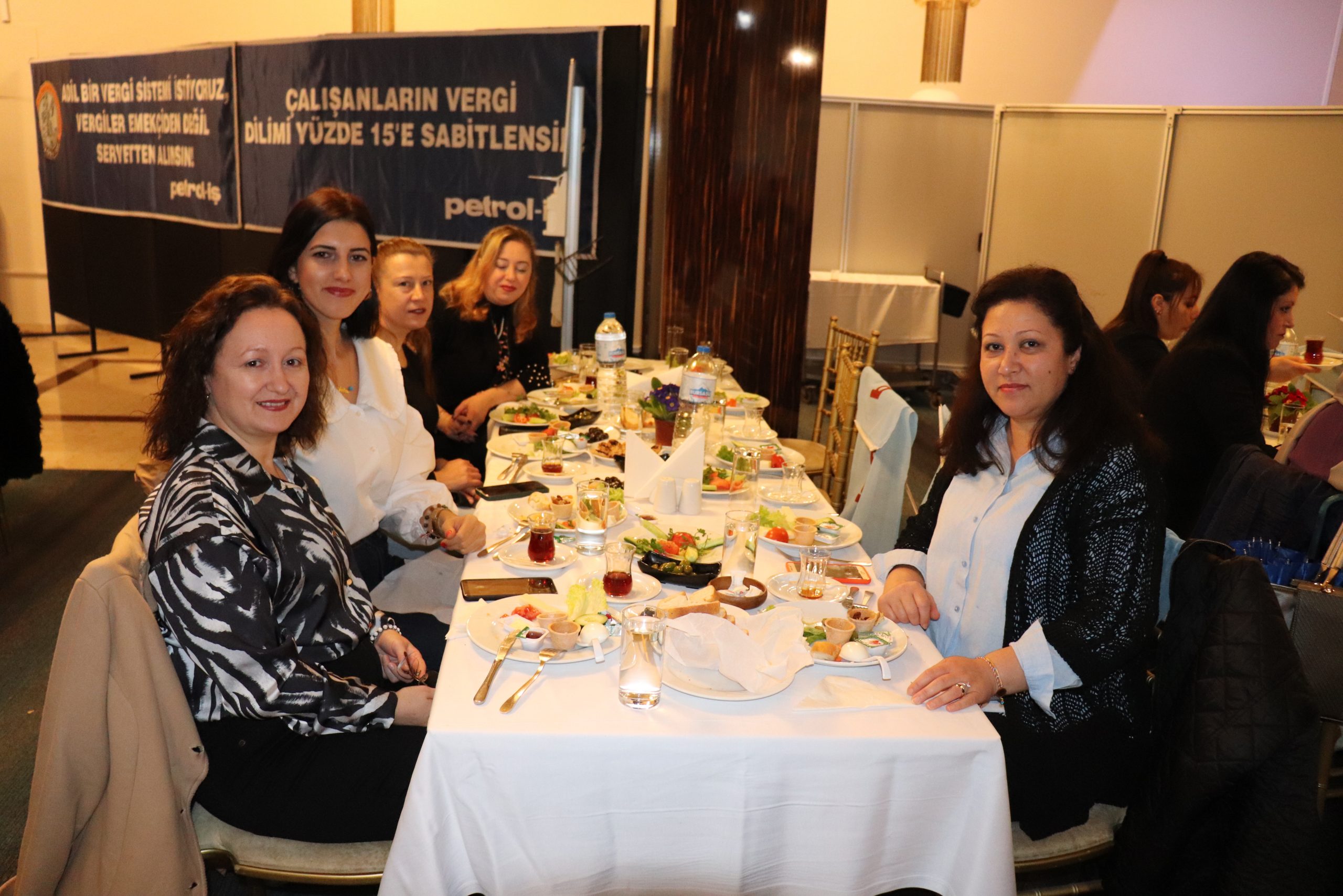 Sendikamız Merkez Yönetim Kurulu Üyeleri de etkinliğe katılarak üyelerimizle biraraya geldiler. Genel Başkanımız Süleyman Akyüz burada yaptığı konuşmasında 8 Mart’ın anlamı ve kadın hareketinin önemine değindi. Kadınların mutlak suretle örgütlenmesi gerektiğine vurgu yapan Genel Başkanımız Süleyman Akyüz, kadına yönelik her türlü şiddet ve ayrımcılığın ortadan kalkmasında sendikaların hayati önem taşadığını söyledi. Petrol-İş Sendikası’nın mücadele tarihinde Berec, Novamed, Bericap ve Flormar gibi kadınların öncülük ettiği mücadeleler olduğunu hatırlatan Genel Başkan Akyüz, birlik olarak, örgütlenerek ve sendikalaşarak zorlukların aşılabileceğini söyledi. Konuşmasının devamında Petrol-İş’in hem fiili mücadelesiyle hem de sözleşmelerine koyduğu maddelerle kadın üyelerinin haklarını koruduğunu belirten Genel Başkan, çalışma hayatında daha fazla kadına ulaşılması gerektiğini söyledi.