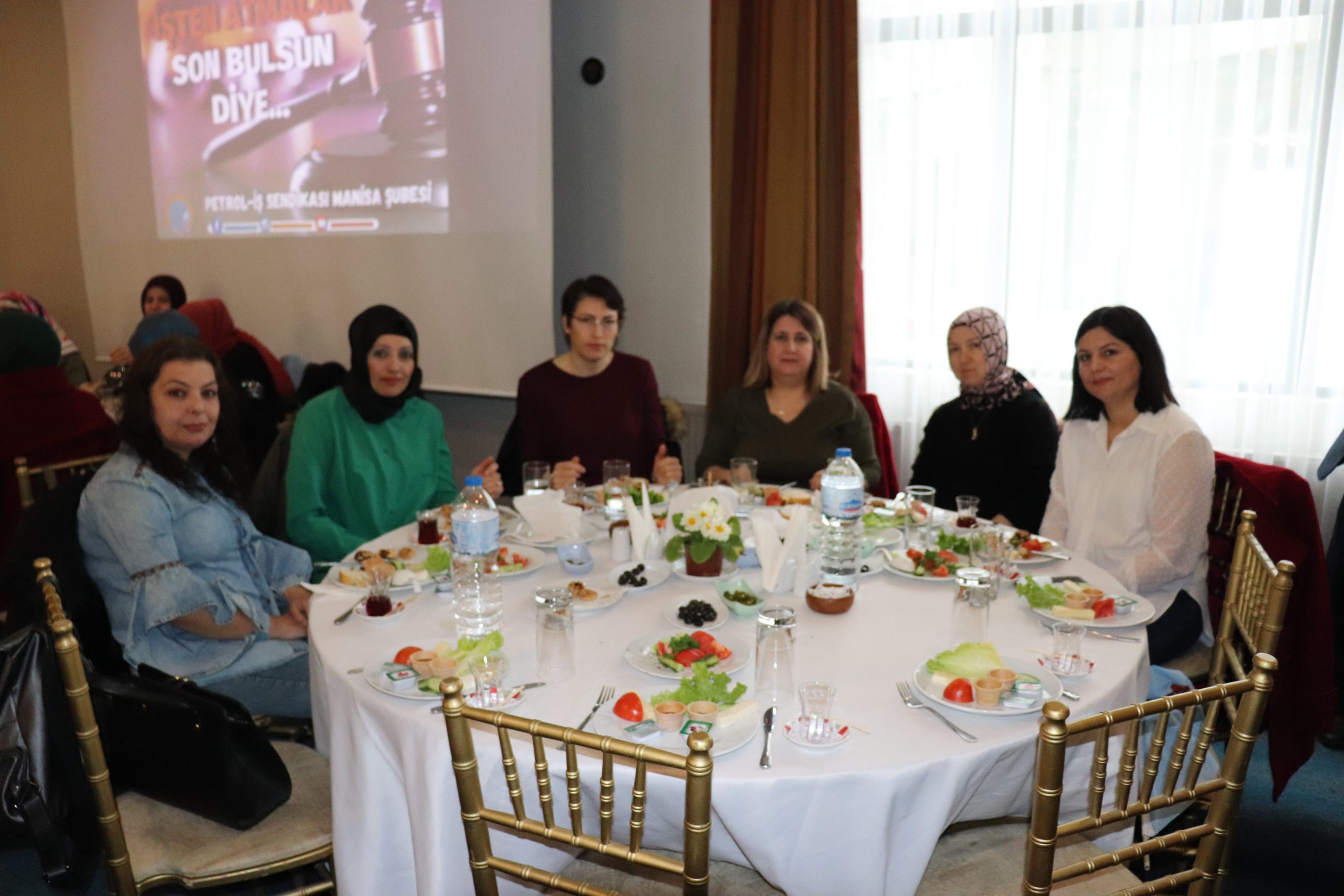 Manisa Şubemizde 8 Mart kutlaması yapıldı. 6 Mart tarihinde yapılan etkinlik, Manisa Büyük Saruhan Otel’de gerçekleştirildi. Oldukça coşkulu yapılan 8 Mart kutlamasına Manisa Şube Yönetimimiz ve temsilcilerimizin yanı sıra şubemizin örgütlü olduğu Standard Profil işyerinden kadın üyelerimiz katıldı.