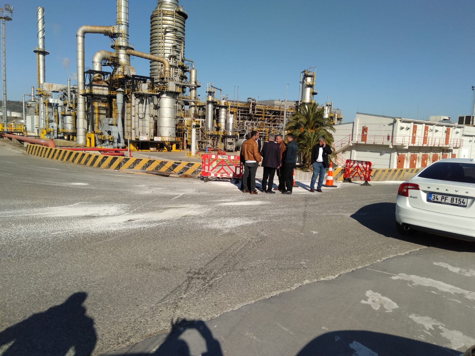 11 Ocak 2020 tarihinde Genel Başkanımız Süleyman Akyüz, Genel Sekreterimiz Salih Akduman, Kocaeli Şube Başkanımız Nesimi Yetişoğlu ve İzmir Şube Başkanımız Orhan Zengin, Aliağa Şubemizin örgütlü olduğu Tüpraş İzmir Rafinerisi Teknik Emniyet ve Çevre Müdürlüğünde çalışan üyemiz Murat Erem’in çalışma arkadaşlarına başsağlığı dilemek üzere işyerini ziyaret ettiler. Gerçekleşen kazadan duydukları üzüntüyü çalışma arkadaşlarıyla paylaşan Yöneticilerimiz; fabrikada iş güvenliği için alınması gereken önlemler hakkında değerlendirmelerde bulundular.