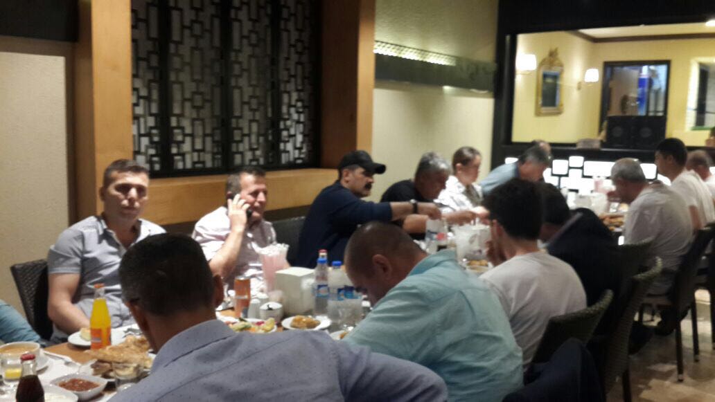 İstanbul 1 Nolu Şubemiz ve Trakya Şubemizin Temsilciler Kurullarının katılımıyla düzenlemiş oldukları iftar yemeği 6 Haziran Salı günü Çerkezköy’de gerçekleşti. İftar programına Genel Sekreterimiz Ahmet Kabaca, Genel Mali Sekreterimiz Turgut Düşova, Genel Örgütlenme ve Eğitim Sekreterimiz Mustafa Mesut Tekik, Denetim Kurulu Başkanımız Yusuf Ziya Kahyaoğlu, İstanbul 1 Nolu Şube Başkanımız Ahmet Baranlı, Şube Başkan Yardımcılarımız Yılmaz Akay, Abidin Kaya, Trakya Şube Başkanımız Ercan Yavuz, Şube Başkan Yardımcılarımız Ümit Ormancı, Mehmet Kaya ve iki şubemizin yöneticileri ve temsilcileri katıldı.