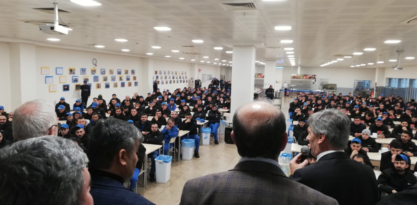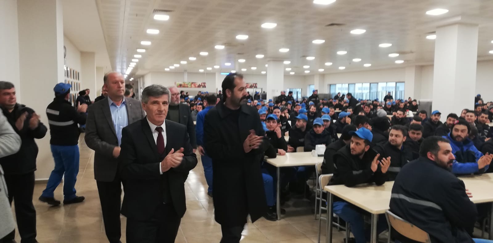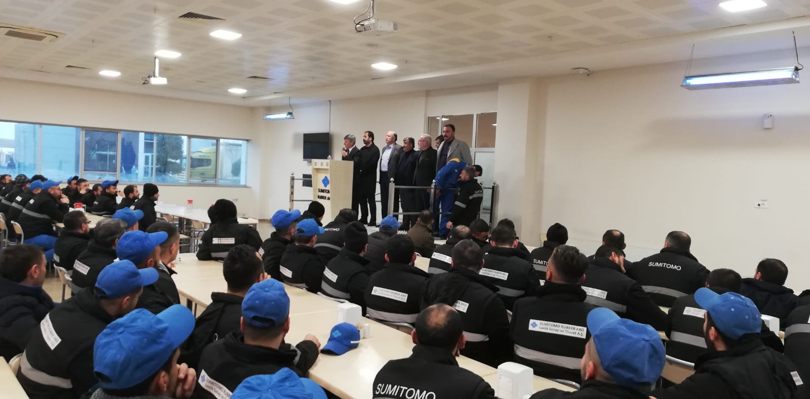 Fabrika Yemekhanesinde Genel Başkanımız Süleyman Akyüz üyelerimize hitaben konuşma yaptıktan SUMITOMO işyeri ziyareti sona erdi.