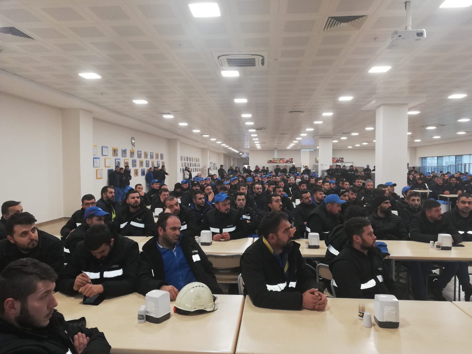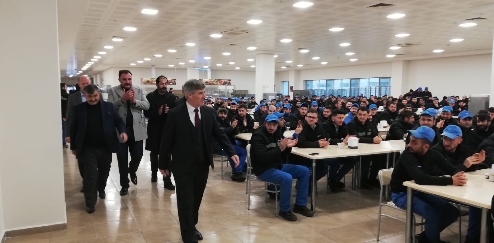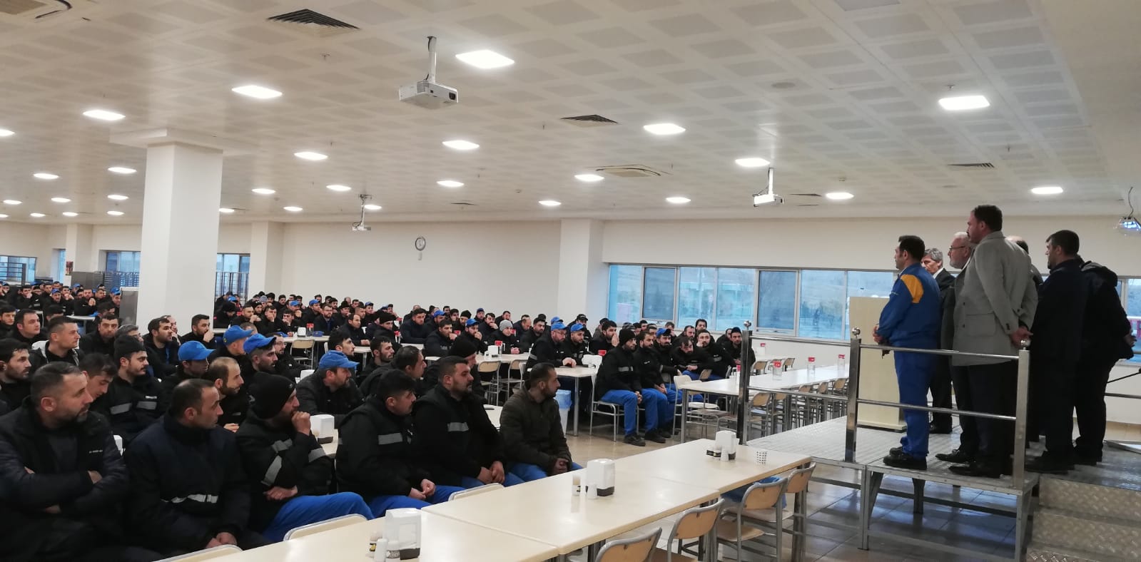 Fabrika Yemekhanesinde Genel Başkanımız Süleyman Akyüz üyelerimize hitaben konuşma yaptıktan SUMITOMO işyeri ziyareti sona erdi.