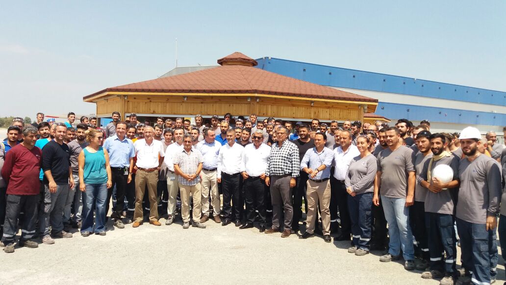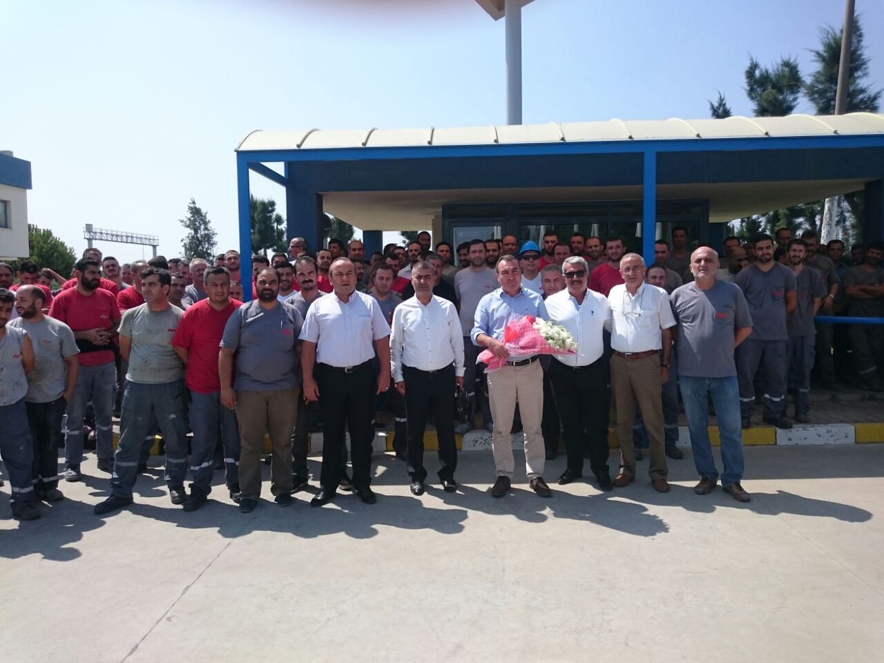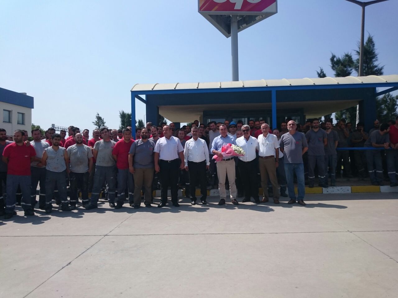 Burada fabrika Genel Müdürü Şenol Bircan, İşletme Müdürü Güney Özaltan İnsan Kaynakları Müdürü Emre Oğuz ve kalabalık bir üye topluluğu merkez yöneticilermizi çiçeklerle kapıda karşılamıştır.