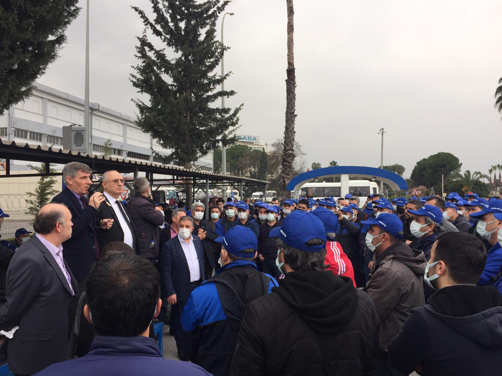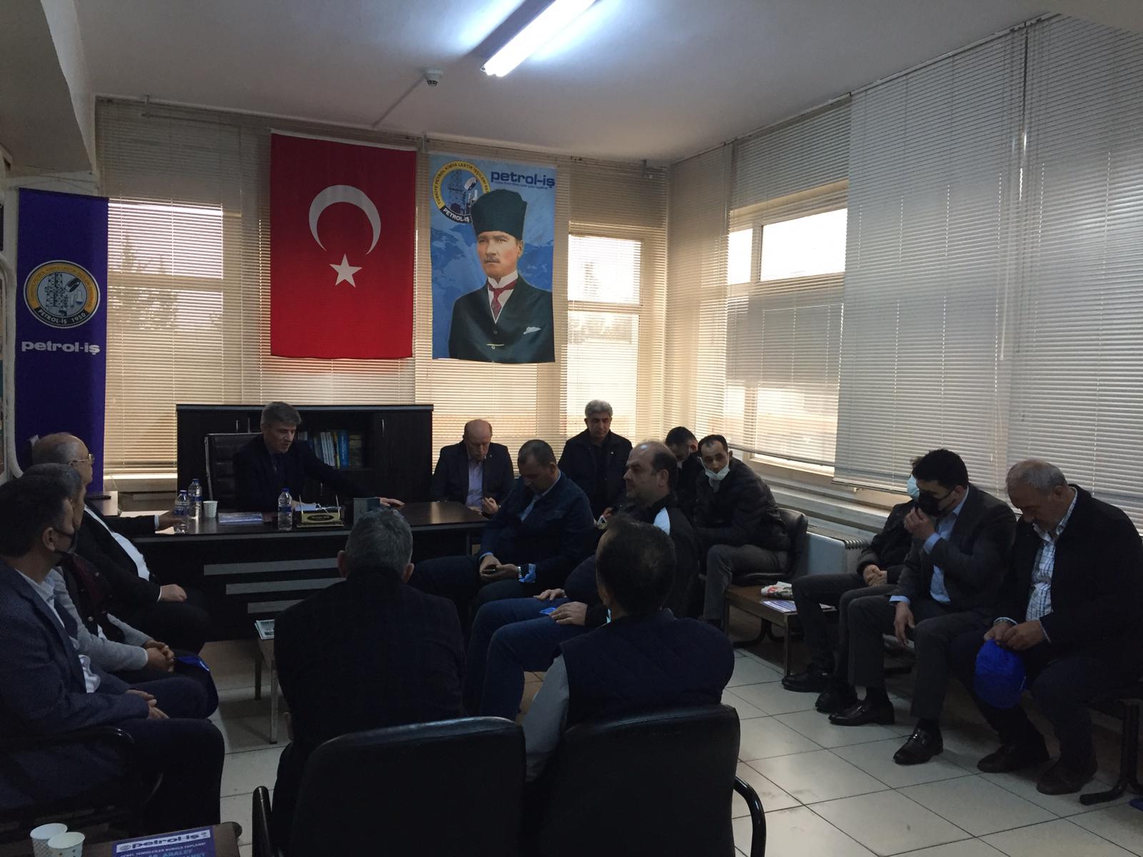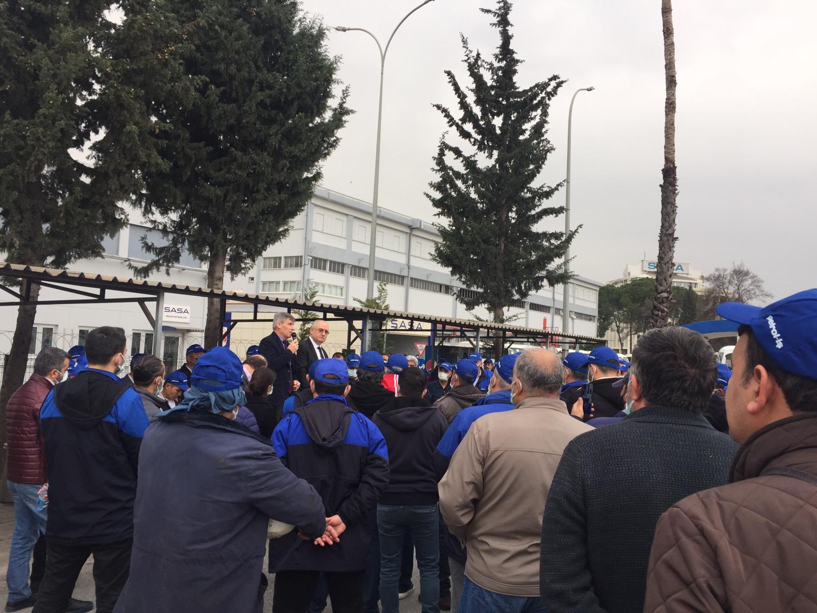 Sendikamızın uzun yıllardır örgütlü olduğu SASA işyerine 24 Şubat Perşembe günü gerçekleşen ziyarette, Genel Başkanımız Süleyman Akyüz, Genel Sekreterimiz Salih Akduman, Genel Mali Sekreterimiz Erhan Yakışan, Adana şube Başkanımız Abdul Mecit Dönmez, Şube Başkan Yardımcılarımız Cemalettin Çetinkıran, Hüseyin Cahit Çimen (Mali), Adana Şubemize bağlı Botaş İşyerleri, Ceyhan BİL, Dörtyol Botaş, İskenderun Gübre, Toros Gübre işyerlerinden temsilcilerimiz ve yöneticilerimiz ile Mersin Şube Başkanımız Erdem İyim, Mersin Şube Başkan Yardımcımız Birkan Yiğit (Mali) yer aldı. Ziyarette Merkez Yönetim Kurulumuz ile SASA Yönetim Kurulu Üyesi Mehmet Şeker arasında bir görüşme yapıldı. Görüşmede, Petrol-İş ve SASA işyeri arasındaki ilişkiler ele alındı. Ayrıca son dönemde yaşanan ekonomik sıkıntıların üyelerimize etkileri toplantıda ele alınan bir diğer konu oldu. Görüşmenin ardından vardiya giriş çıkışlarında, Genel Başkanımız Süleyman Akyüz üyelerimize hitap etti. Üyelerimizin sorunları ve talepleri üzerine istişarede bulunuldu.