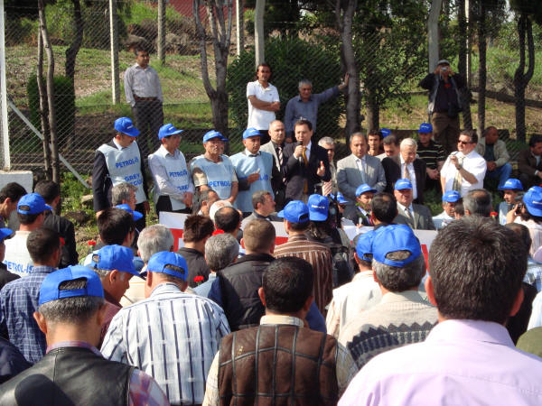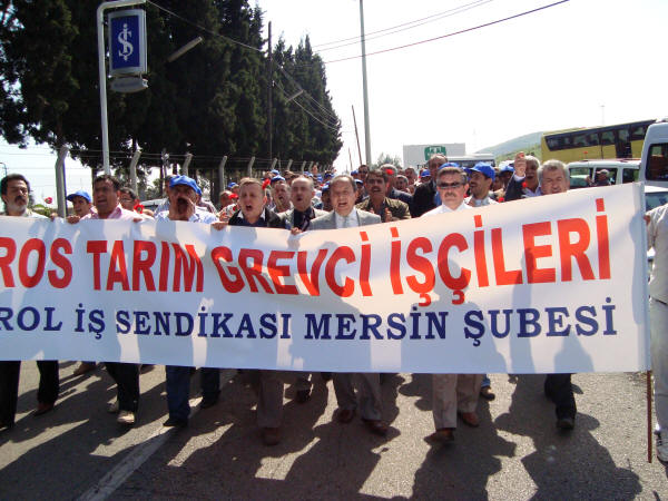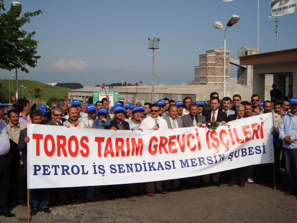 29.04.2009Genel Başkanımız Mustafa ÖZTAŞKIN ve Genel Mali Sekterimiz İbrahim DOĞANGÜL şubemiz kapsamında bulunan Toros Tarım grevinin 23. gününde grevimizi ziyaret ederek bir basın açıklaması yapmış ve grevimize destek vermiştir. Bu ziyarette Adana’da ki Demokratik kitle örgütleri, kardeş sendikalar ile Mersin Şubemiz kapsamında bulunan Mersin Toros Tarım grevcileri de hazır bulunarak grevimize güç vermişlerdir.