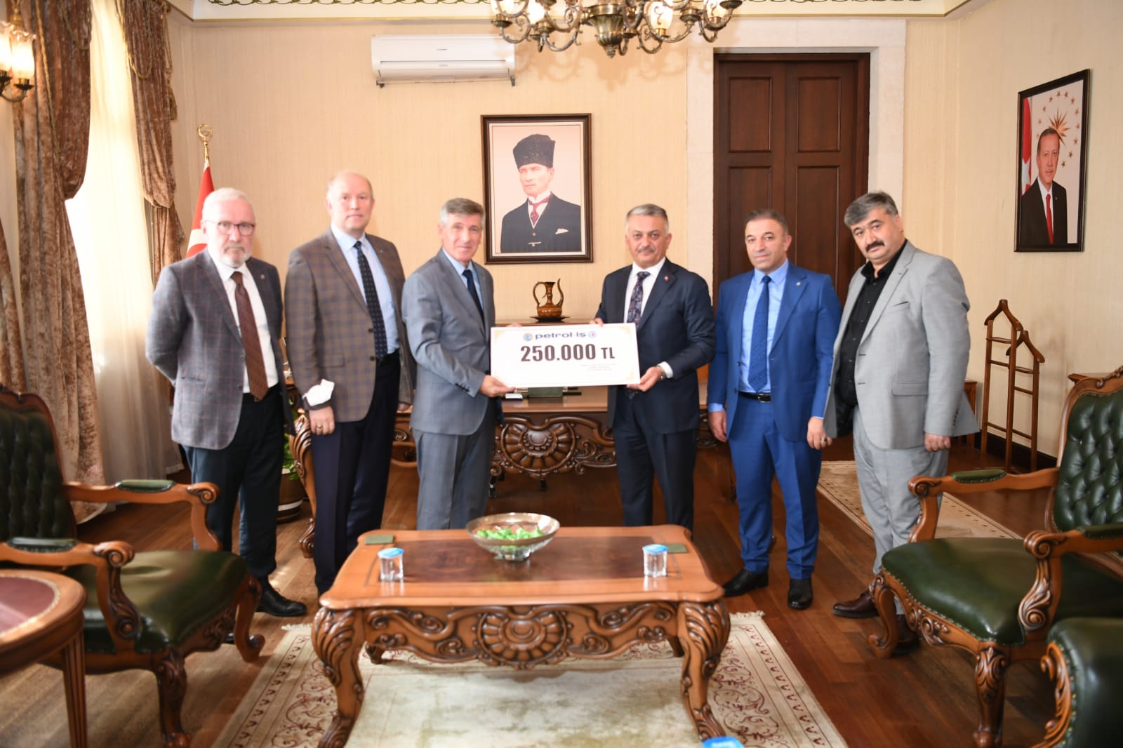 23 Kasım 2021 tarihinde Antalya Valisi ile yapılan görüşmede Genel Başkanımız Süleyman Akyüz ”Geçtiğimiz yaz Akdeniz’de yaşanan yangın felaketi bizleri derinden üzmüştür. Petrol-İş Sendikası olarak yangın sebebiyle hayatını kaybedenlere sonucu Allah’tan rahmet diledi, afetzedelere geçmiş olsun diliyoruz.” dedi. Ziyarette ayrıca Genel Başkanımız Süleyman Akyüz bölgede yaşanan yangın nedeniyle Petrol-İş Sendikası üyeleri, şubeleri ve yönetimi adına Antalya Valisi Sayın Ersin Yazıcı afetzedeler için toplanan maddi bağışı iletti. Antalya Valisi Sayın Ersin Yazıcı da, Genel Başkanımız Süleyman Akyüz ile Merkez Yöneticilerimize, yapmış oldukları ziyaretten ve sendika tarafından afetzedeler için toplanan bağıştan dolayı teşekkürlerini iletti.