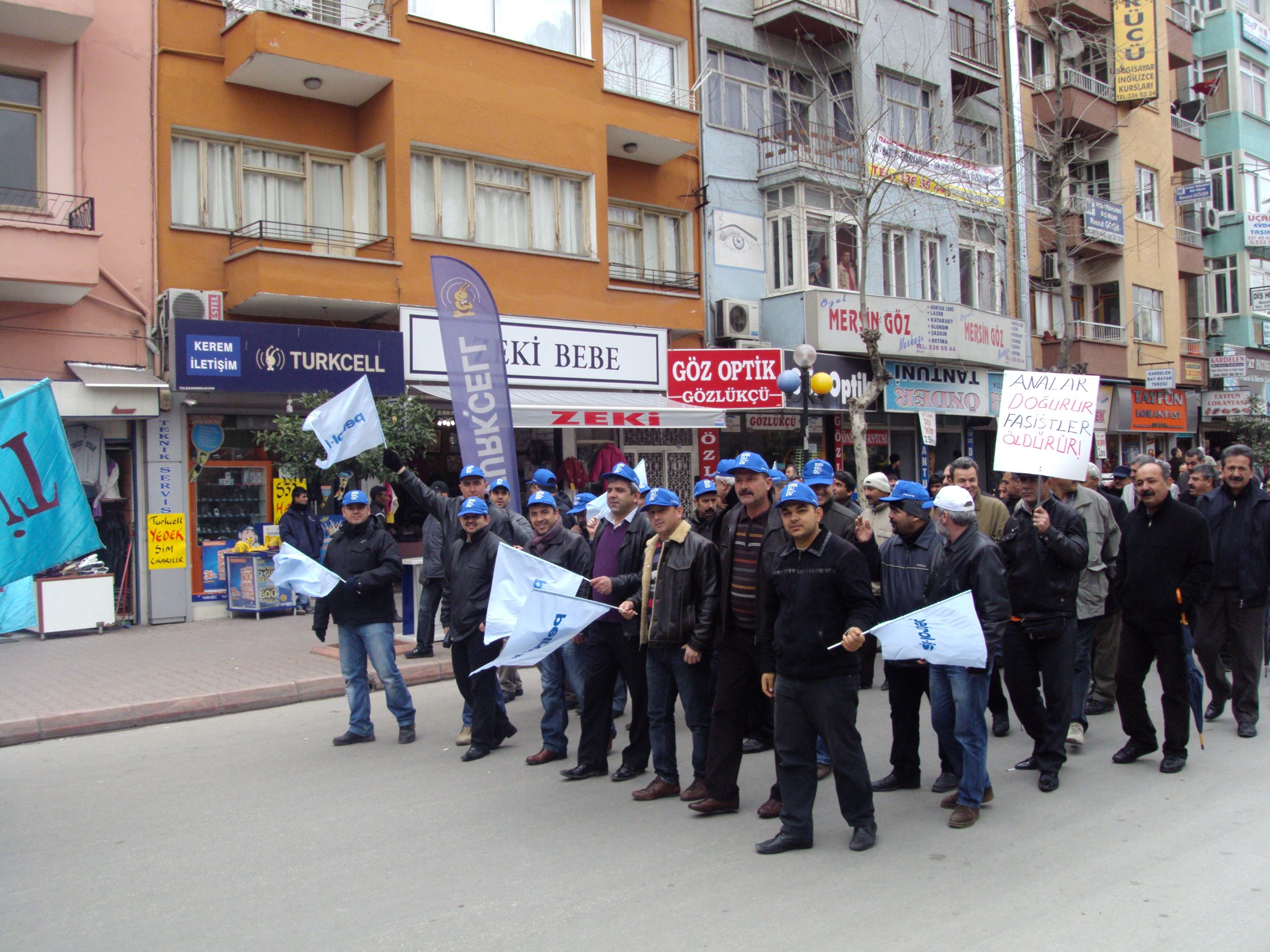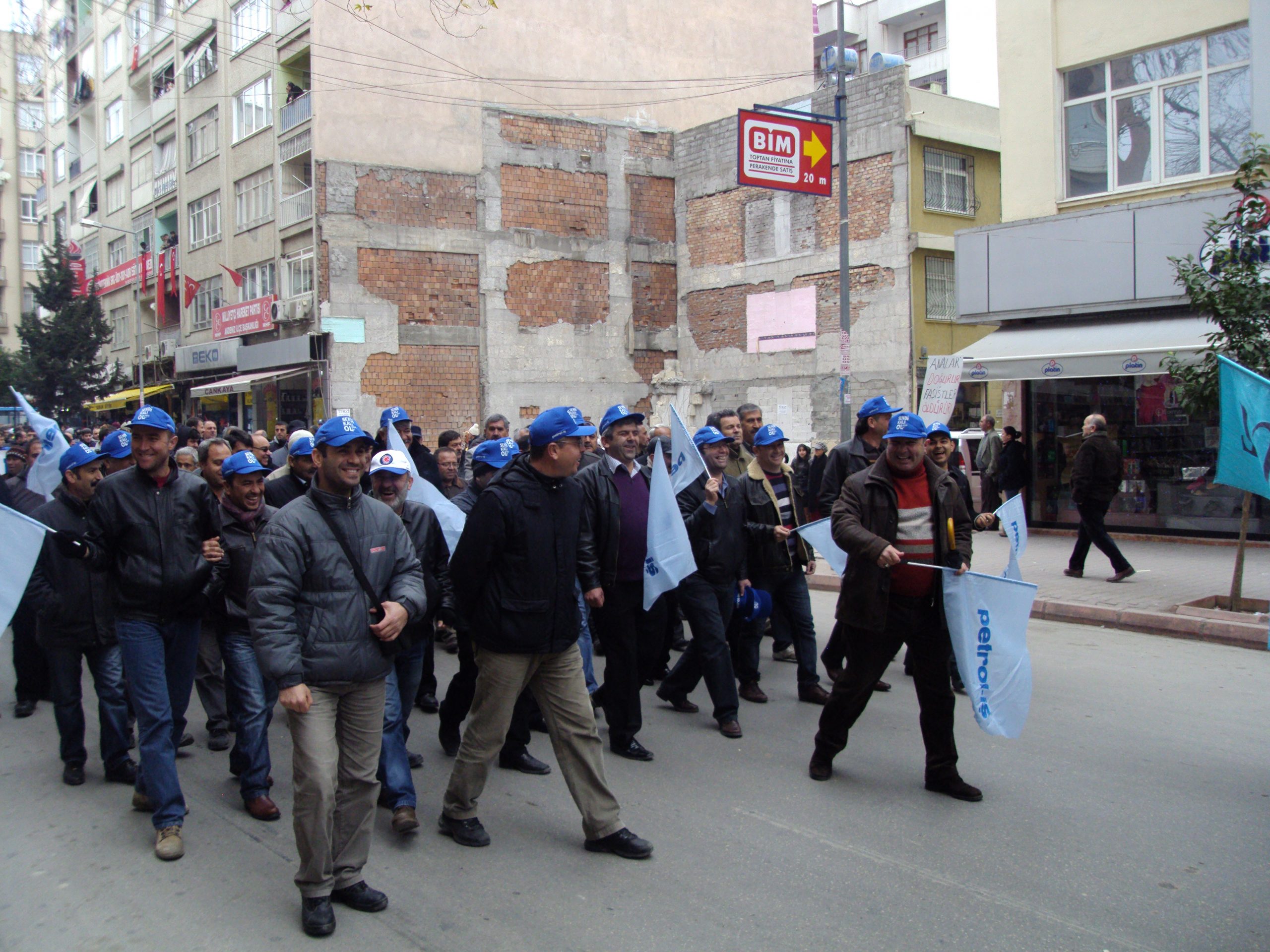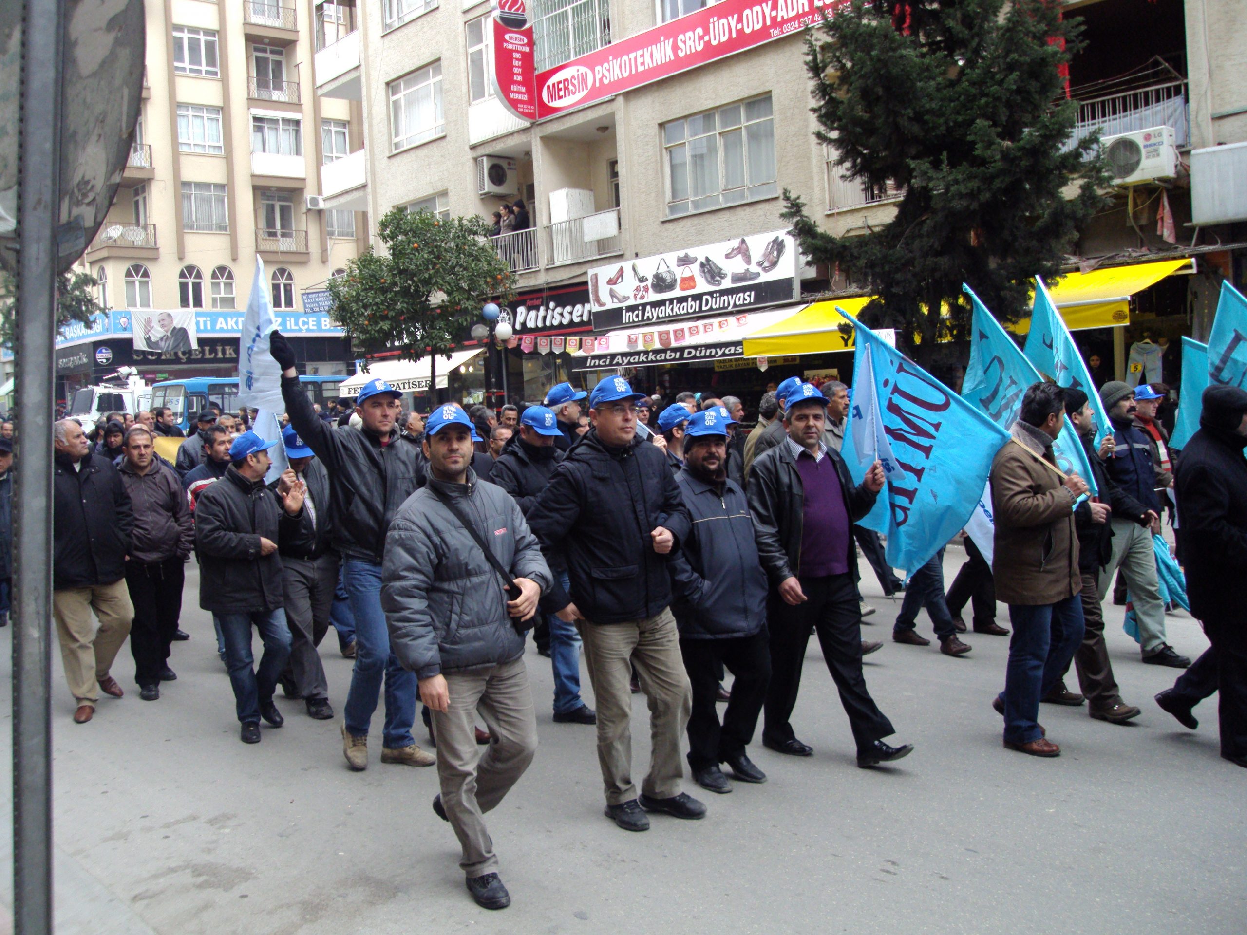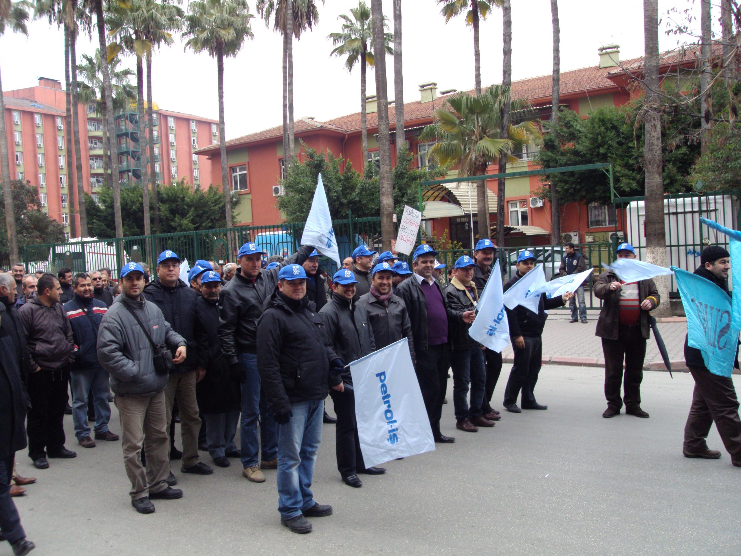 Mersin Şubesi önünde toplanan Petrol-İş üyeleri, Suriye ve İran’a karşı yapılması muhtemel savaşa ve ülkemiz başta olmak üzere bölgemiz ve dünyadaki tüm savaşlara “hayır” demek için sloganlar eşliğinde önce Mersin Devlet Hastanesi’nin önüne oradan da Metropol Miting Alanına doğru yürüdüler.