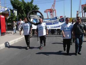05.10.2005Mersin limanının özelleştirmesi ve ihaleyi kazanan firmanın limana girme girişiminin protesto edildiği 5 Ekim eyleminden görüntüler. Bu eylemde sendikamızın da içerisinde bulunduğu, Özelleştirme Karşıtı Mücadele Platformu da yer aldı.