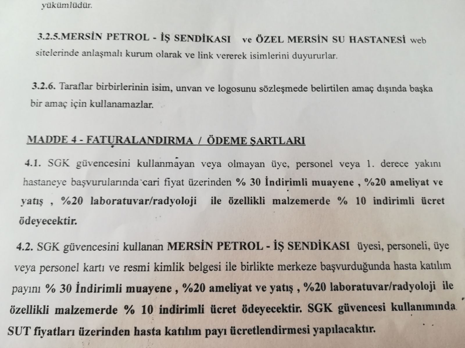 Mersin Şubemiz üyelerimizin sağlık hizmetlerinden daha uygun ücretlerle ve daha sağlıklı hizmet alabilmesi için Mersin Su Hastanesi ile anlaşma yaptılar. Yapılan anlaşmanın üyelerimize hayırlı olmasını dileriz.