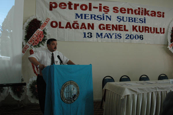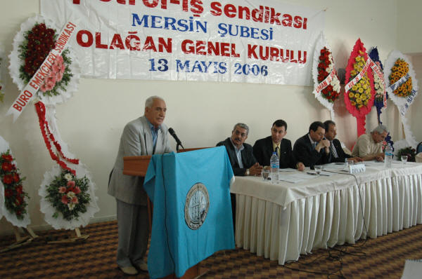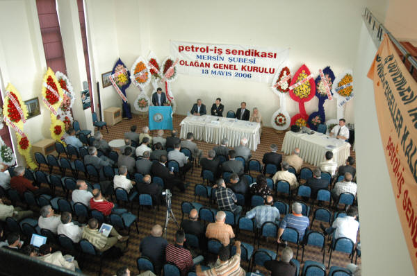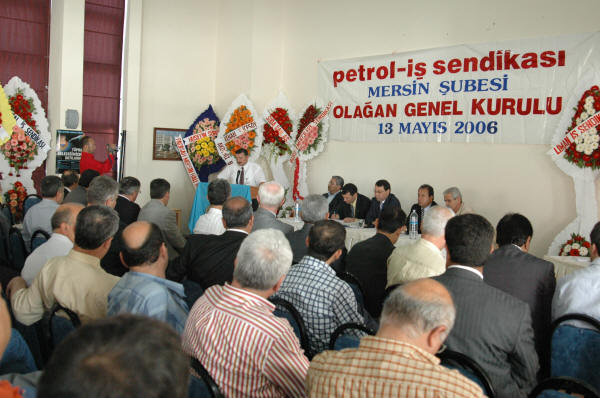 Mersin Şubemizin 13 Mayıs 2006 tarihinde yapılan Genel Kurulu’nda, Adil Alaybeyoğlu Şube Başkanlığına, Erçin Çulcu İdari Sekreterliğe, Cumali Kısmetli de Mali Sekreterliğe seçildiler.Genel Kurul’da Metin Avcı, Bülent Gülay, Talip Eren ve Yusuf Basır Yönetim Kurulu üyeleri olarak seçilirken Denetim Kurulu’na ise Ozan Karslı, Mustafa Çolak ve Mustafa Çapan seçildiler. Disiplin Kurulu üyeliklerine ise Nuri Üstün, Ayşegül Meydan ve Tarık Aslandaş getirildi.Genel Kurul’a genel merkez yöneticilerimizin yanı sıra CHP Mersin Milletvekili ve CHP Genel Başkan Yardımcısı Mustafa Özyürek, Mersin Şube Eski Kurucu Başkanı Kemalettin Budan, Mersin Şube Eski Başkanı Enver Cuydur ile siyasi parti, sendika ve sivil toplum kuruluşlarının temsilcileri katıldı. Divan Başkanlığını Genel Başkanımız Mustafa Öztaşkın’ın yaptığı genel kurulda, Divan Başkan Yardımcılıklarını da Adana Şube Başkanımız Ahmet Kabaca, Ankara Şube Başkanımız Mustafa Özgen, İzmir Şube Başkanımız A. Gani Gündoğdu ve Batman Şube Başkanımız Nimetullah Sözen yaptılar. Genel Başkanımız Mustafa Öztaşkın, Genel Kurul’a hitaben yaptığı konuşmada, dünyadaki ve ülkemizdeki ekonomik, sosyal ve siyasal gelişmeleri değerlendirdi. AKP iktidarının uygulamalarını eleştiren Öztaşkın, Hükümeti emek karşıtı olmakla suçladı.