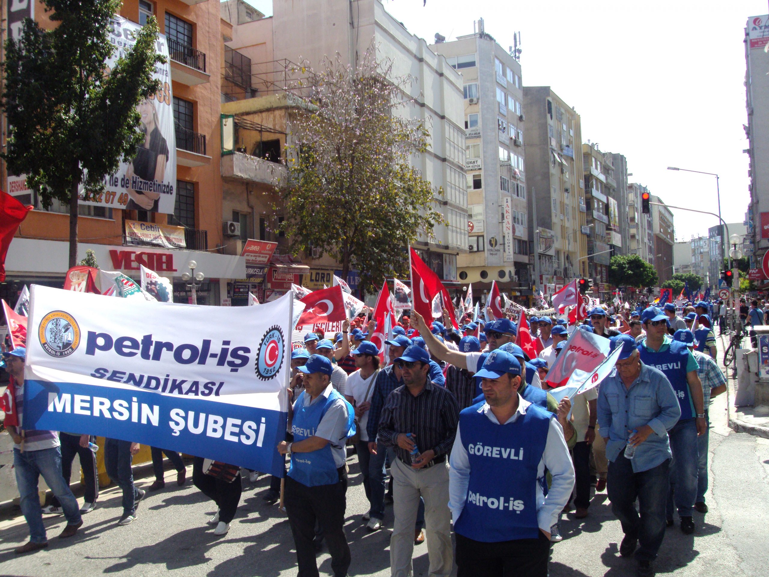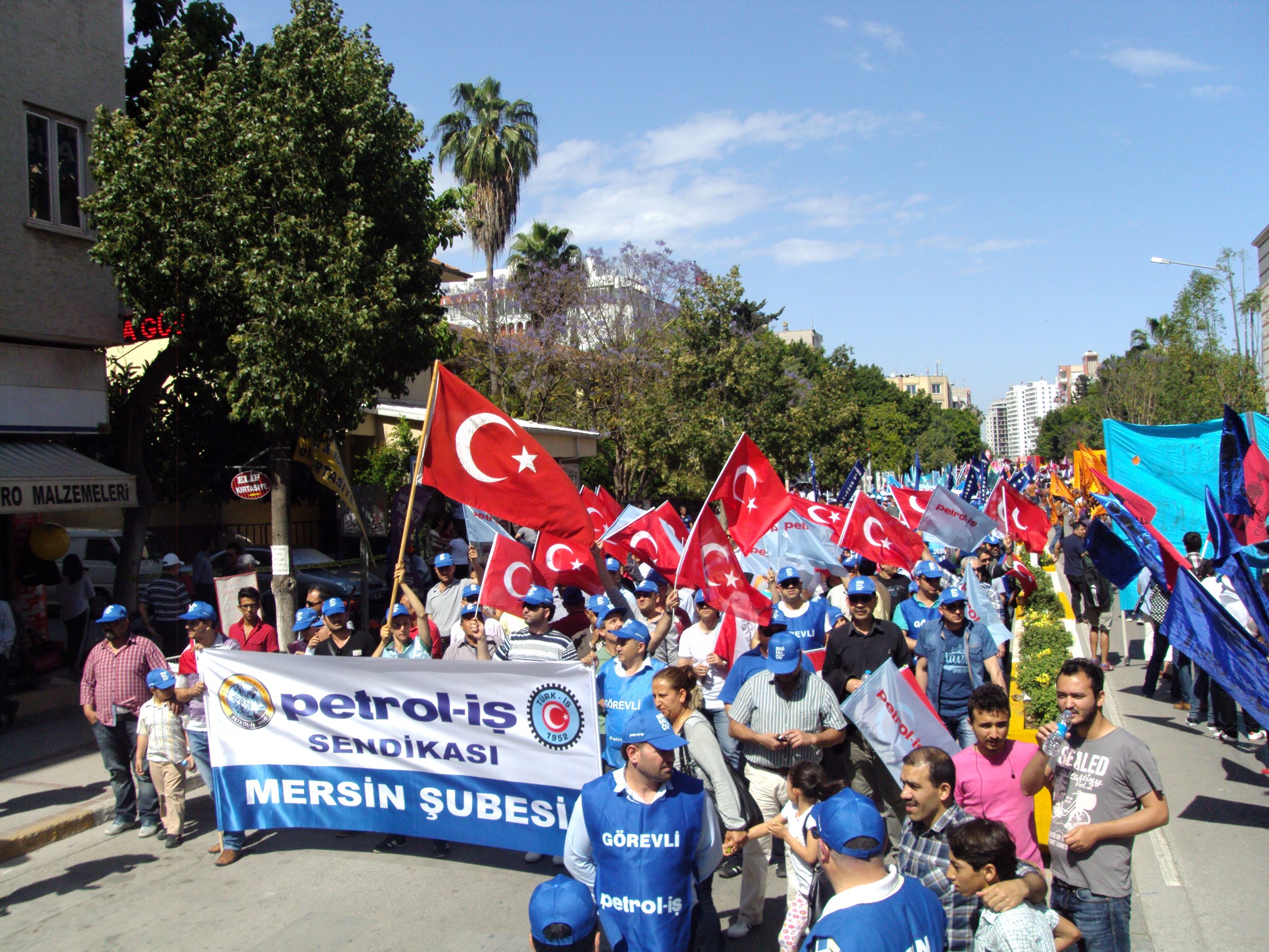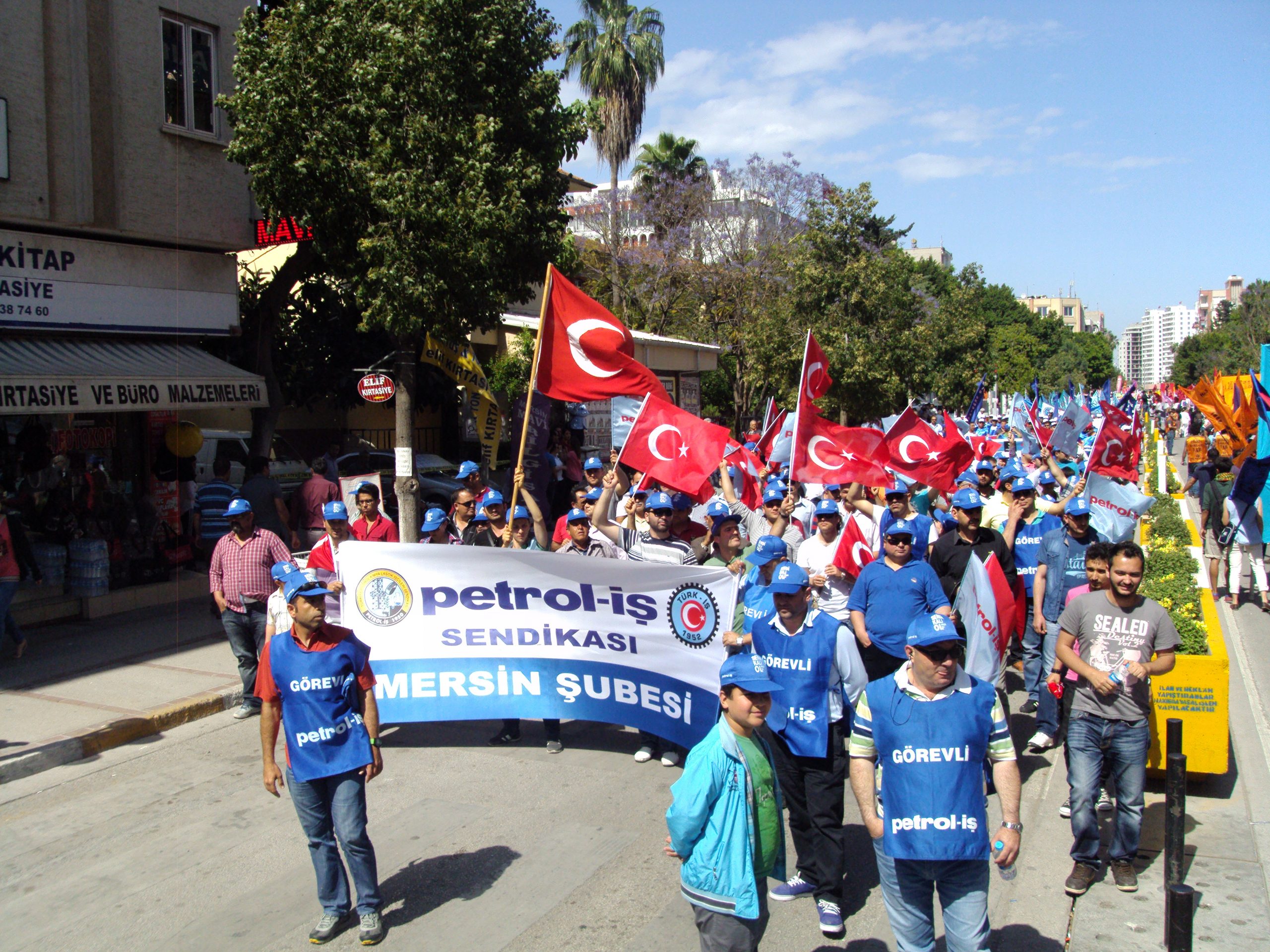 Birlik Mücadele ve Dayanışma Günü 1 Mayıs Mersin’de de sendika, meslek odası, siyasi parti, sivil toplum kuruluşları ve gençlik örgütlerinin, binlerce işçinin, emekçinin, işsizin yoksulun, öğrencinin katılımıyla kutlandı. Tertip Komitesi’nde Mersin Şube Başkanımız Yunus Murat Marangoz’un da yer aldığı 1 Mayıs kutlamaları bayram havasında geçti. Petrol-İş üyeleri 1 Mayıs’a bu yıl daha geniş katılım sağladı. Halaylar çekildi ve Kardeş Türküler alanda konser verdiler.