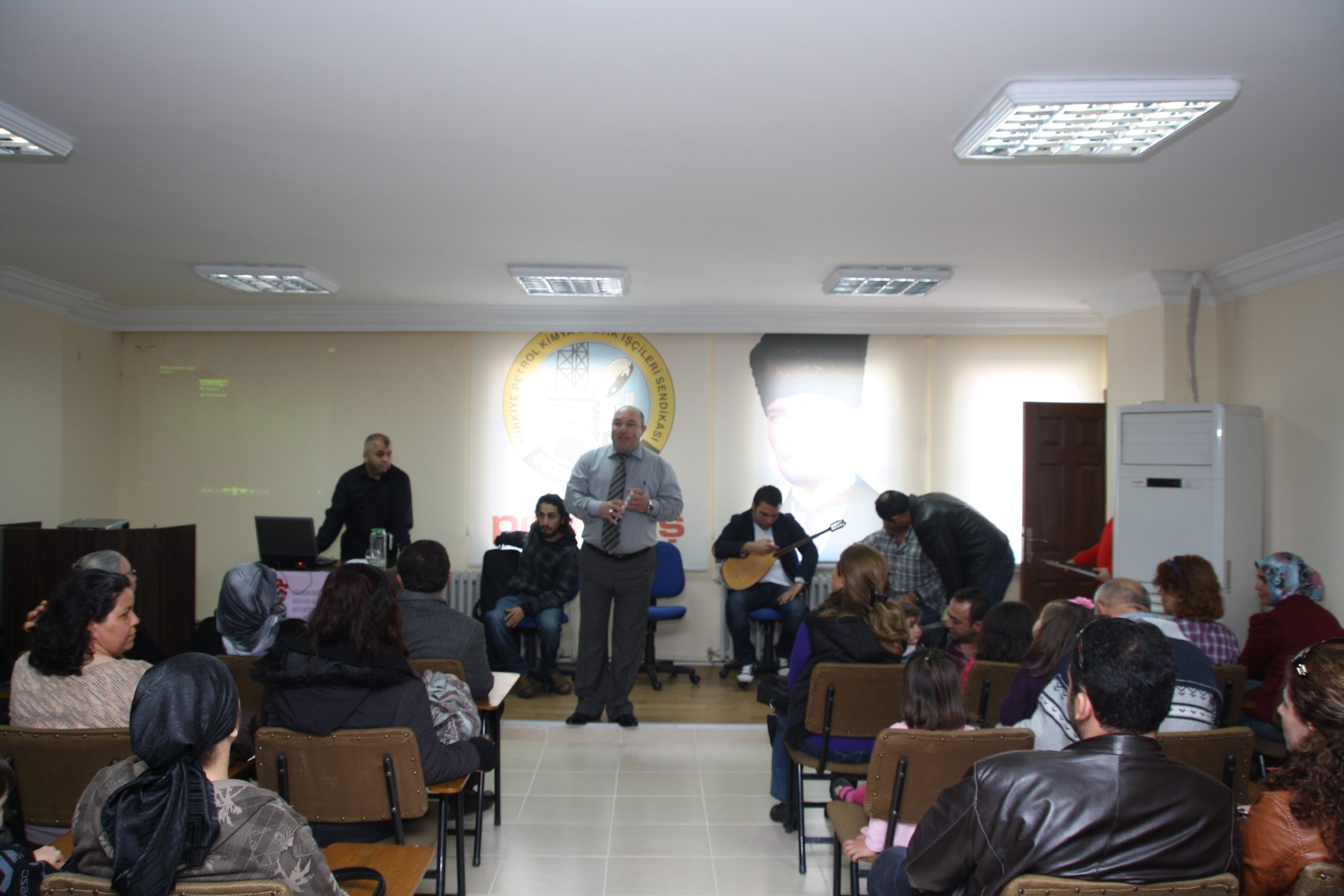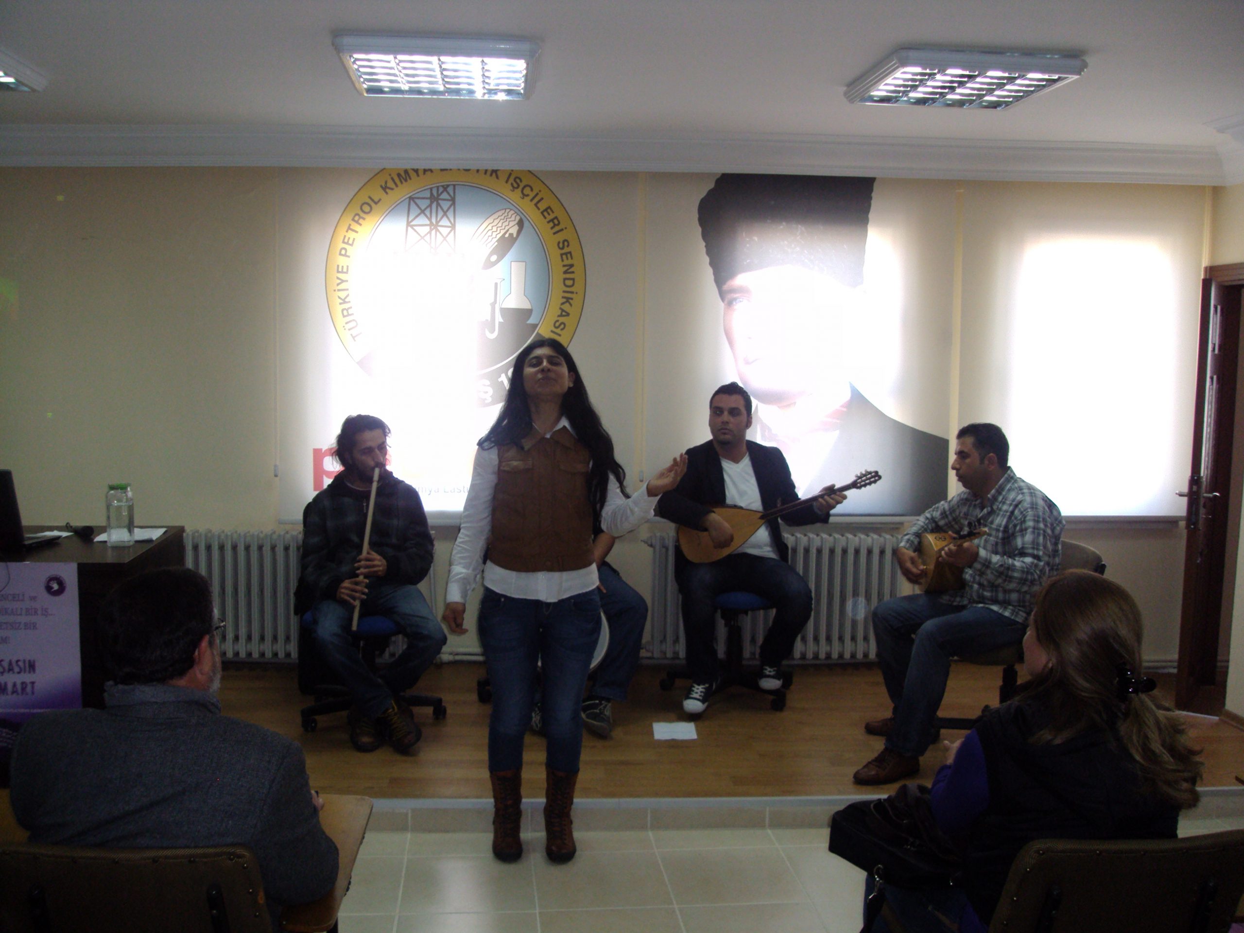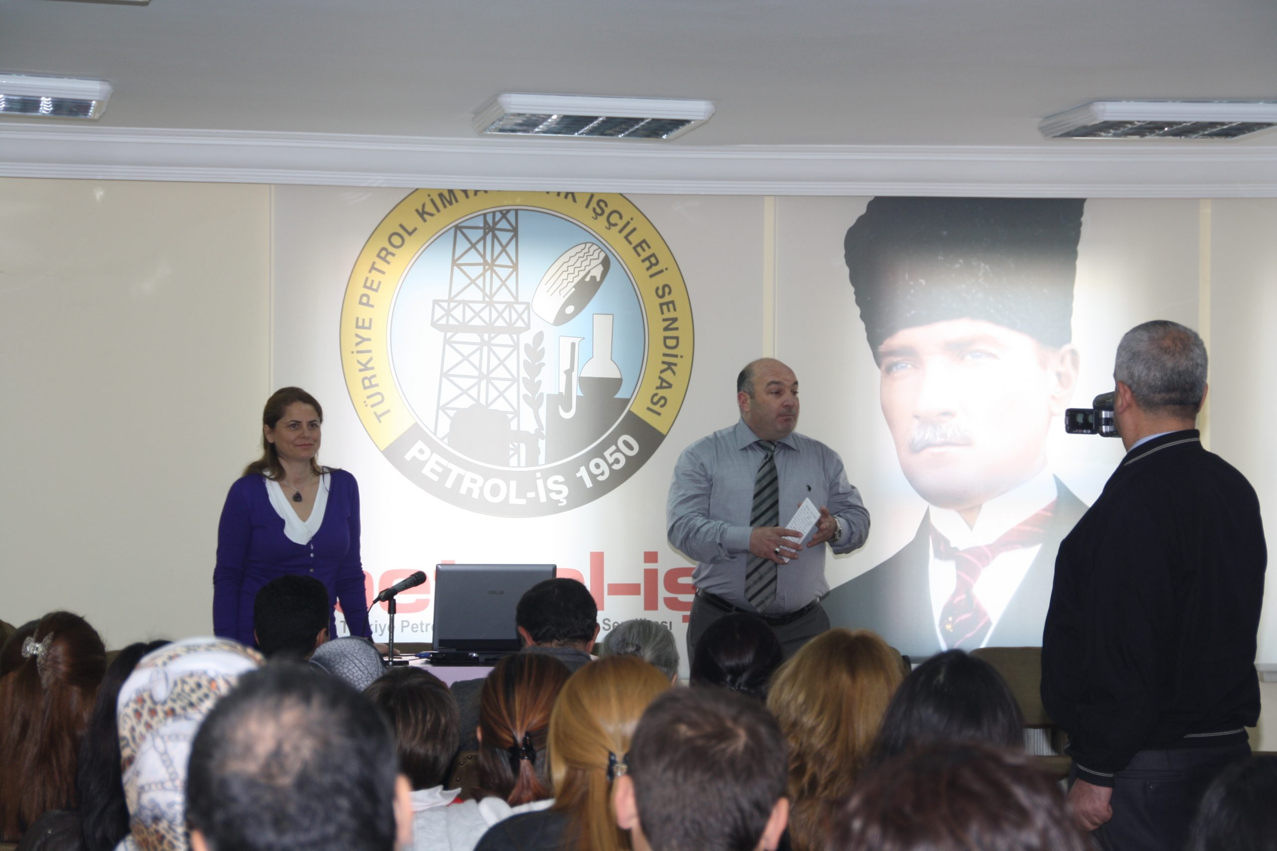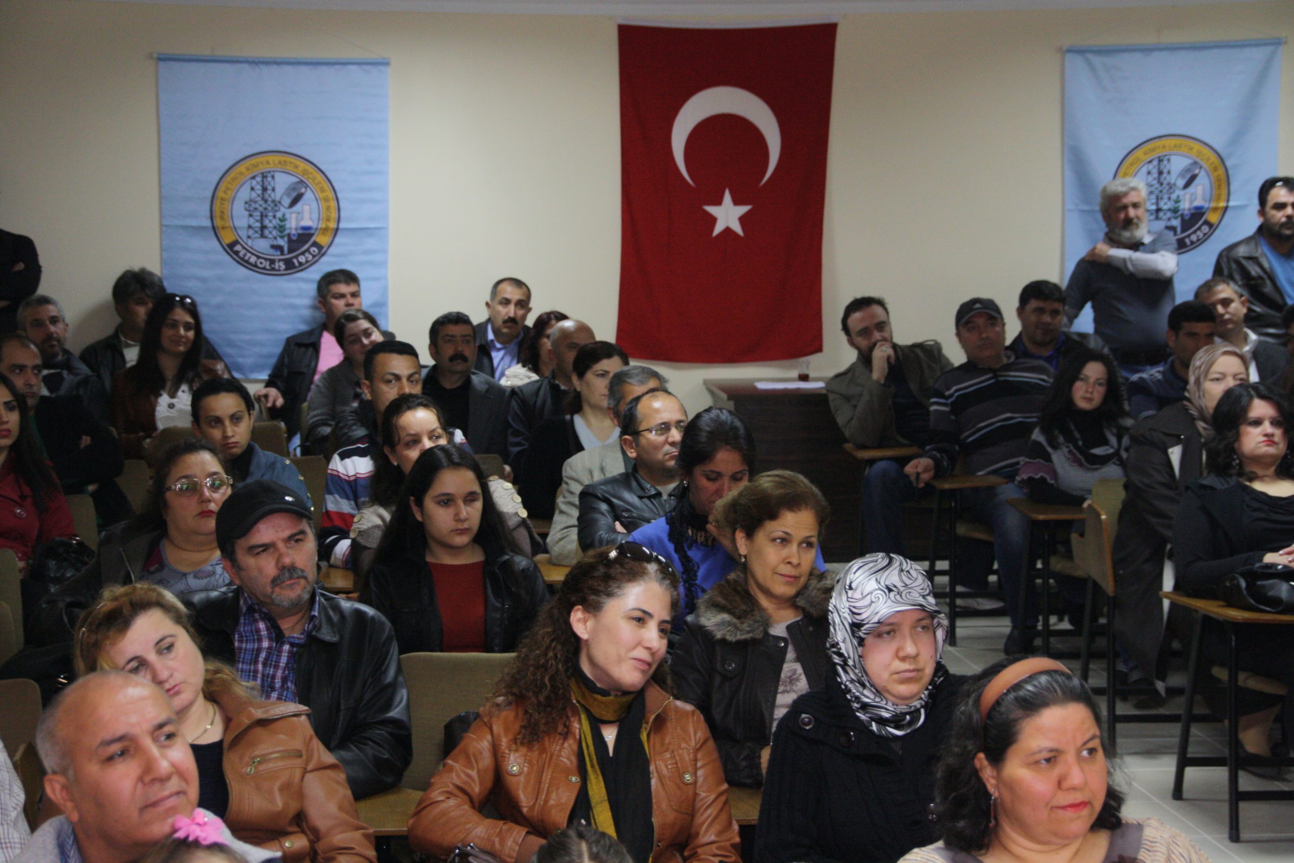 8 Mart Dünya Emekçi Kadınlar Günü 10 Mart 2012 cumartesi günü Mersin Şubemiz toplantı salonunda şubemize bağlı kadın üyeler ve erkek üyelerin eşlerinin katılımıyla kutlandı. Açılış konuşmasını Şube Başkanımız Yunus Murat Marangoz’un yaptı. Daha Sonra Dr. Ful Uğurhan Torlak Kadın hakları ve bu hakların kullanılmasına yönelik bir sunum yaptı. Üyelerimizden oluşan müzik grubunun seslendirdiği şarkılarla, katılan davetlilerimiz keyifli dakikalar yaşadı. Mersin Şubesi 8 Mart etkinliğine kadınlar büyük ilgi gösterdi.