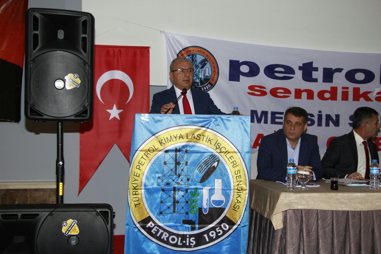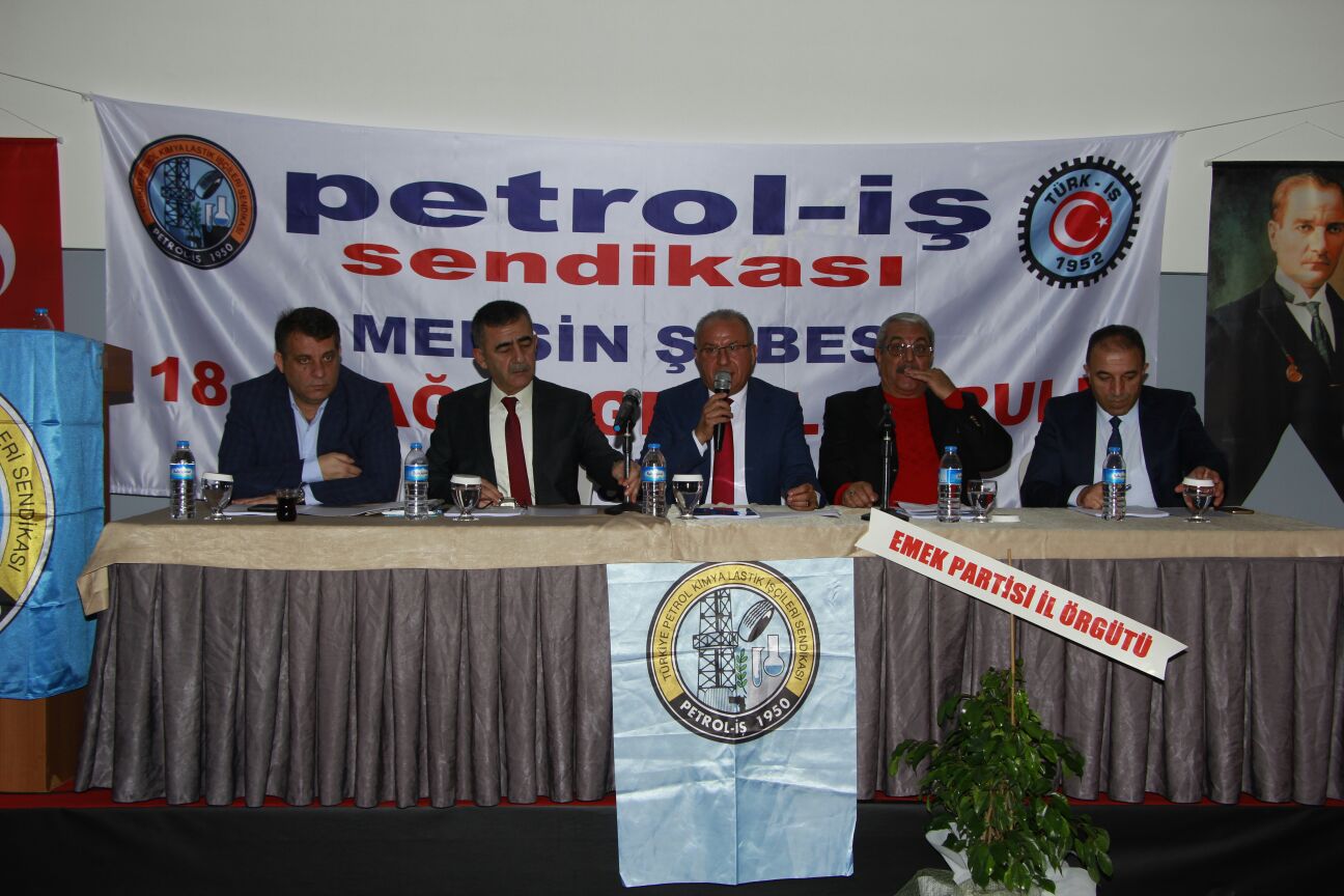 Mersin Şubemizin 18. Olağan Genel Kurulu’na Petrol-İş Merkez Yönetim Kurulu üyeleri, Denetim ve Disiplin Kurulu üyeleri, şube başkanları, şube yöneticileri, şubemizin örgütlü olduğu işyerlerinden temsilciler ve üyelerimiz de katıldı.