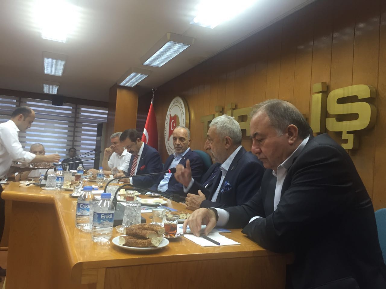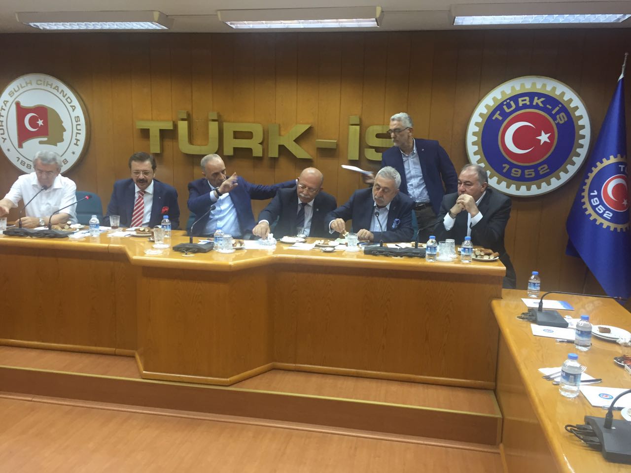 Türk-İş Genel Başkanı Ergün Atalay, TOBB Genel Başkanı M. Rifat Hisarcıklıoğlu, TESK Genel Başkanı Bendevi Palandöken, TZOB Genel Başkanı Şemsi Bayraktar, MEMURSEN Genel Başkanı Ali Yalçın, Türk Kamusen Başkanı İsmail Koncuk, HAK-İŞ Genel Başkan Yardımcısı Mehmet Şahin ve Türk-İş’e bağlı sendikaların Genel Başkanlarının da içerisinde bulunduğu,  Karma İstişare Komitesi Türkiye Kanadı dün gece yaşanan hain darbe teşebbüsünün ardından 16 Temmuz 2016 günü TBMM’ni ziyaret ederek Adalet ve Kalkınma Partisi Grup Başkan Vekili Mustafa Elitaş ile görüştü. Konfederasyonumuzun Genel Başkanı Ergün  Atalay TBMM’de yapılan basın açıklamasında TÜRK-İŞ olarak demokrasiye ve halkın iradesine yönelik tüm girişimlerin karşısında olacaklarını  belirtti.
