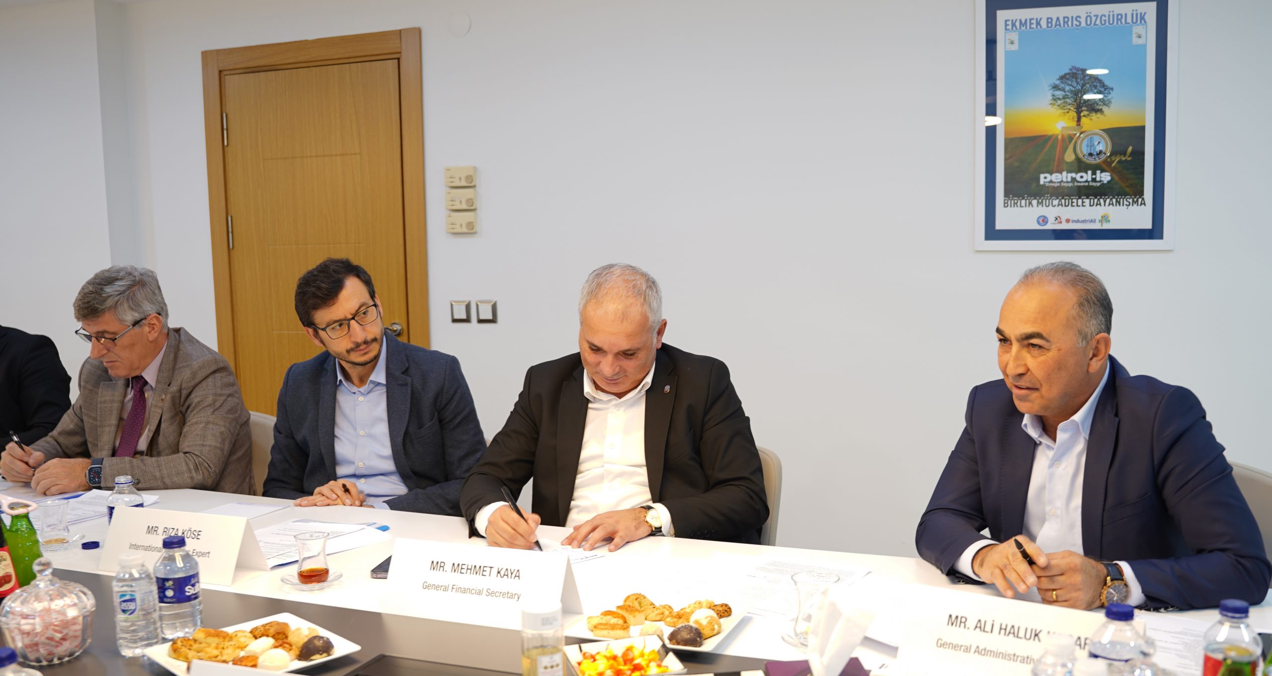 Petrol-İş Sendikasından toplantıya Genel Başkan Süleyman Akyüz, Genel Sekreter Ahmet Baranlı, Genel Mali Sekreter Mehmet Kaya, Genel Örgütlenme ve Eğitim Sekreteri Niyazi Recepkethüda, Genel Yönetim Sekreteri Ali Haluk Koşar ve Uluslararası İlişkiler Uzmanı Rıza Köse katıldı.