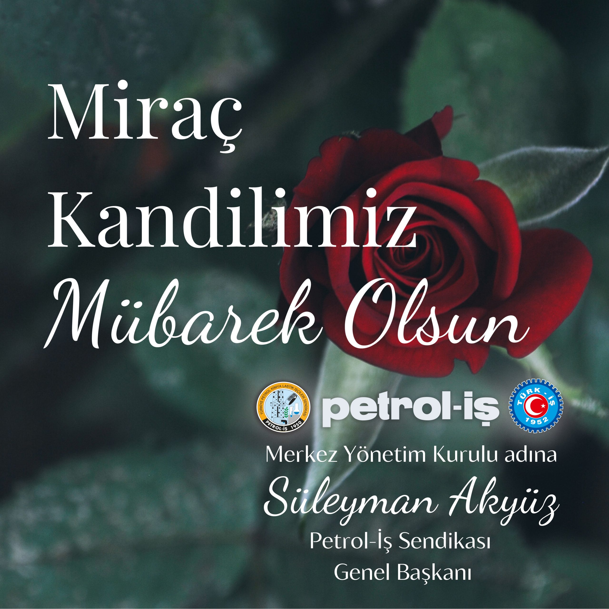 Tüm İslam Aleminin, milletimizin, üyelerimizin ve emeği ile geçinen herkesin mübarek Miraç Kandilini tebrik eder, hayırlara vesile olmasını temenni ederiz.