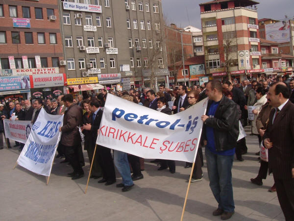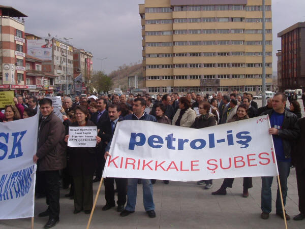 SSGSS Yasa Tasarısı TBMM’de görüşülmeye başlamıştır. Yasanın kazanılmış hakları geriye götürdüğü bir gerçektir. Bu çerçevede Kesk, Disk,TTB, TMMOB, T.Eczacılar Birliği Hükumetin bu tavrına karşı 01.04.2008 saat 14:00 da iş bırakma ve basın açıklaması eylemine Petrol-İş Sendikası olarak gerekli destek verilmiştir. Kırıkkale Cumhuriyet Meydanı’nda yapılan eyleme katılım sağlanmış olup Konfederasyonumuz Türk-İş’de eylemlere destek vermeye çağrısı yapılmıştır.