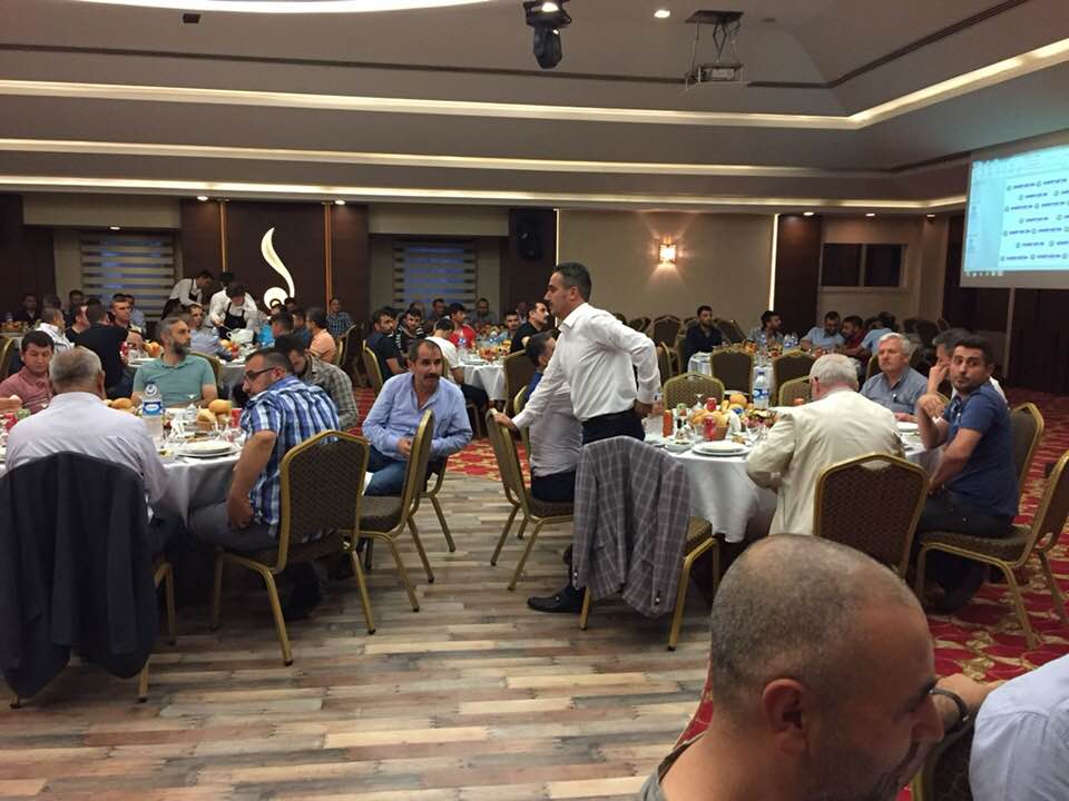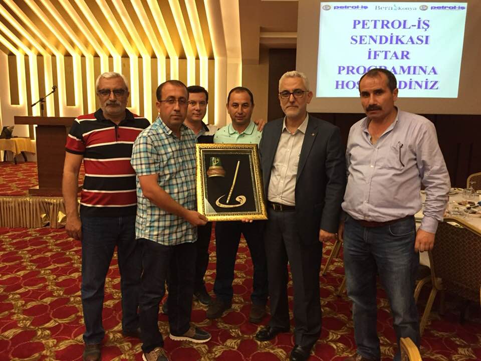 27 Mayıs Pazar günü Genel Başkanımız Ali Ufuk Yaşar, Genel Sekreterimiz Ahmet Kabaca, Genel Mali Sekreterimiz Turgut Düşova, Genel Örgütlenme ve Eğitim Sekreterimiz Mustafa Mesut Tekik ve Genel Yönetim Sekreterimiz Ünal Akbulut Ankara Şubemizin örgütlü olduğu Pakpen işyerindeki üyelerimizle Konya Bera Otel’de gerçekleşen iftar yemeğine katıldılar. İftar programında Ankara Şube Başkanımız Şuayip Gül, Başkan Yardımcımız Sabri Polat, Ankara Şubemize bağlı işyerlerinden temsilcilerimiz ve yöneticileri ve BOTAŞ Konya Şube Müdürlüğü Temsicileri ve üyelerimizde yer aldı. Genel Başkanımız Ali Ufuk Yaşar iftar yemeğinin ardından Pakpen’deki sorunlar ile ilgili değerlendirmelerde bulundu. BOTAŞ’ta çalışan üyelerimiz Genel Başkanımıza hediye takdiminde bulunarak başarılarının devamını dilediler.