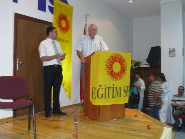 Nazım Hikmet’i Anma GecesiNazım Hikmet’in ölüm yıl dönümünün 45. yılında, 3 Haziran 2008’de Nazım Hikmet’i bir kez daha saygı ile andık. Şubemiz Konferans Salonunda, Aliağa Emek ve Demokrasi Platformunun düzenlemiş olduğu gece kitlesel ve coşku içinde gerçekleşti. Eğitim-Sen üyesi öğretmenlerimizin ve CHP gençlik kollarının hazırlamış olduğu Nazım Hikmet şiirleri ve türkülerin okunduğu gecede duygu dolu anlar yaşandı.Yaklaşık iki saat süren gece CHP Gençlik Kolları Başkanı’nın, Eğitim-Sen Temsilcisinin ve Şube Başkanımız Salih Mehmet AYDIN’ın konuşmaları ile bitirildi.