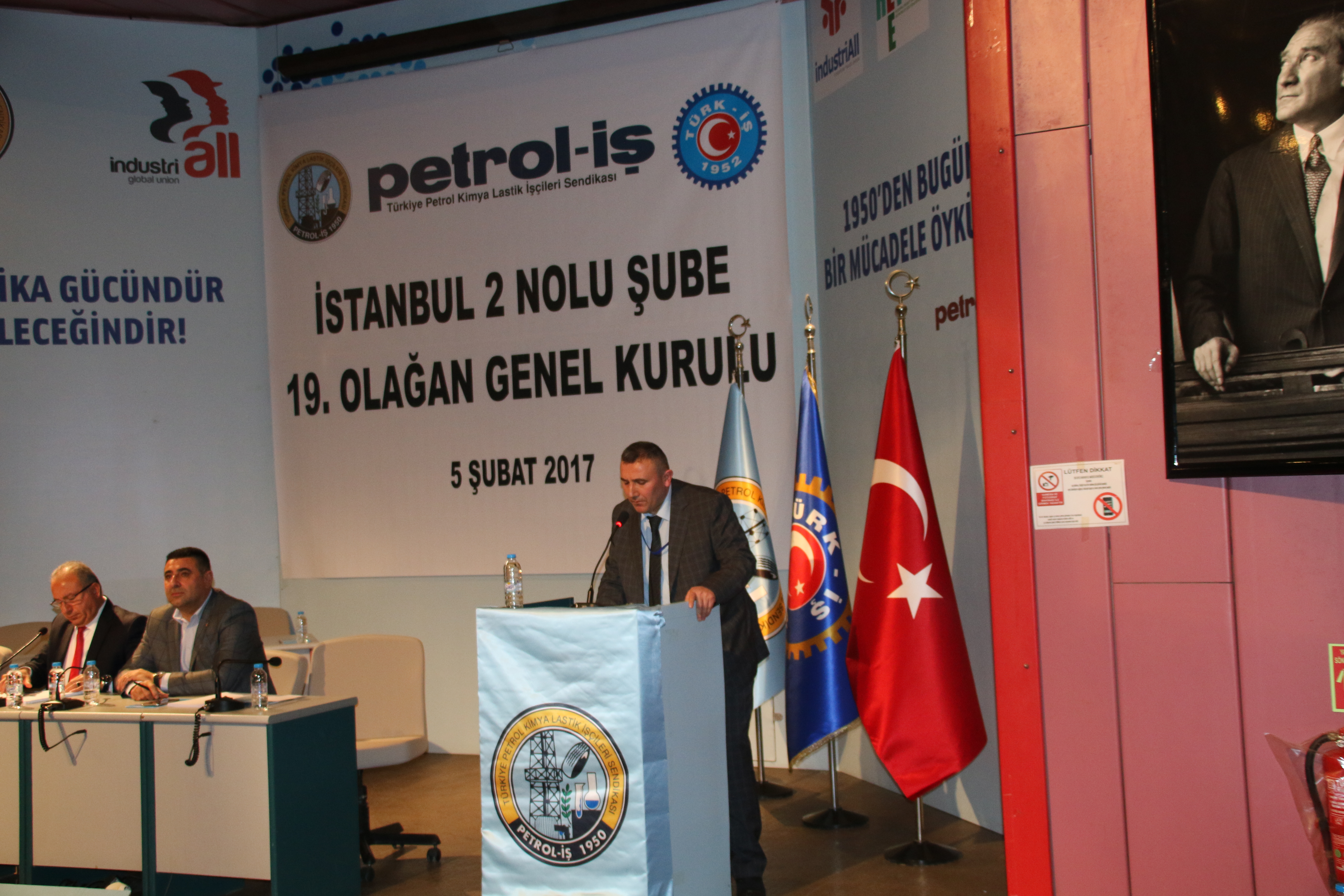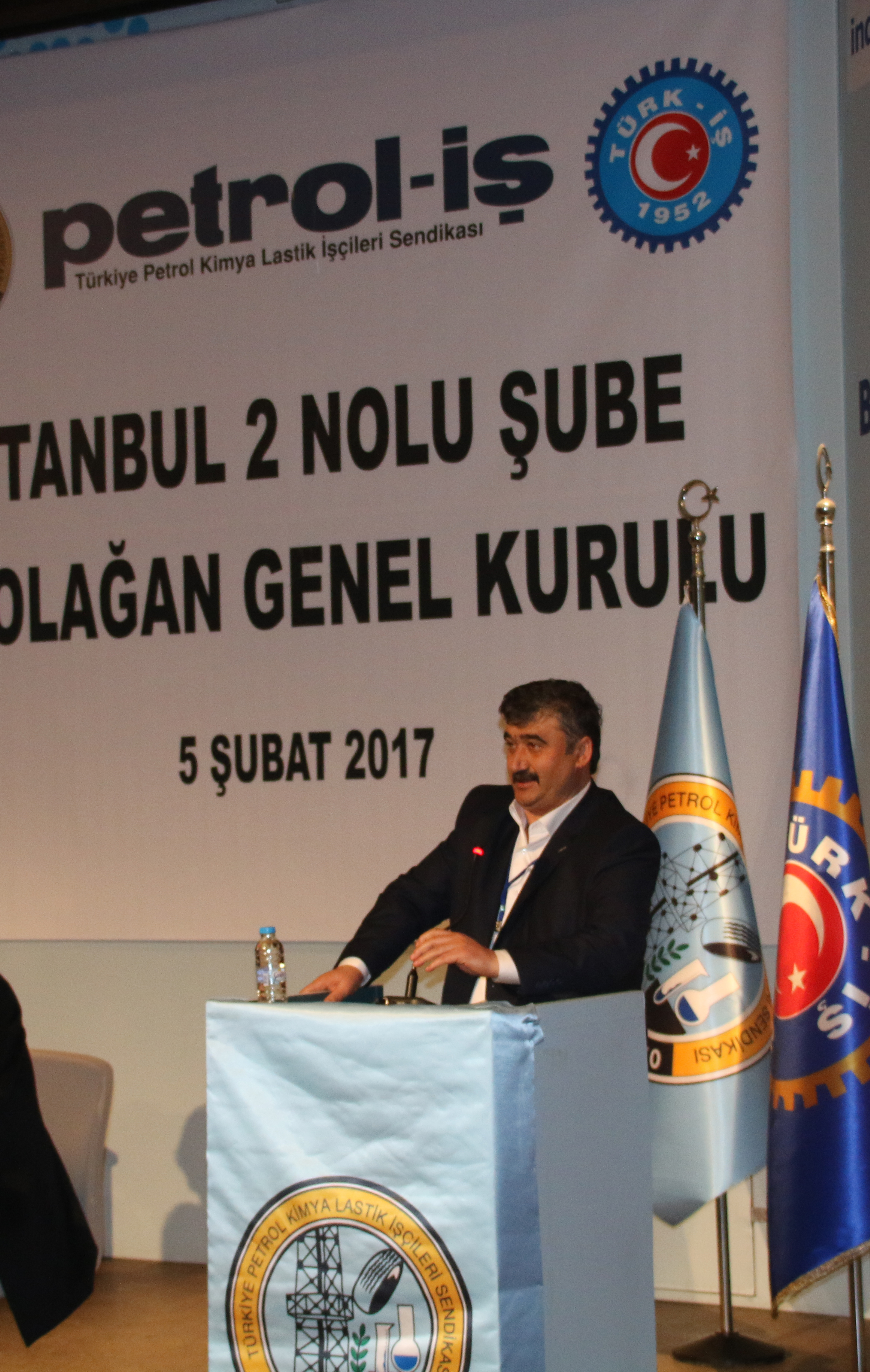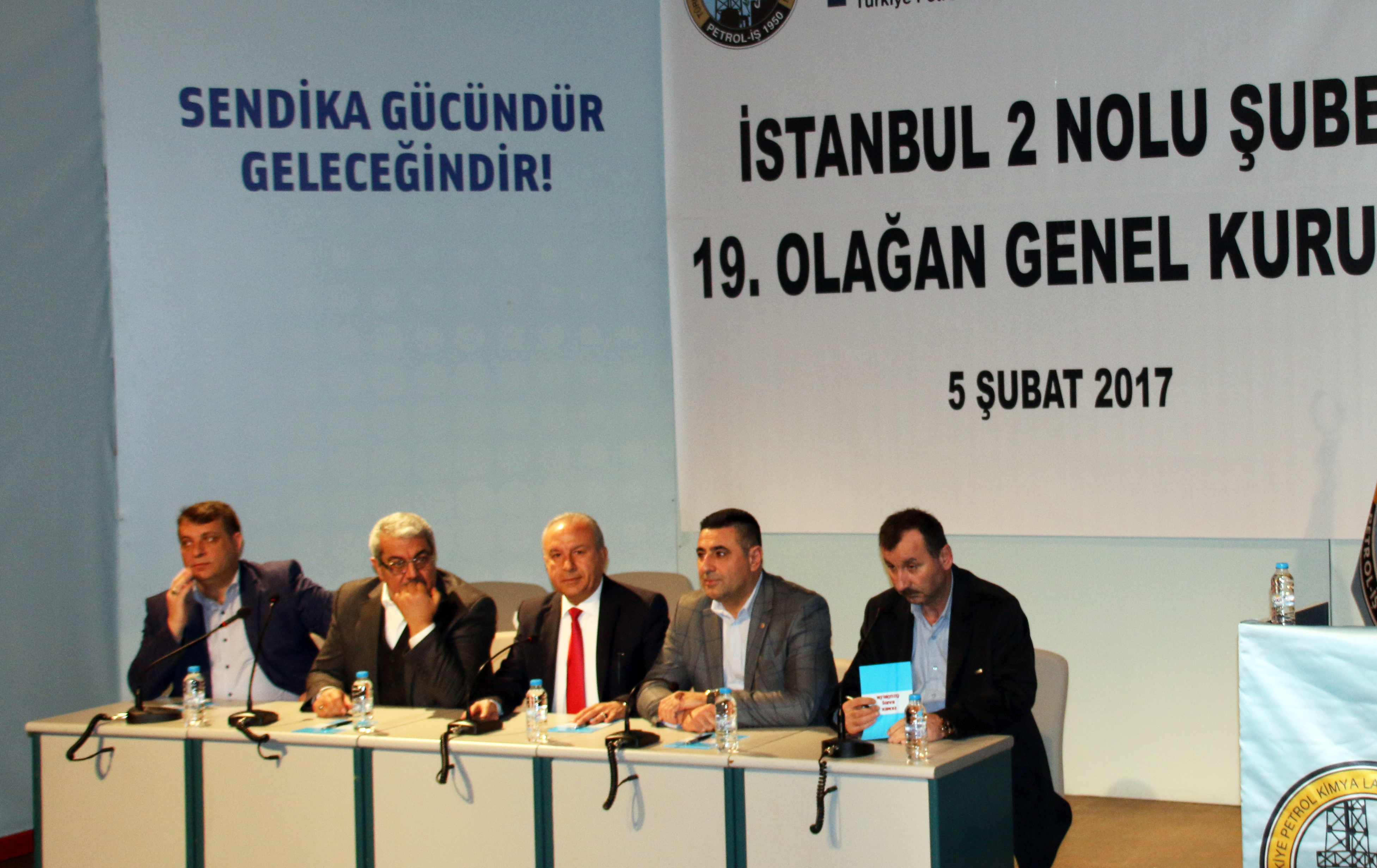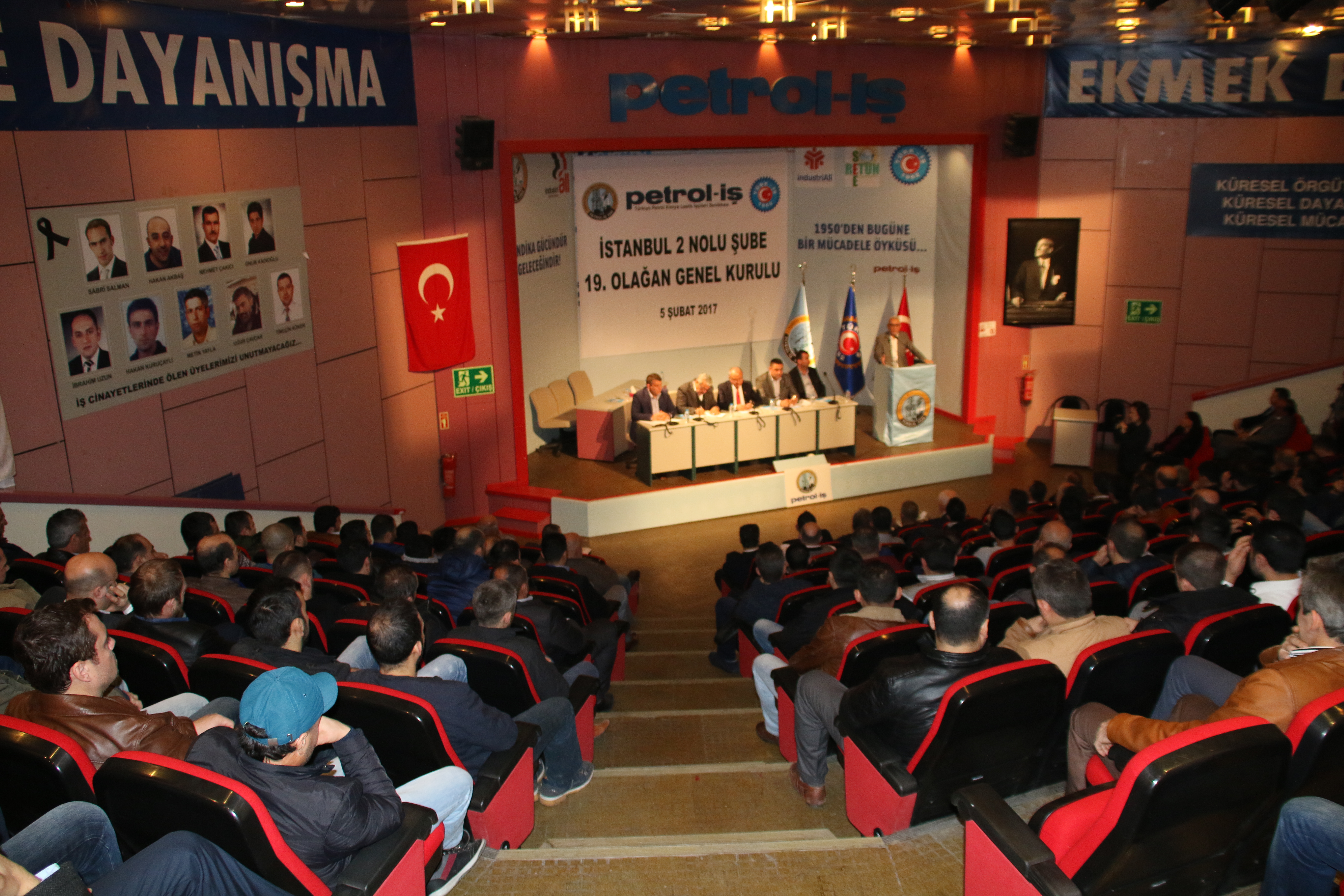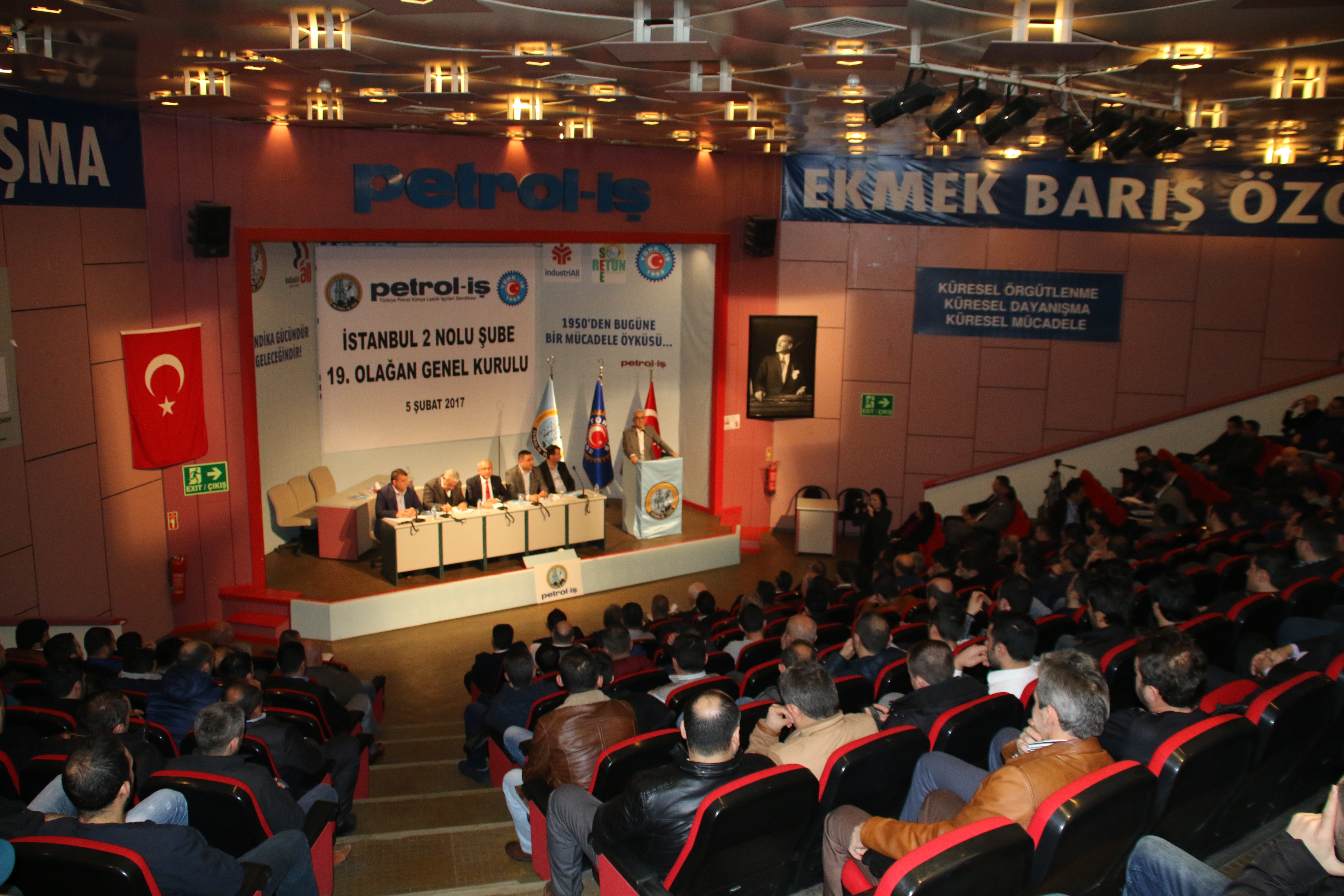 İstanbul 2 Nolu Şubemizin Olağan Genel Kurulu’na Petrol-İş Merkez Yönetim Kurulu üyeleri, Denetim ve Disiplin Kurulu üyeleri, şube başkanları, şube yöneticileri, şubemizin örgütlü olduğu işyerlerinden temsilciler ve üyelerimiz de katıldı.