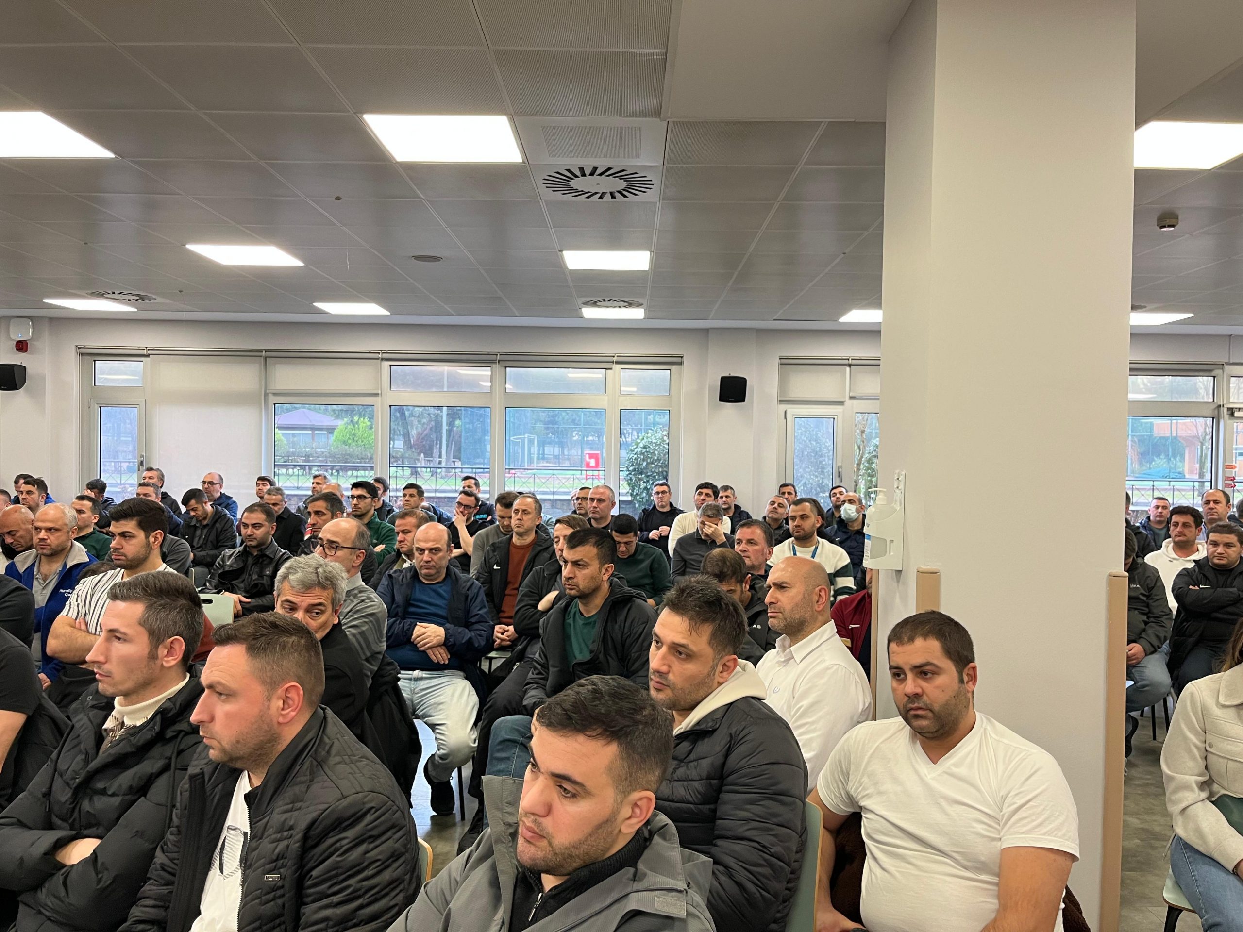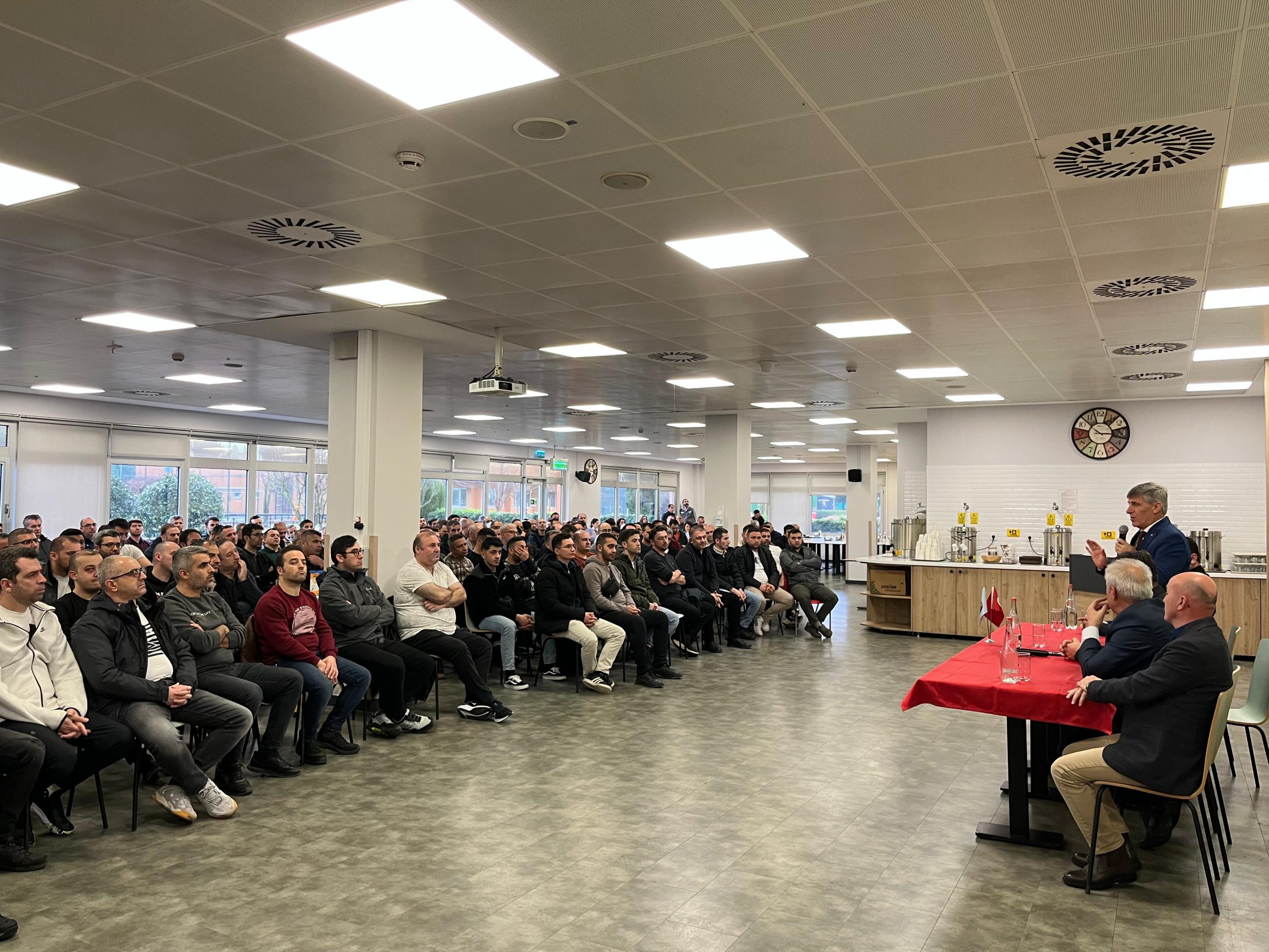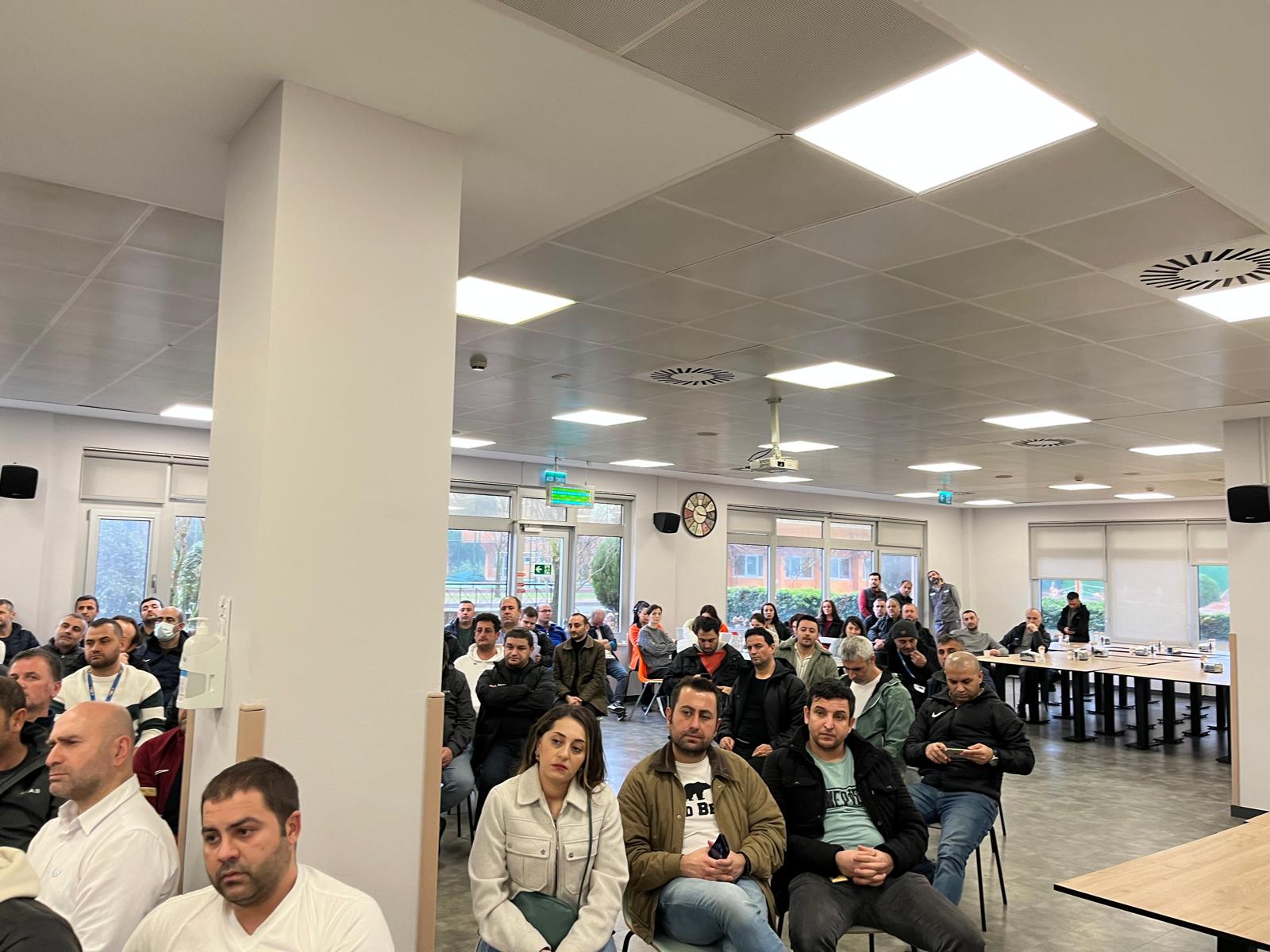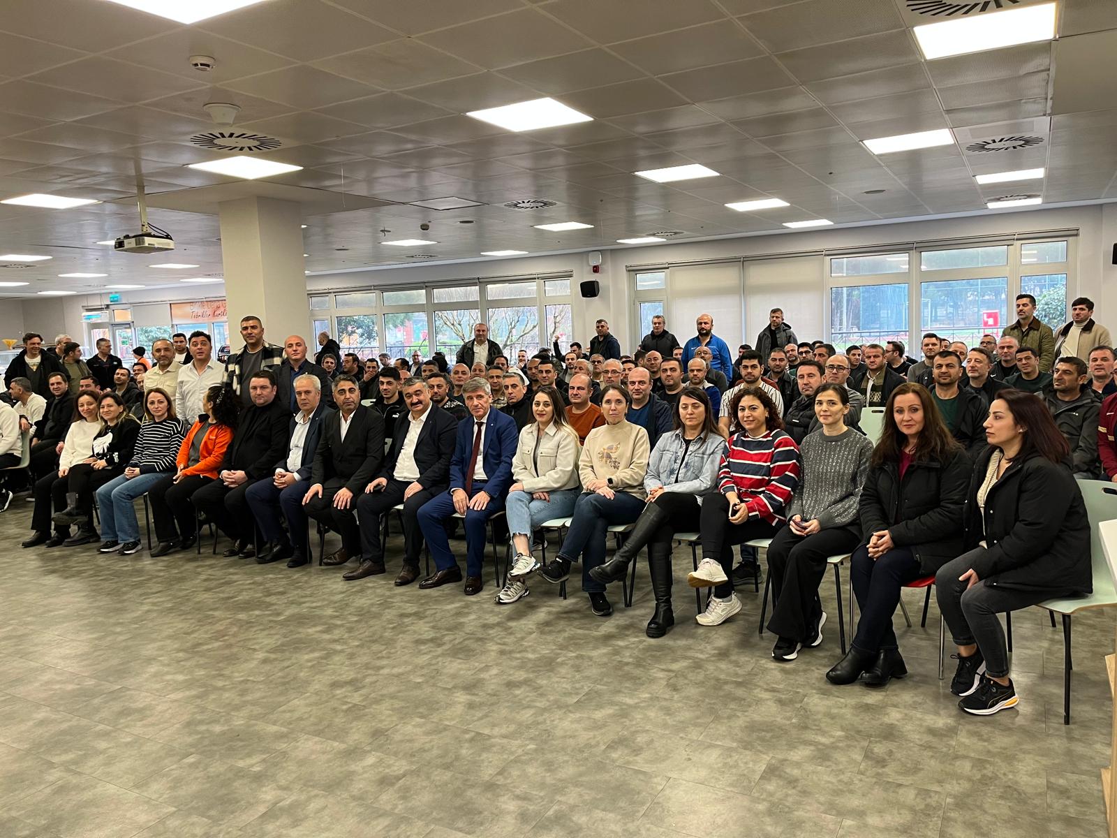 İşyeri yemekhanesinde yapılan toplantıda İstanbul 1 Nolu Şube Başkanımız Erkan Zorlu konuşmasıyla eğitimlerin birlik ve beraberliği güçlendirdiğine, üye ile sendikası arasında daha sıkı bağlar oluşturduğuna vurgu yaptı.