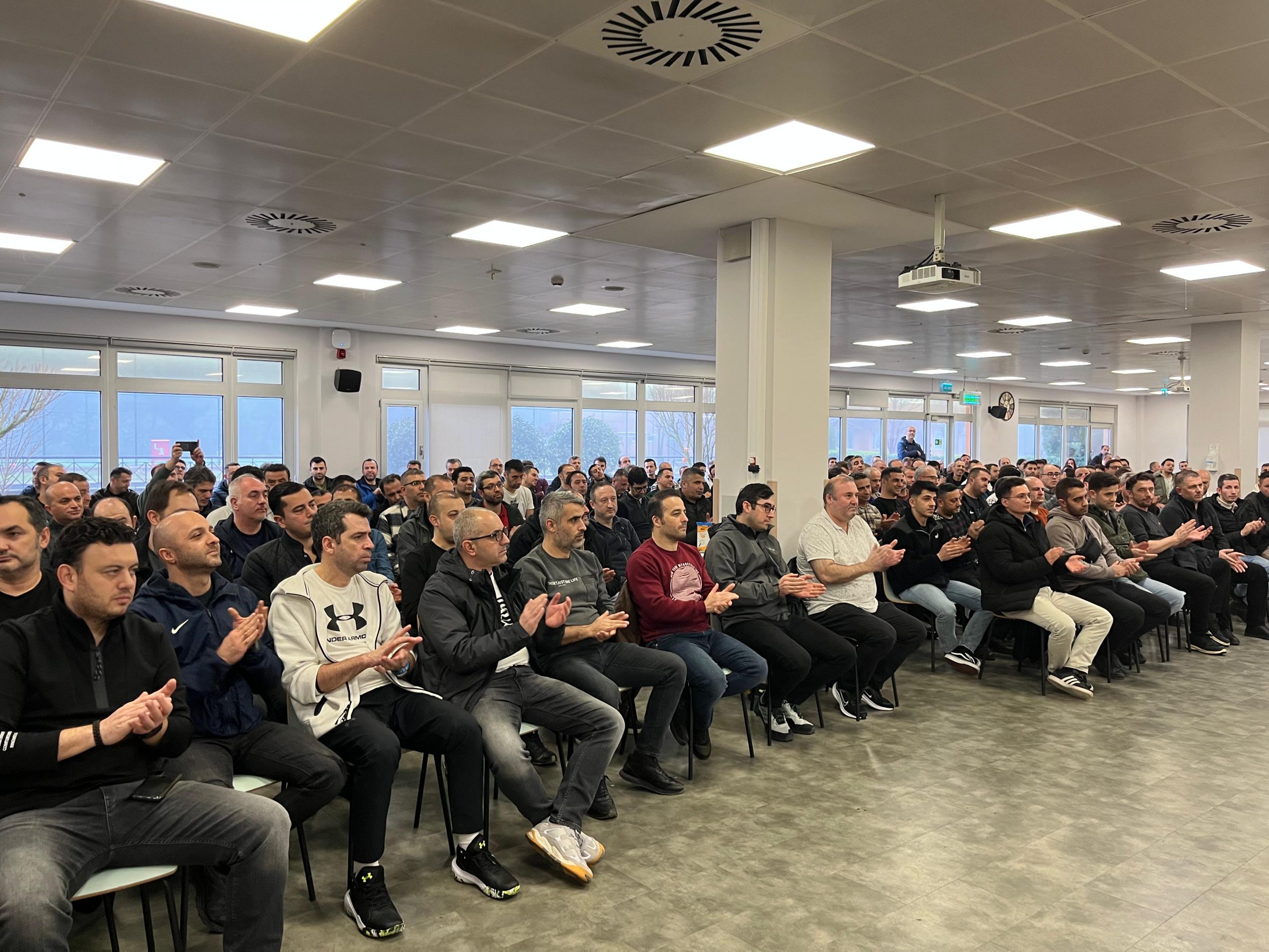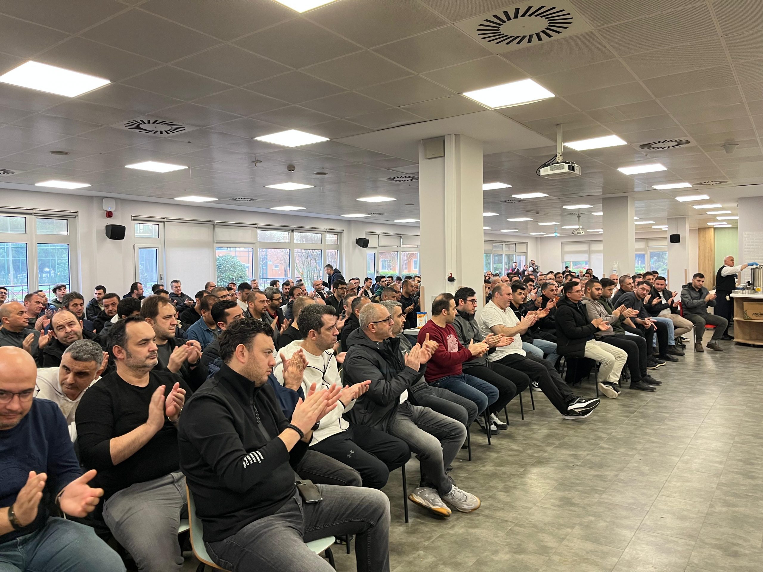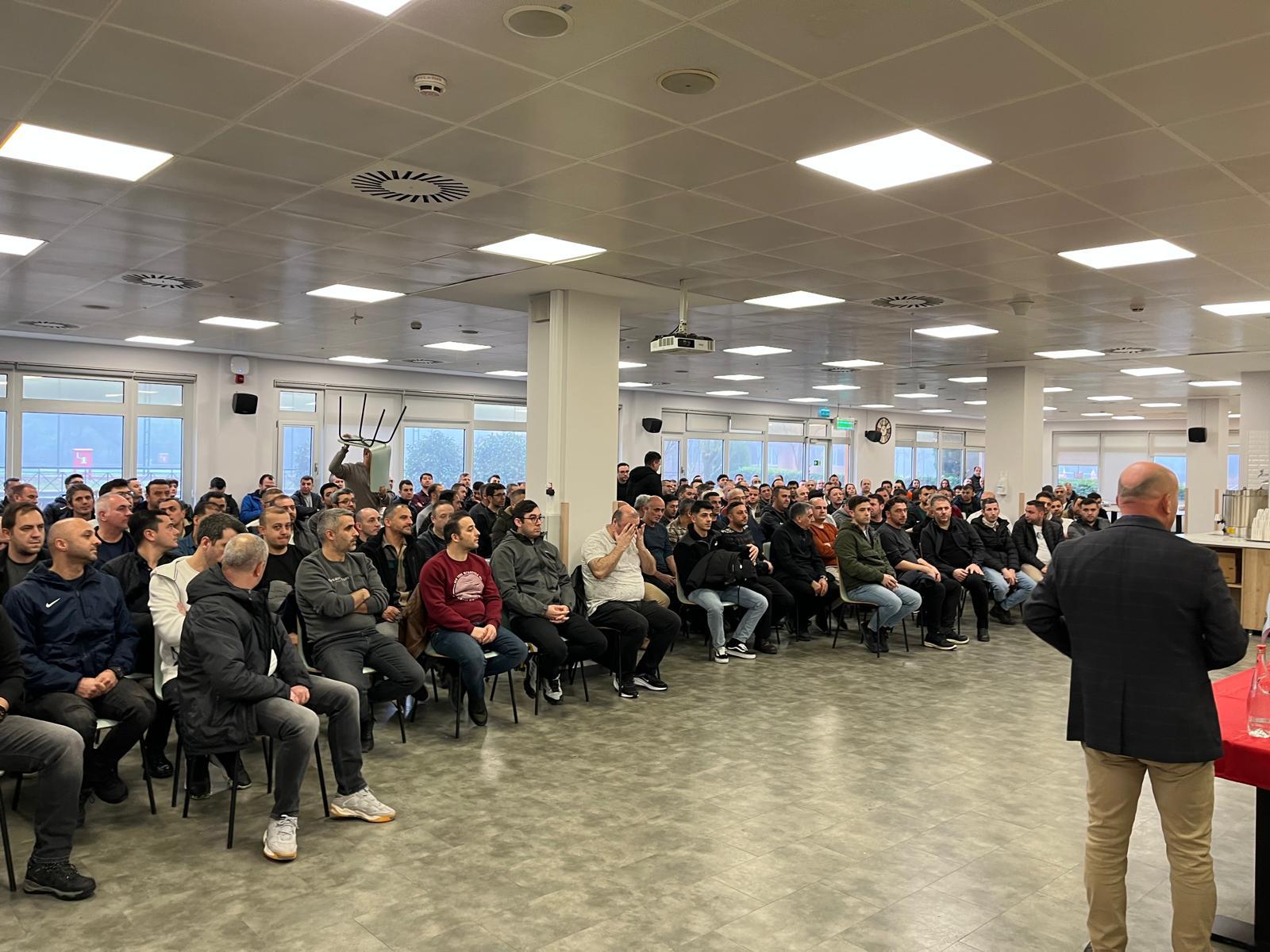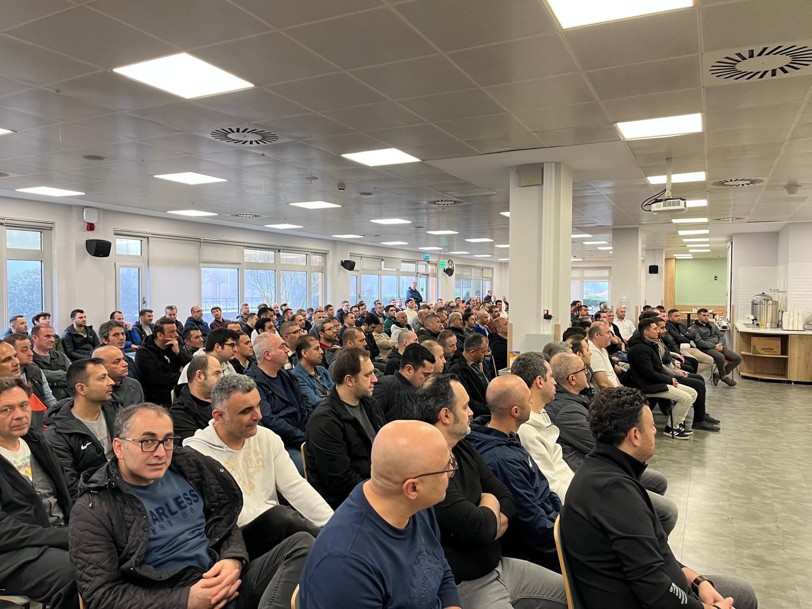 İşyeri yemekhanesinde yapılan toplantıda İstanbul 1 Nolu Şube Başkanımız Erkan Zorlu konuşmasıyla eğitimlerin birlik ve beraberliği güçlendirdiğine, üye ile sendikası arasında daha sıkı bağlar oluşturduğuna vurgu yaptı.